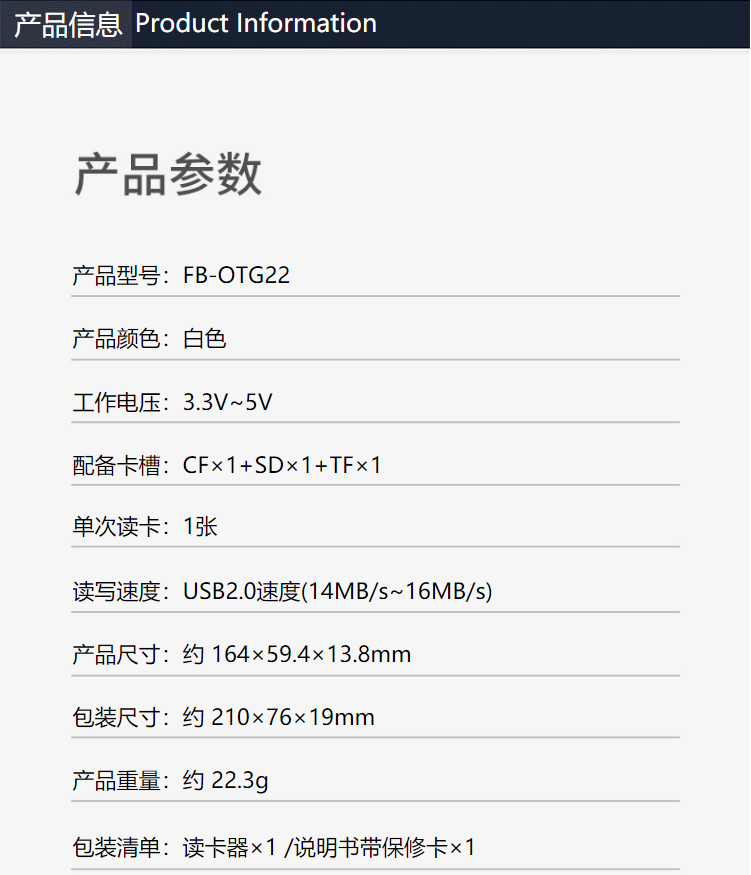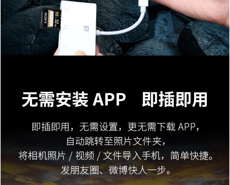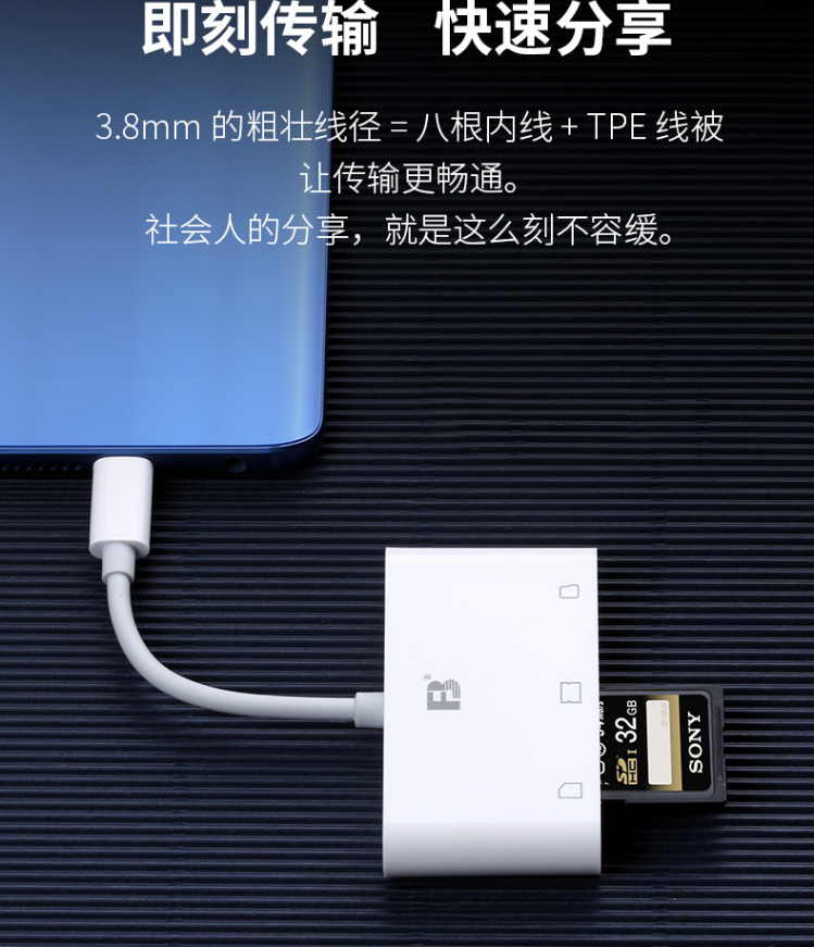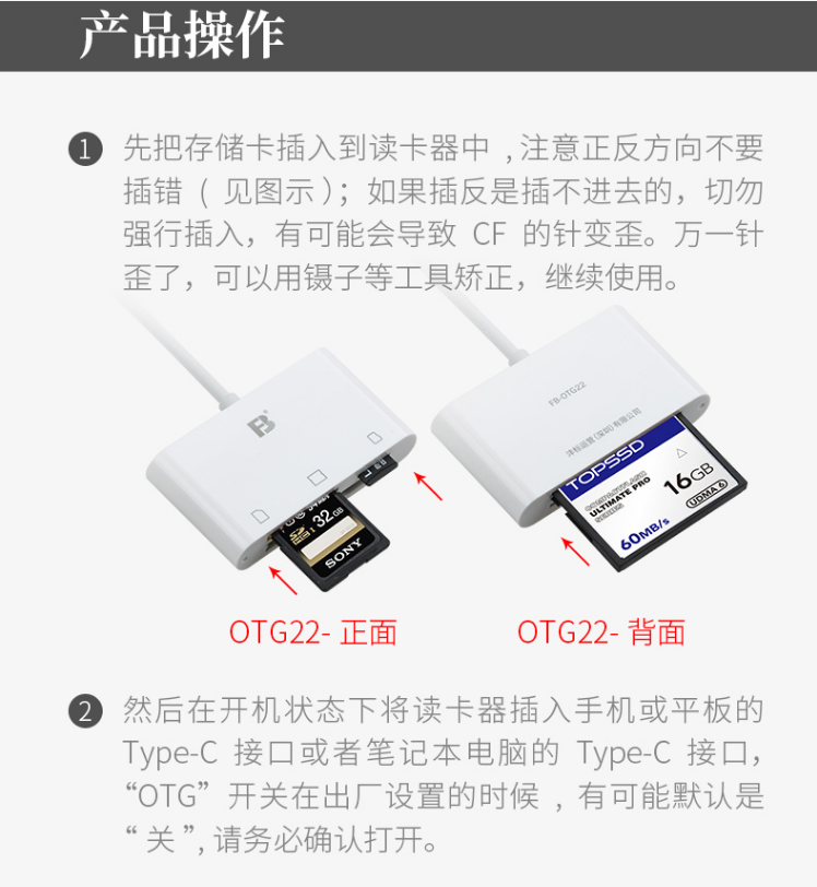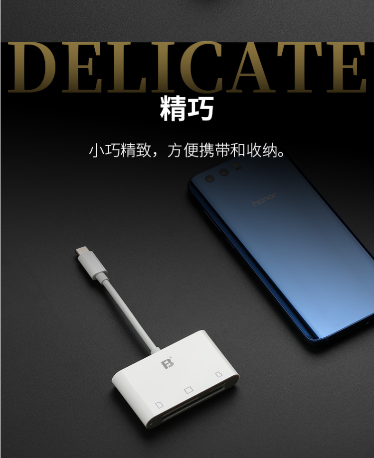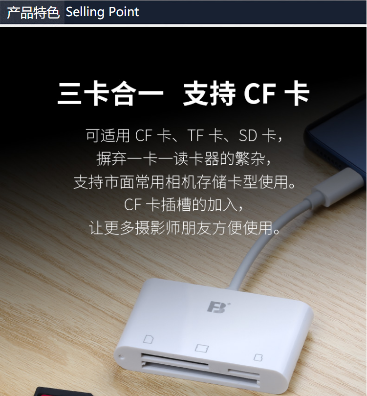 沣标(FB)安卓/苹果手机高速读卡器 SD/TF/CF三合一