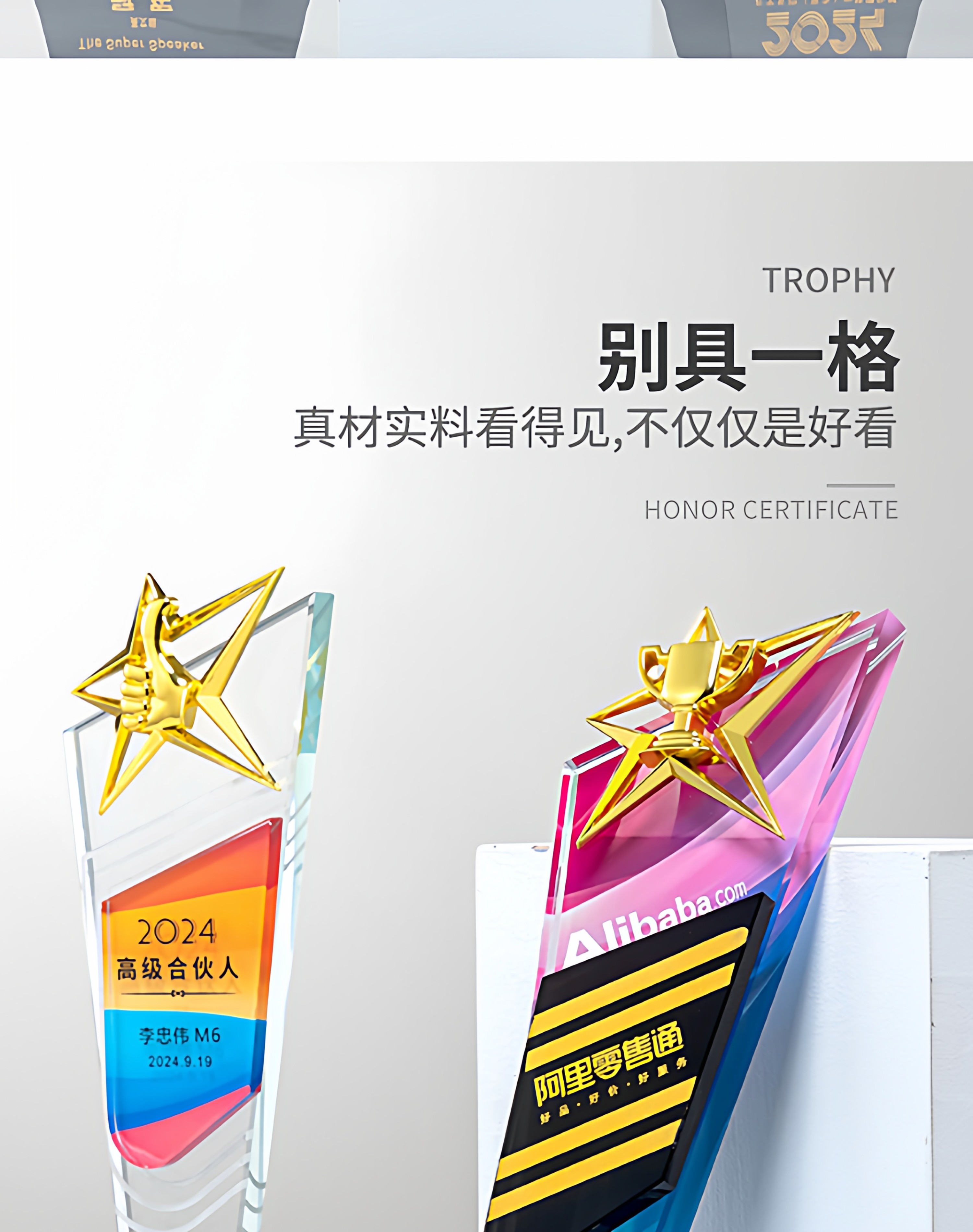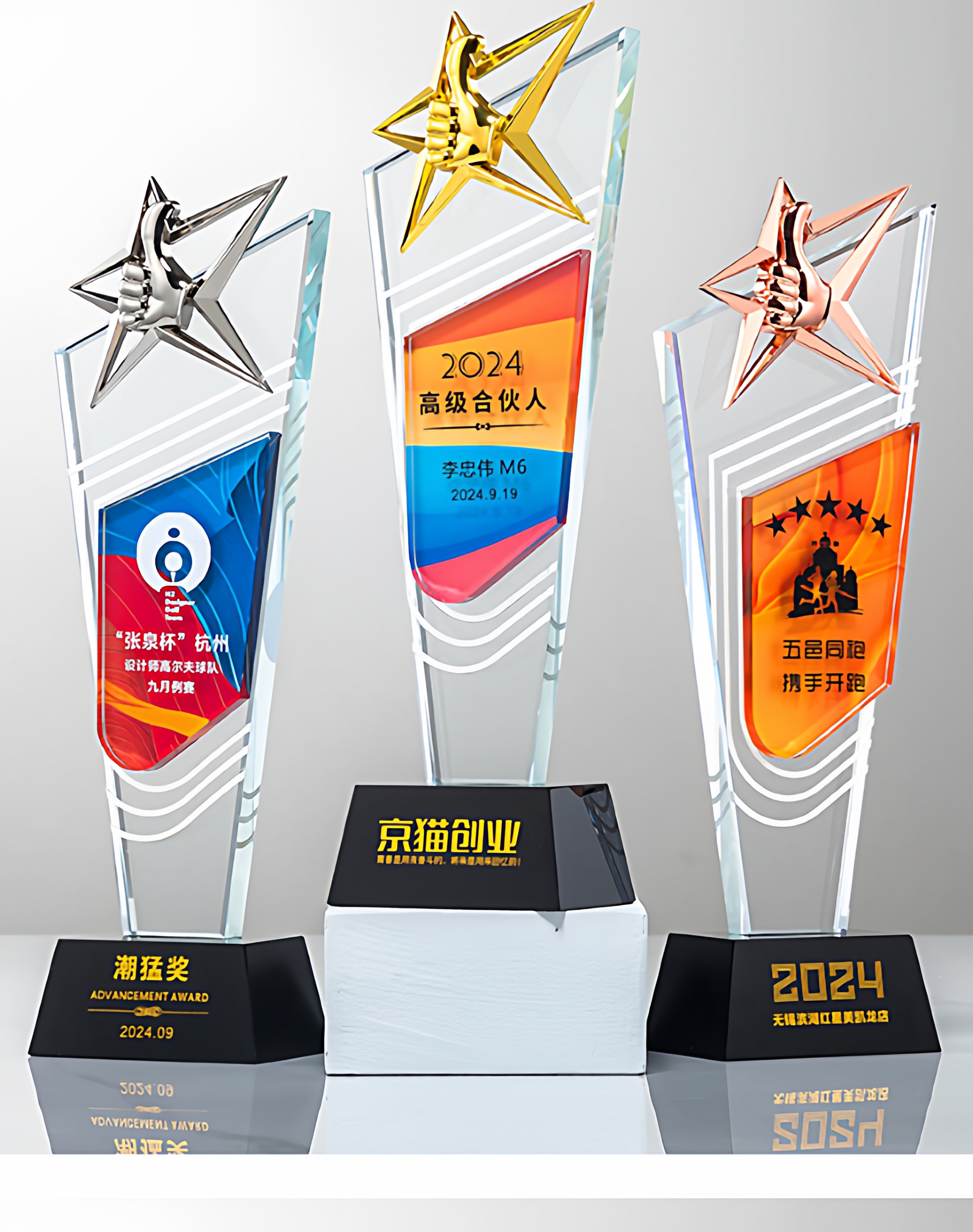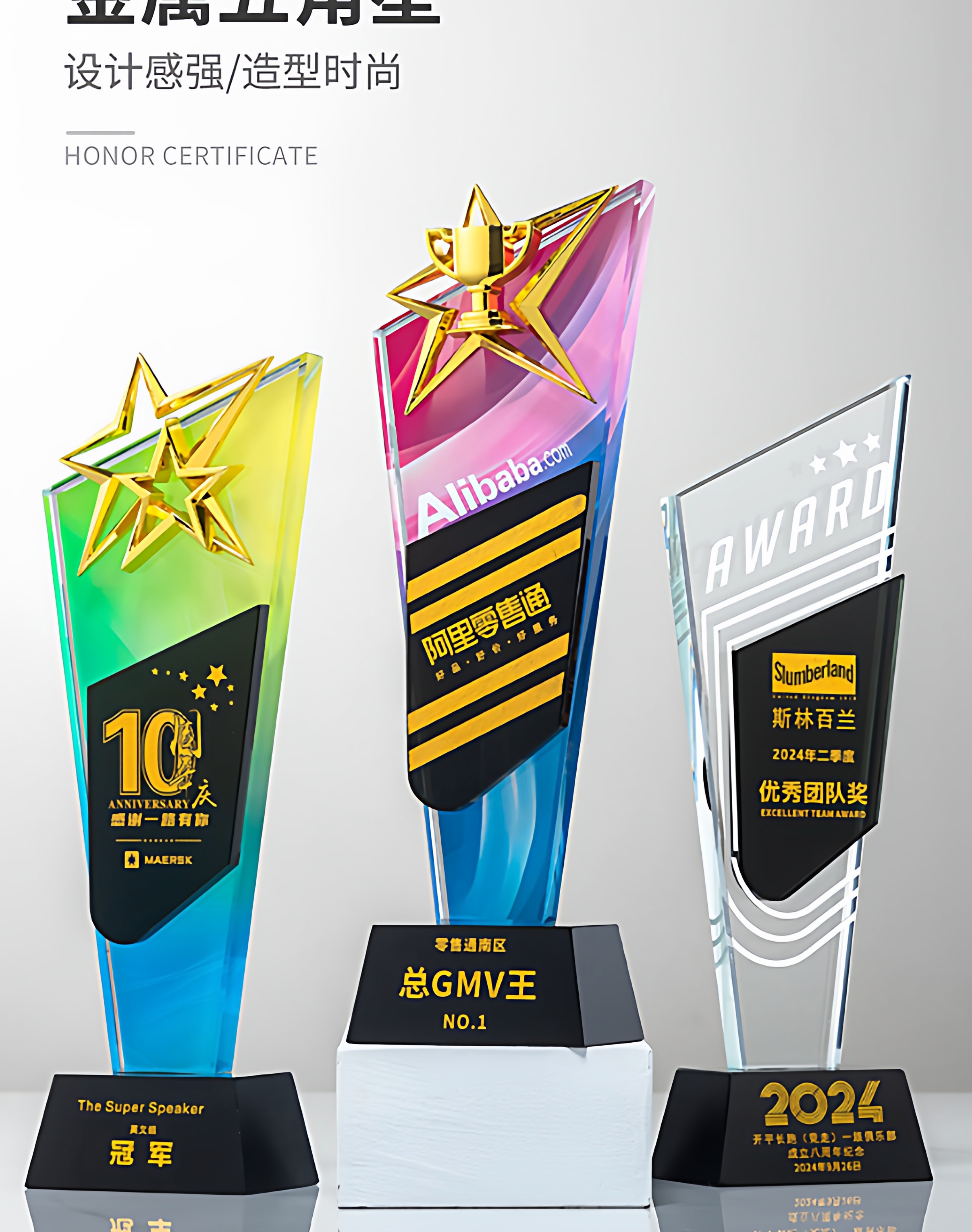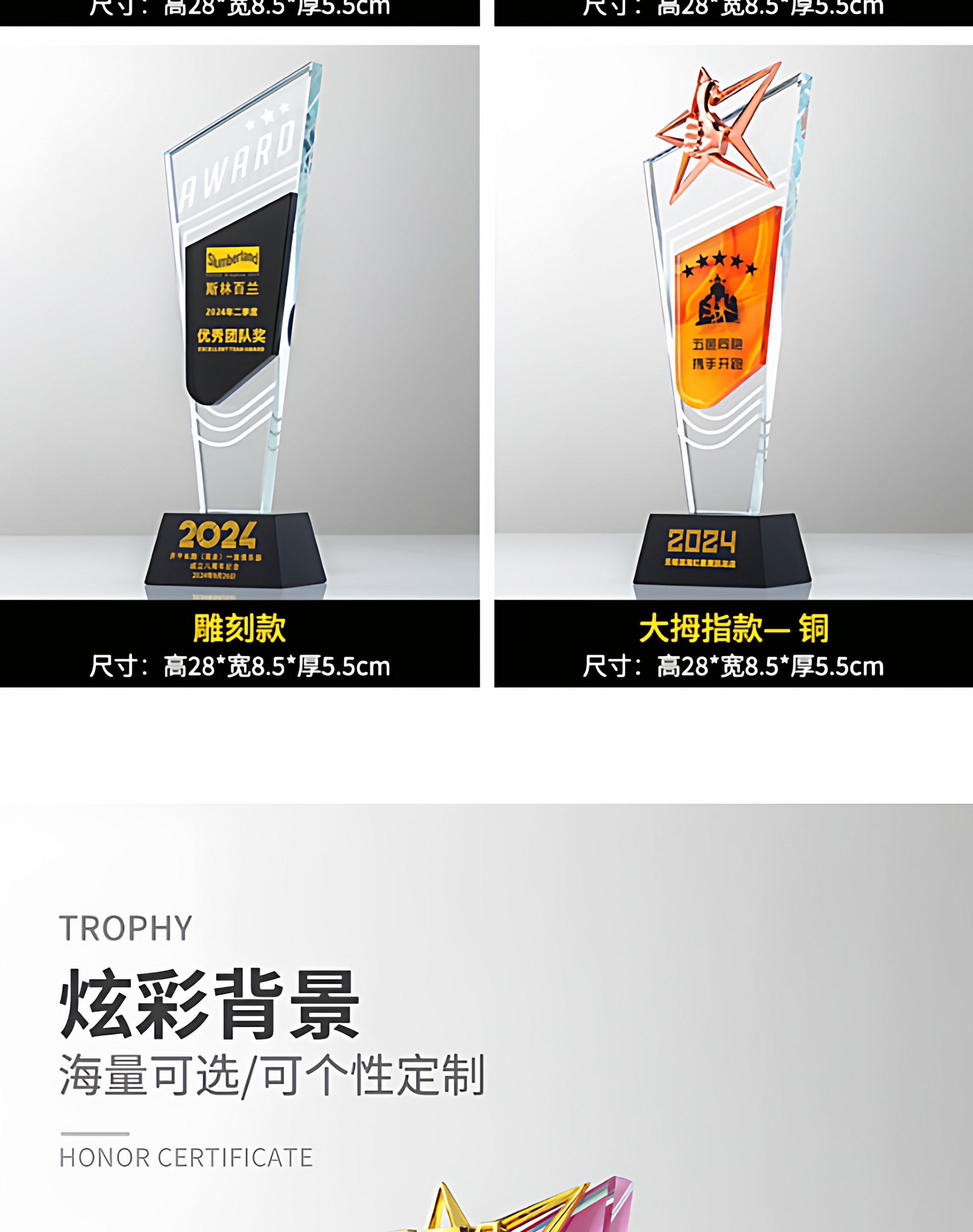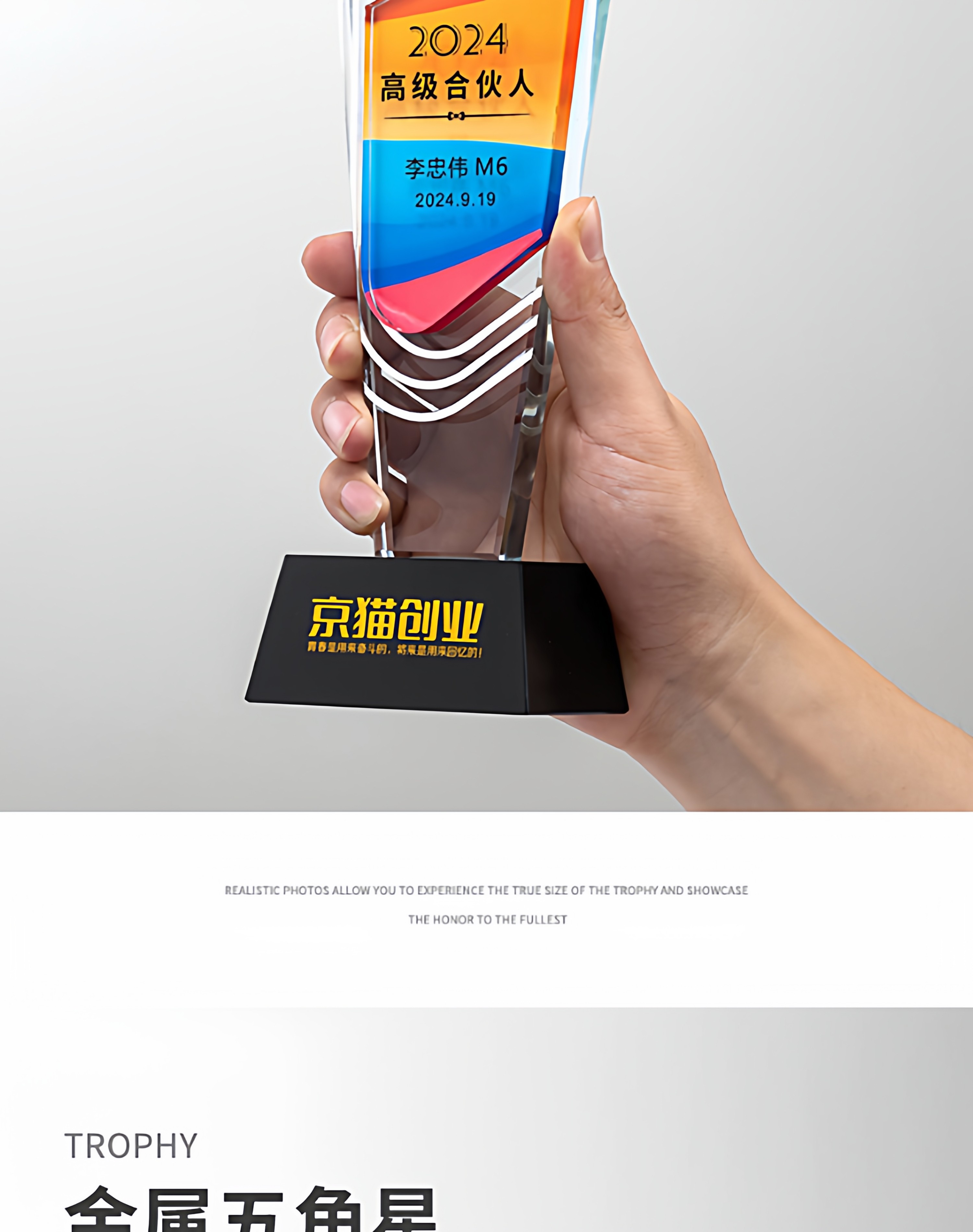 奖杯定制做授权牌经销年会优秀员工刻字金属铝板高端水晶立体奖牌