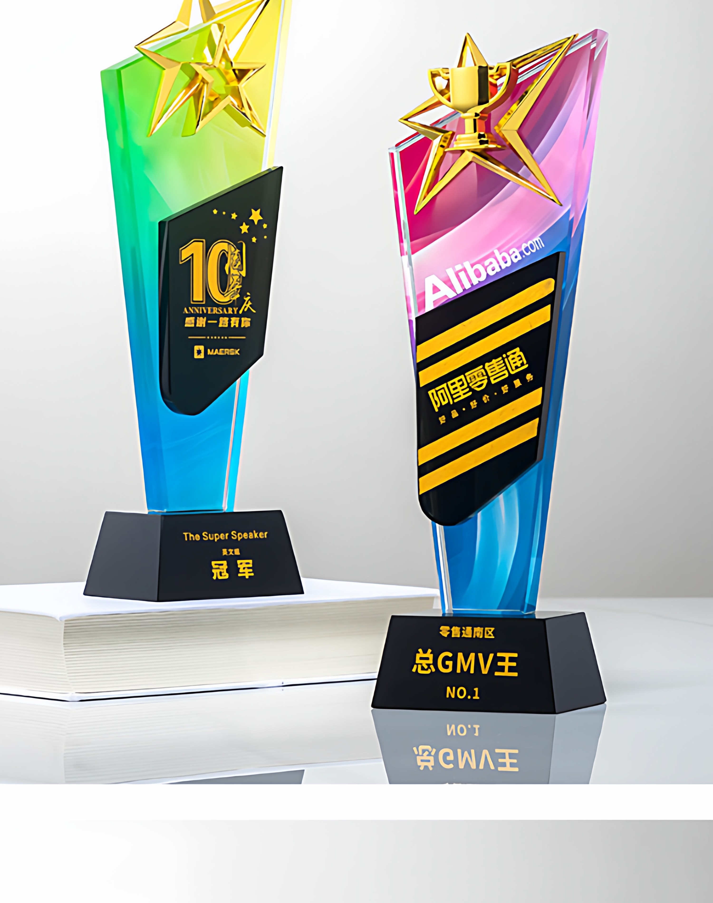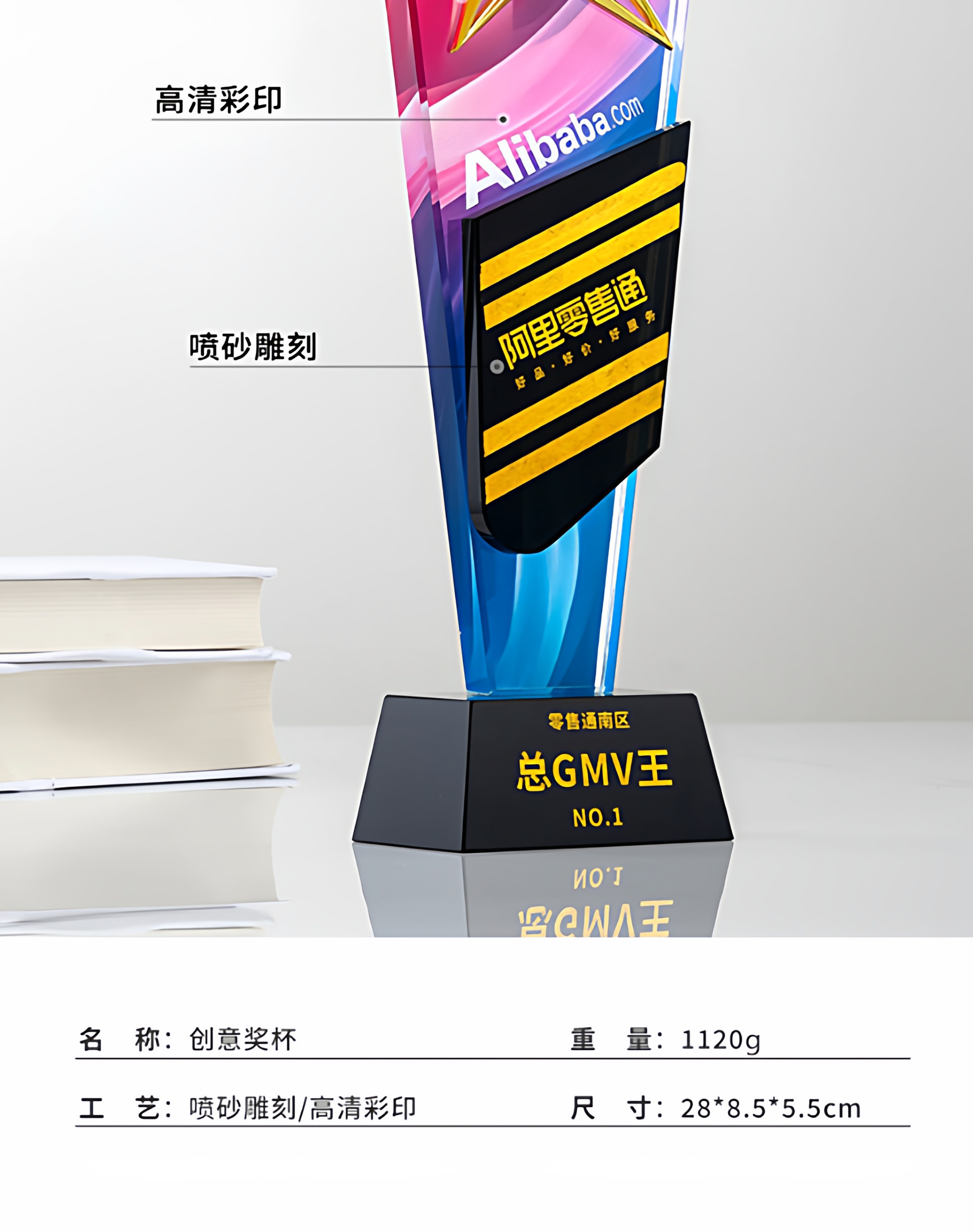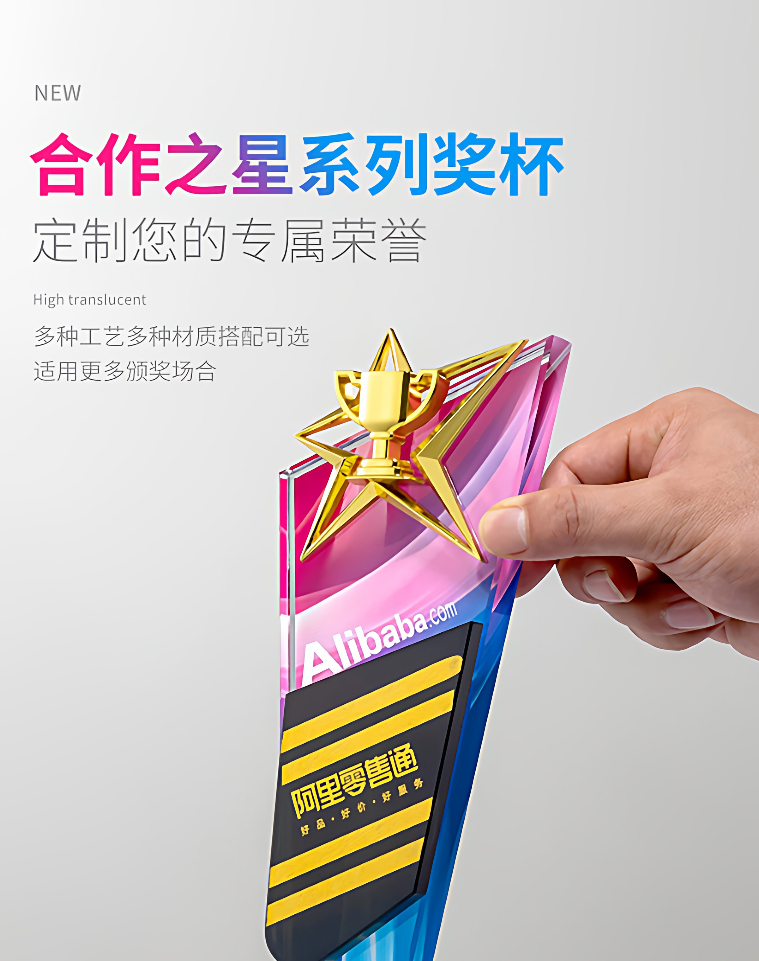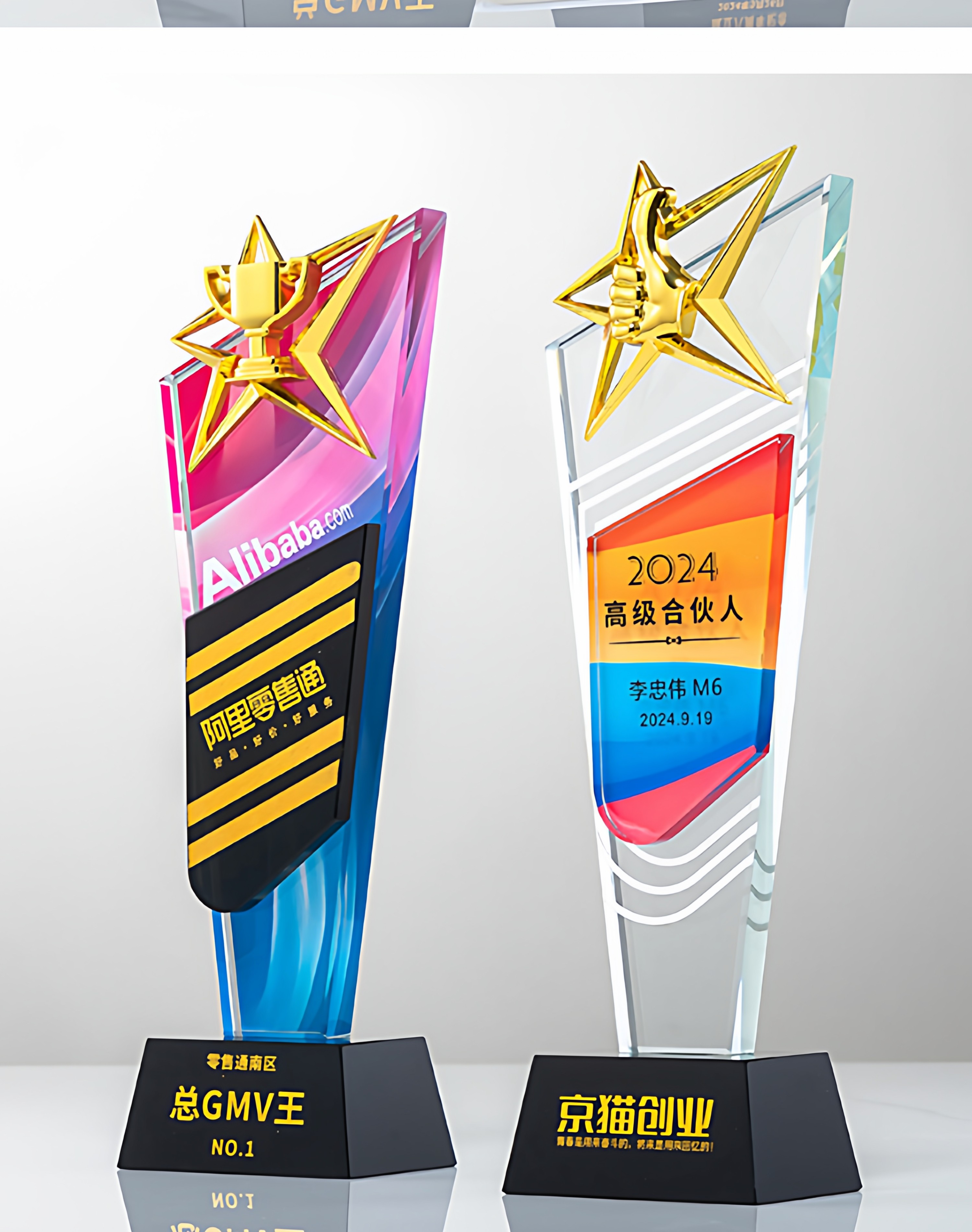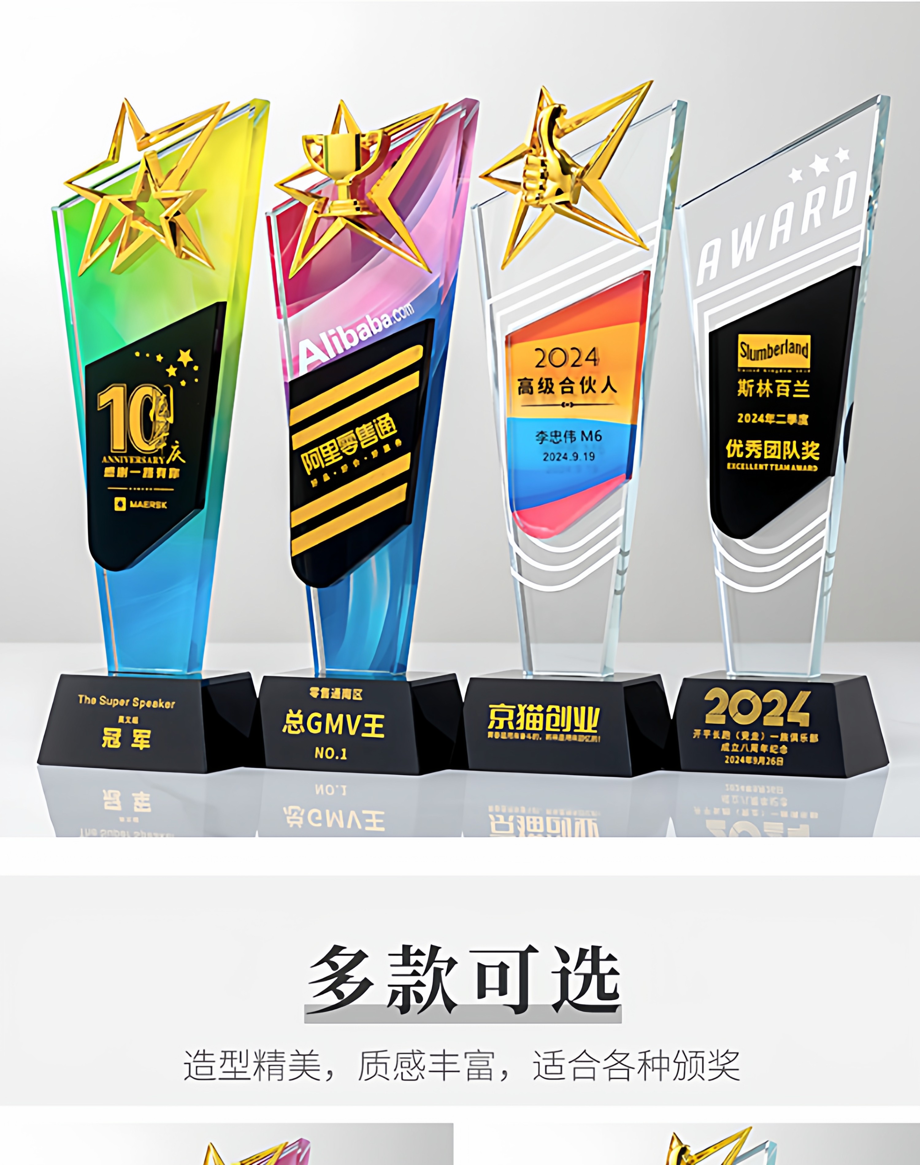 奖杯定制做授权牌经销年会优秀员工刻字金属铝板高端水晶立体奖牌