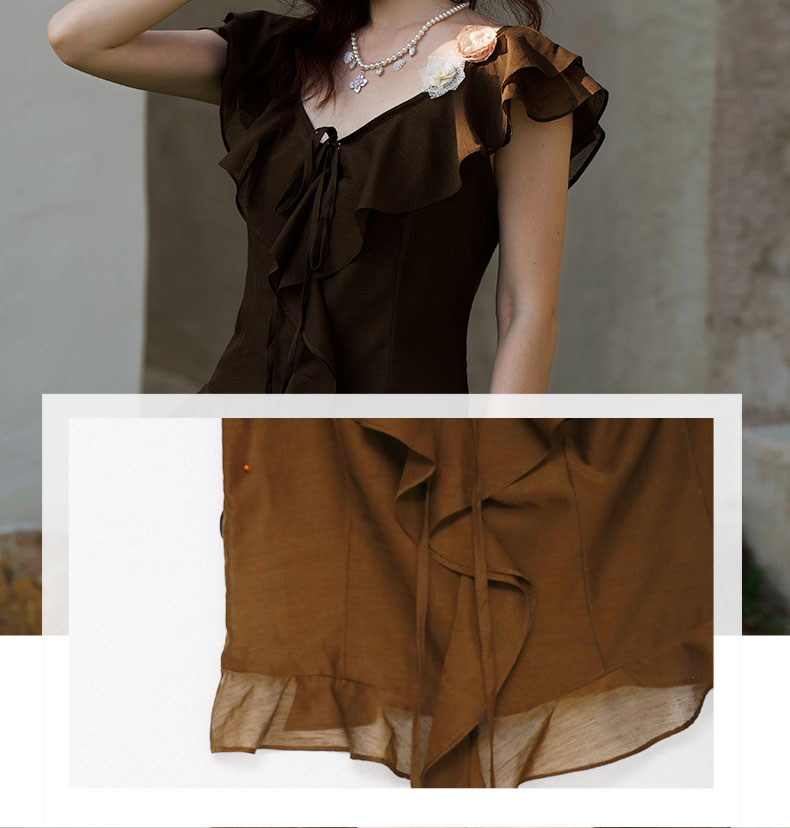【直播专供】ENJOY秋季挂脖V领打褶厚款上衣 154900888