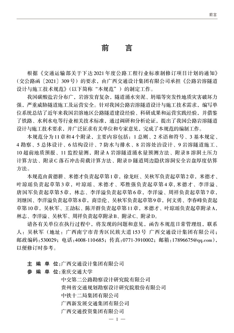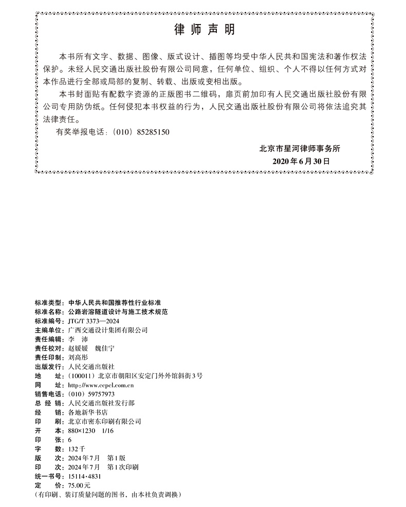 书名:公路岩溶隧道设计与施工技术规范(JTG/T 3373—2024)