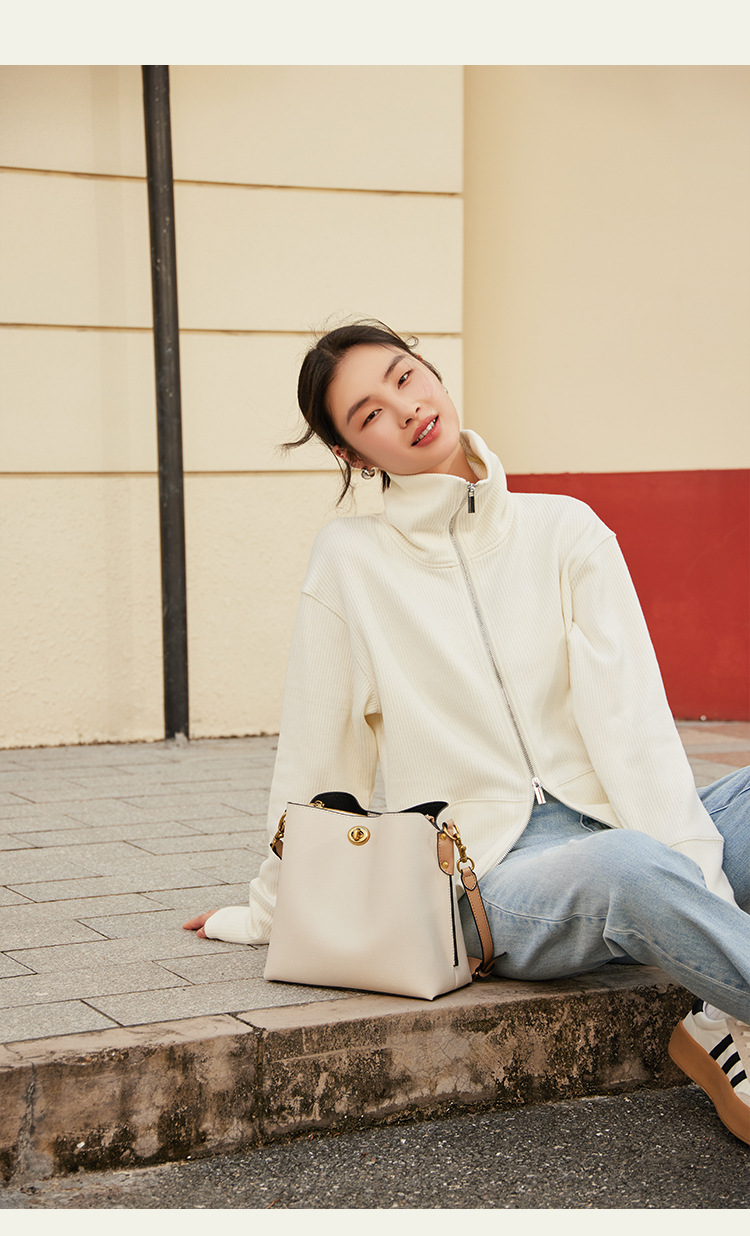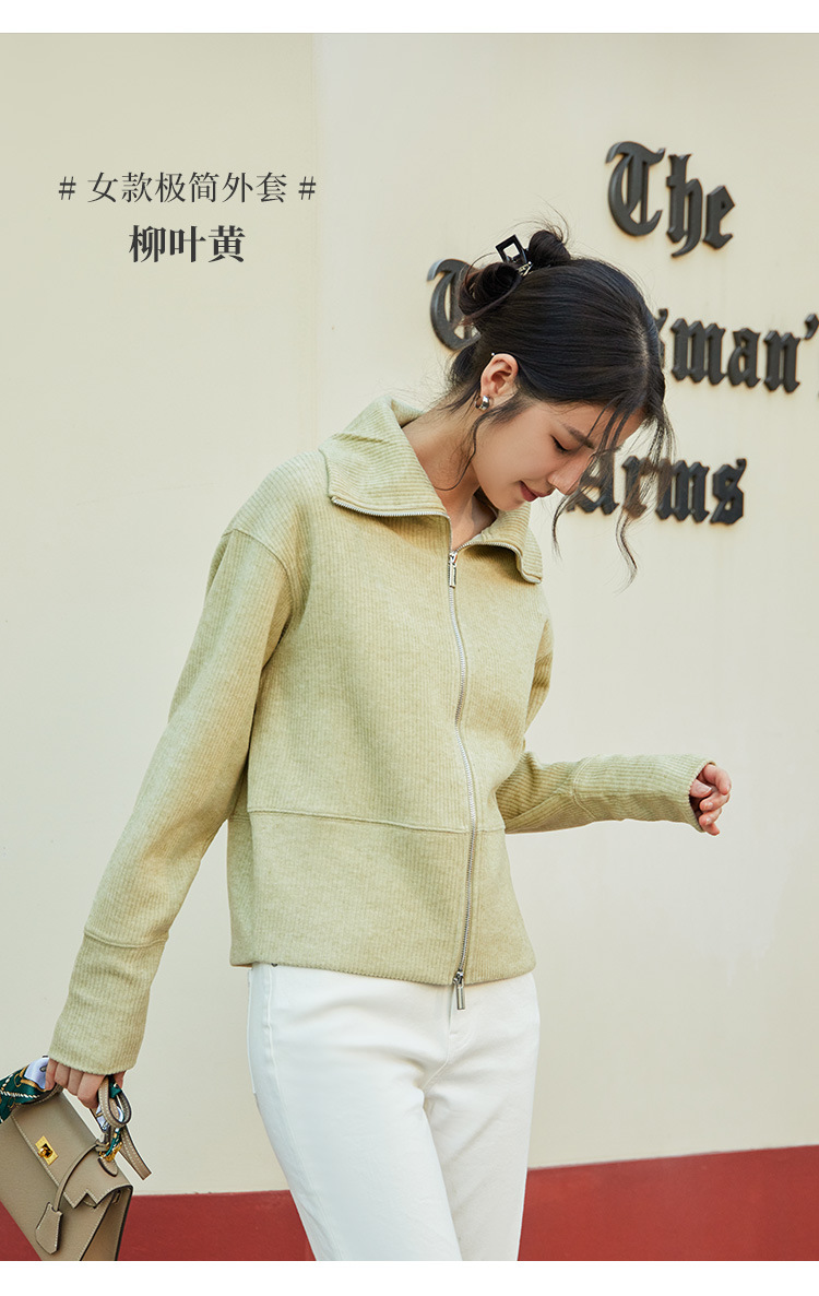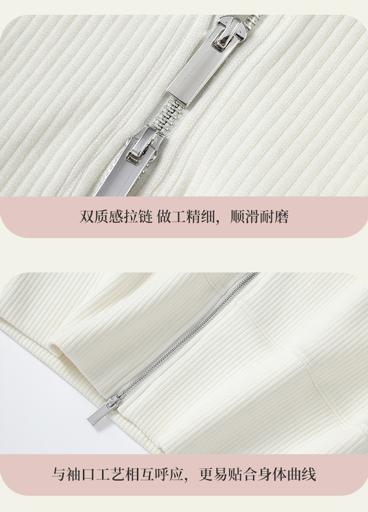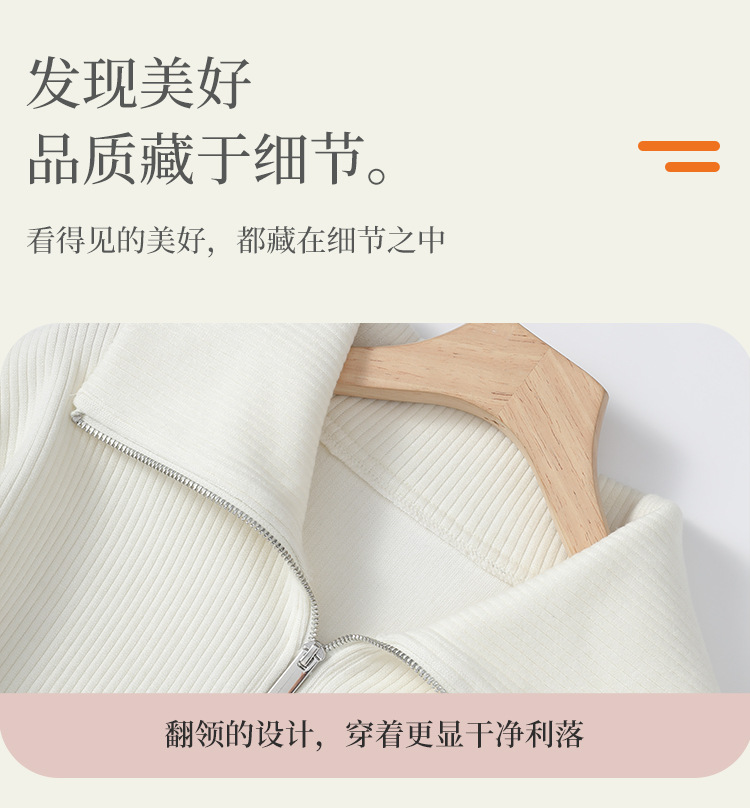 【大牌品质】女士双开拉链轻奢气质开衫外套 秋冬款棉柔保暖亲肤竖条显瘦休闲外套