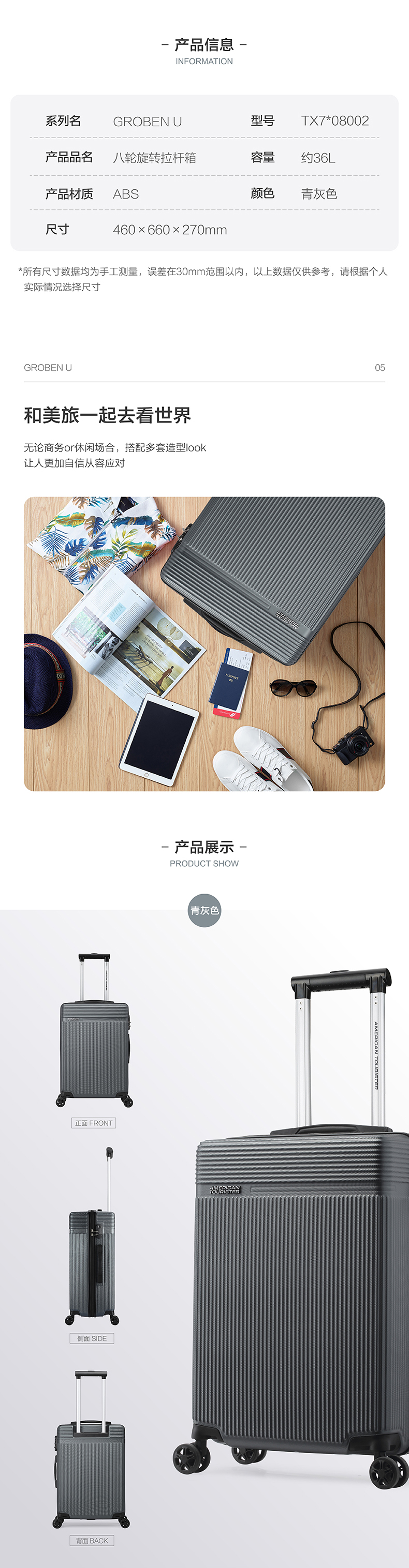 TX7*08002 美旅四轮旋转拉杆箱青灰色24寸