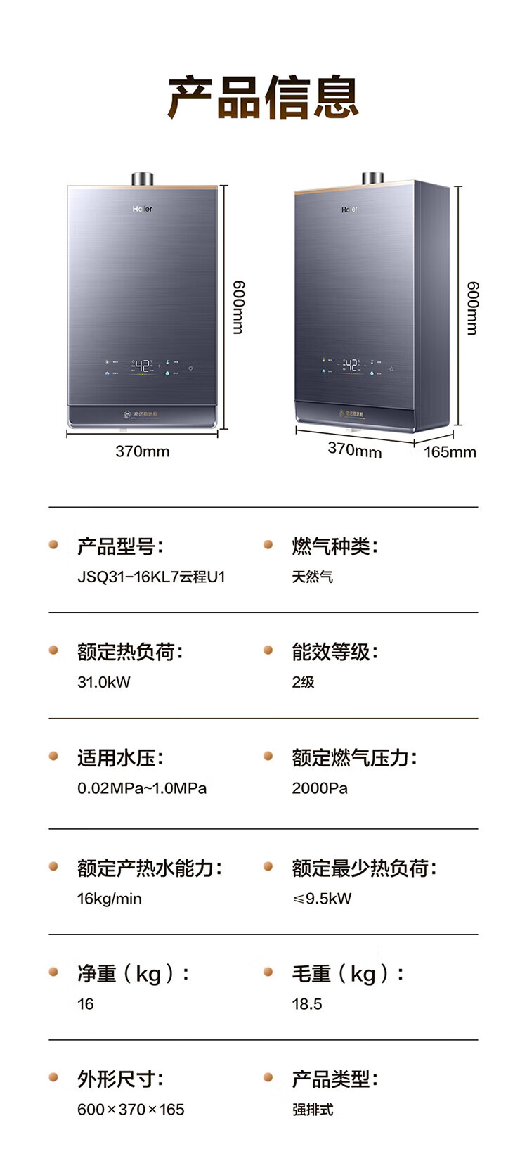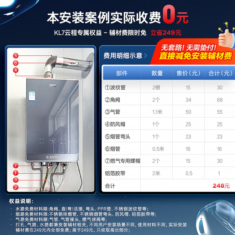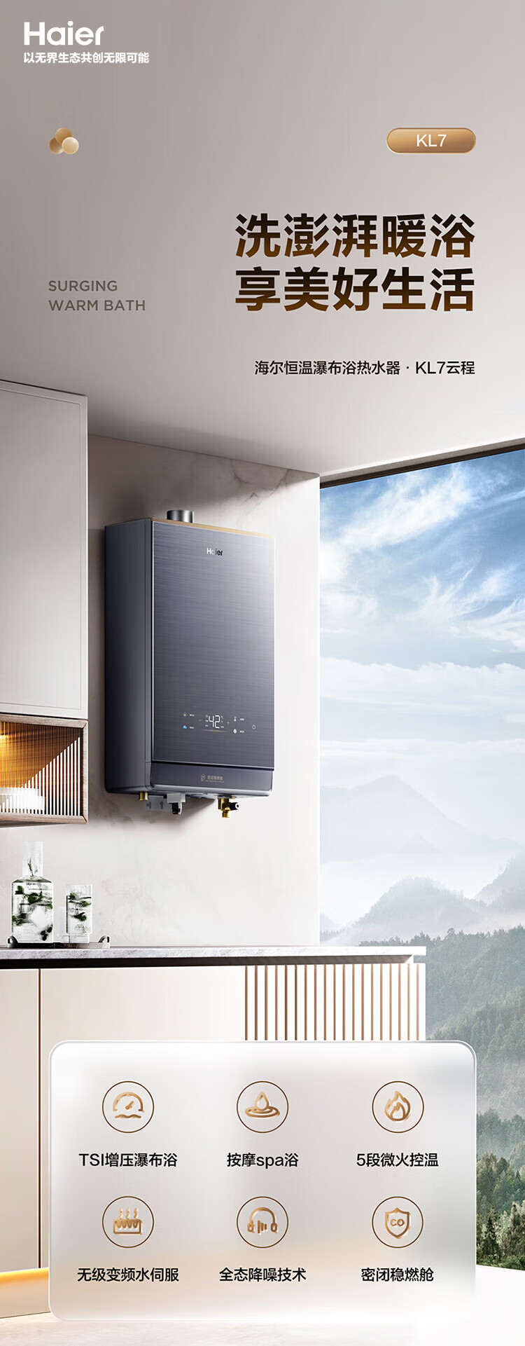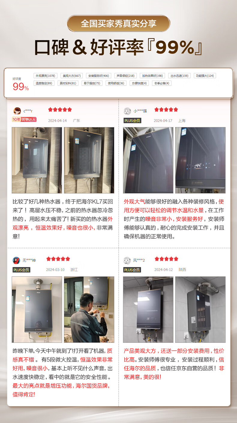 【以旧换新】海尔(Haier)16升【K系列KL7】燃气热水器天然气无级变频水伺服五段微火TSI增压JSQ31-16KL7云程U1