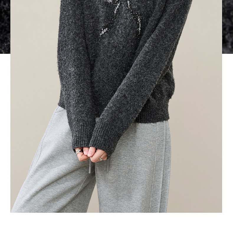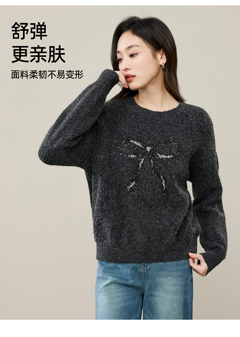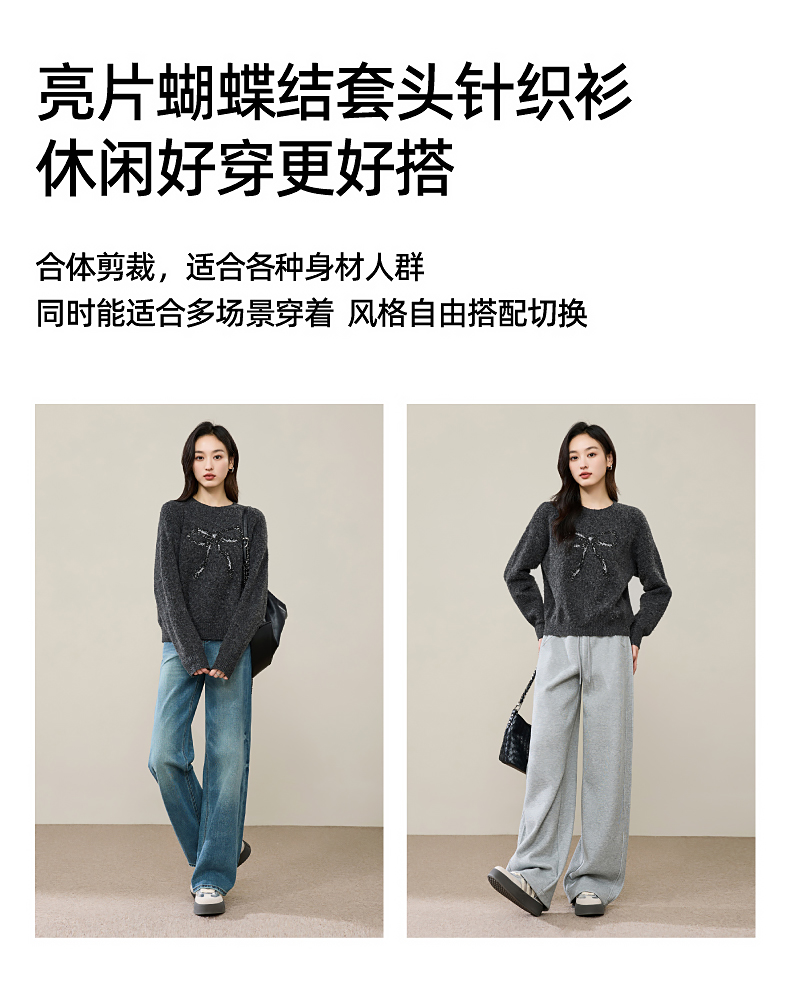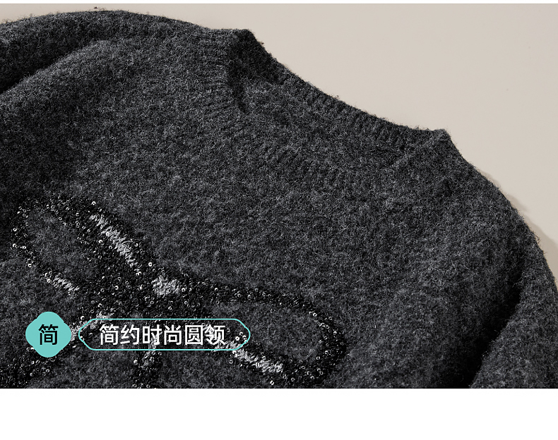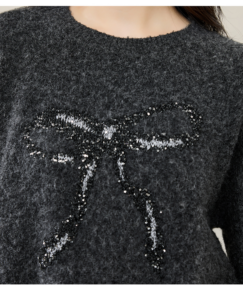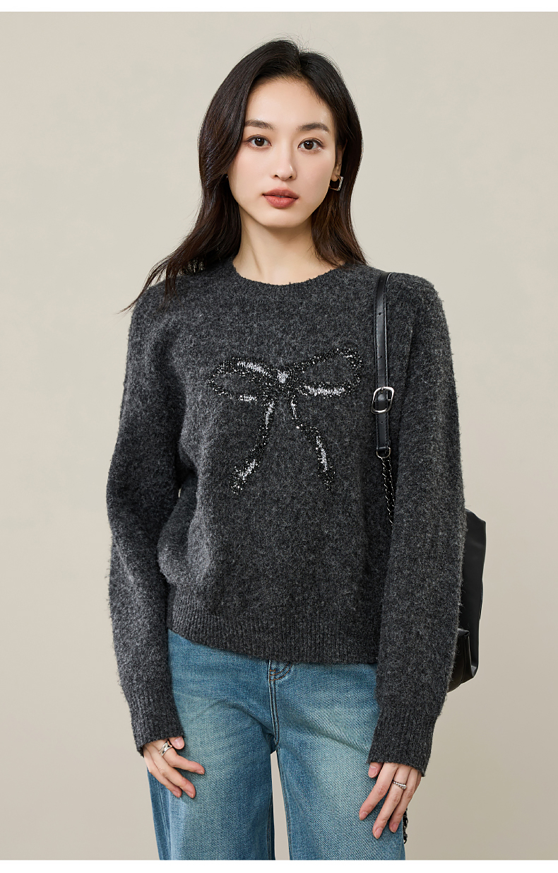 【蝴蝶结毛衣】逸阳冬新品时尚圆领宽松显瘦休闲加厚打底套头毛衣5323