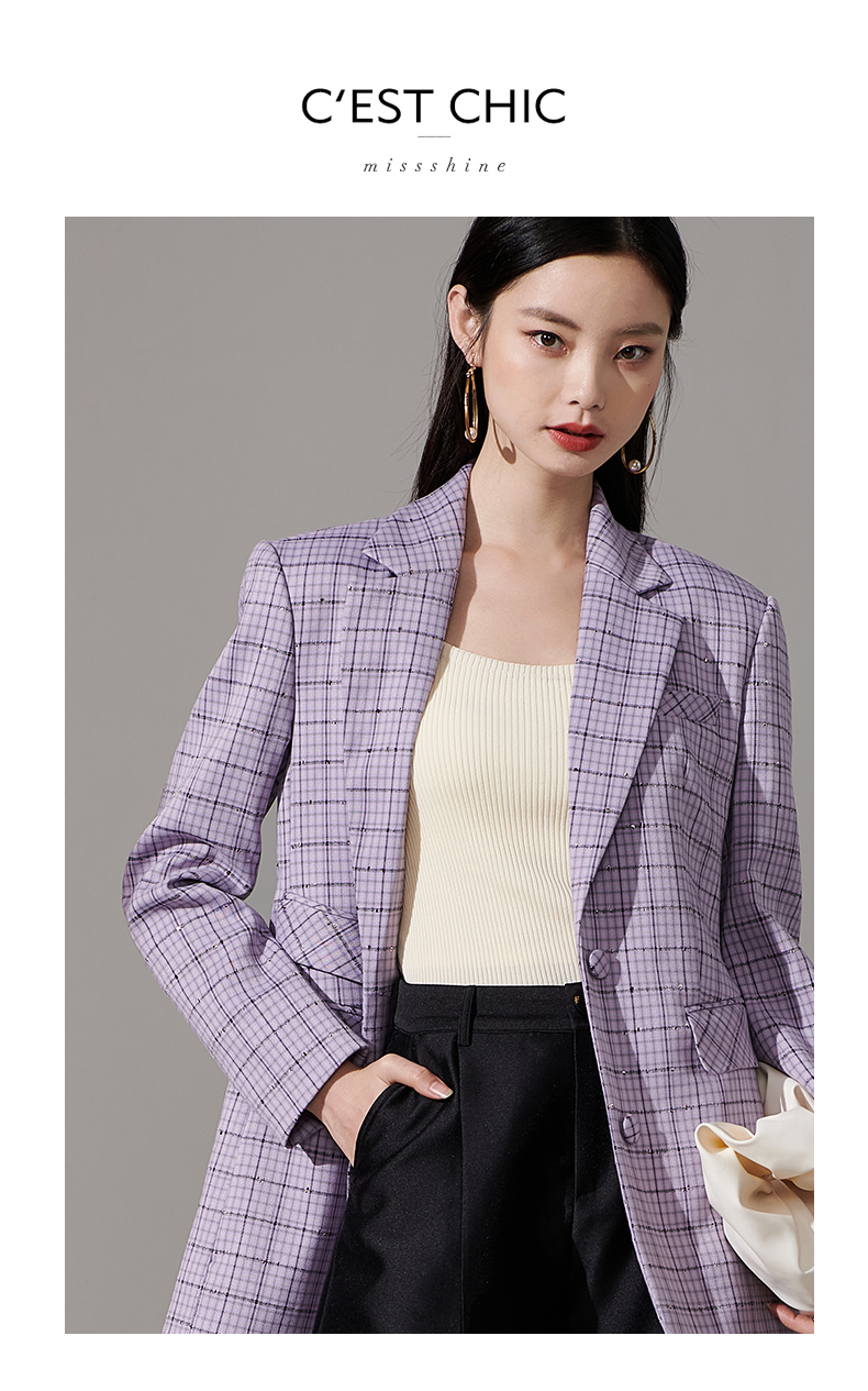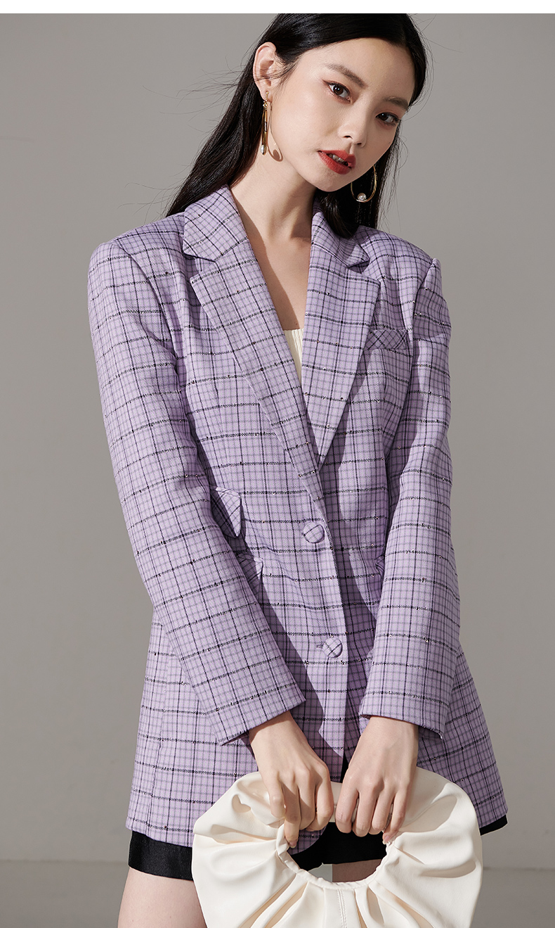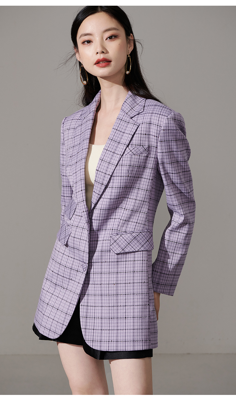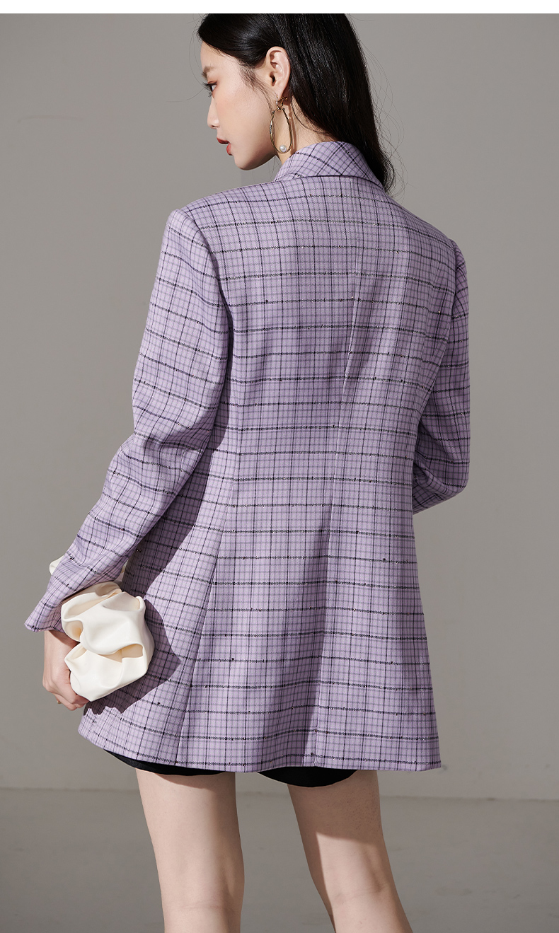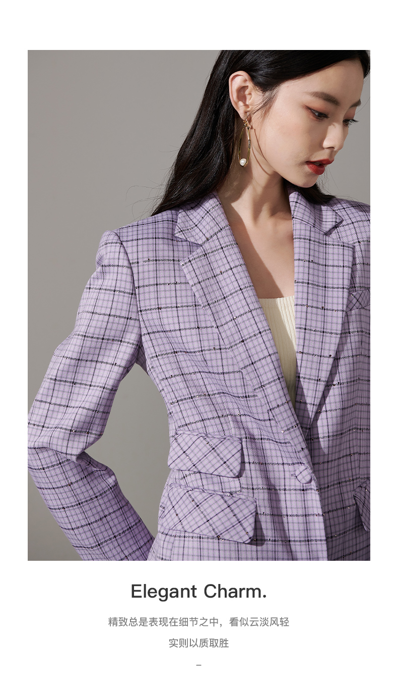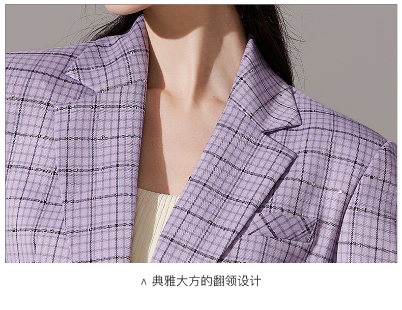 剩S/M/L 芳外新款格纹西服时尚百搭通勤外套女8T23AX0002