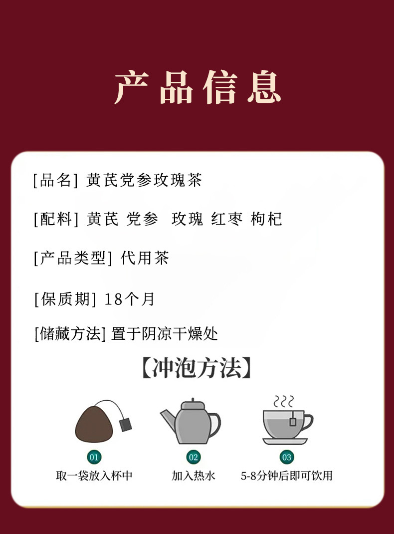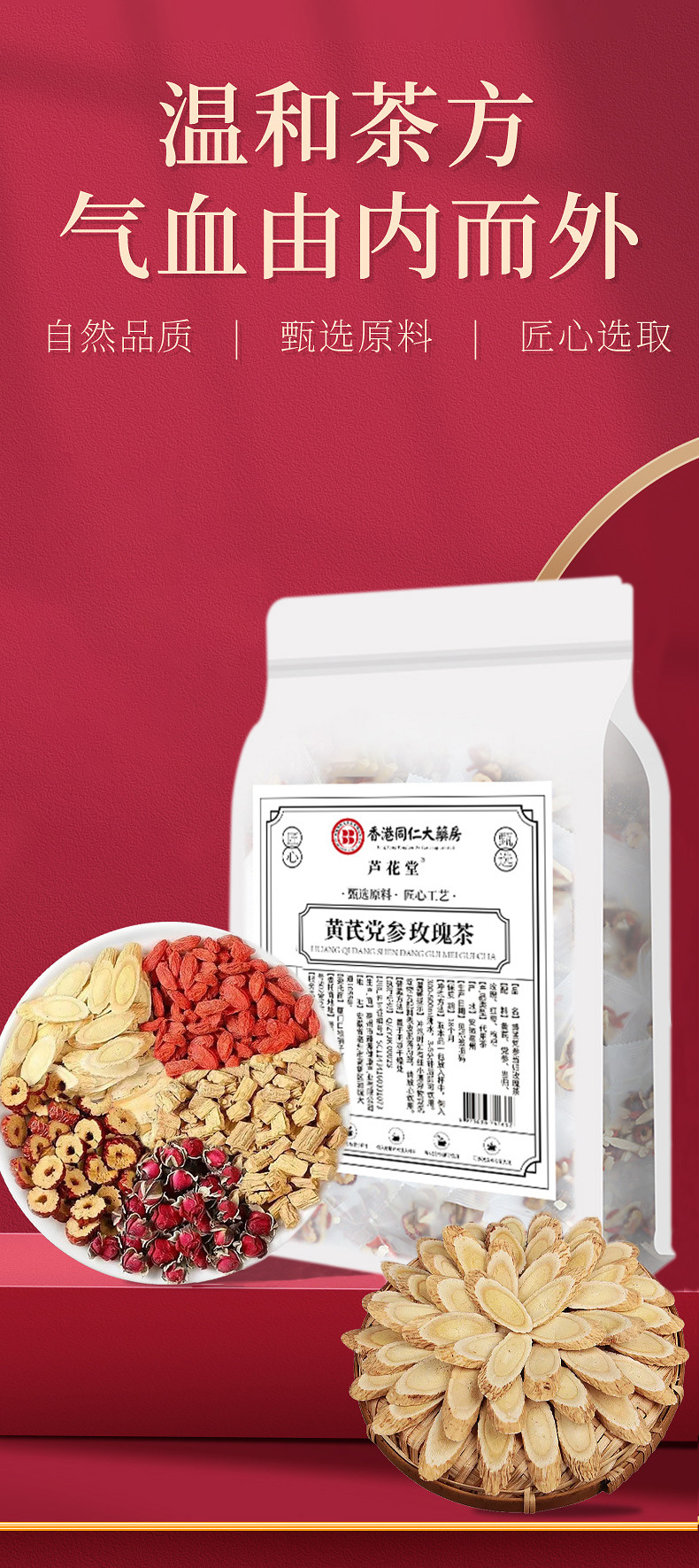 【温和配方!黄芪党参玫瑰茶】甄选优质原料,黄芪,党参,玫瑰,红枣,枸杞,好气色不用妆,美丽窈窕不求人,女神茶养生花茶L