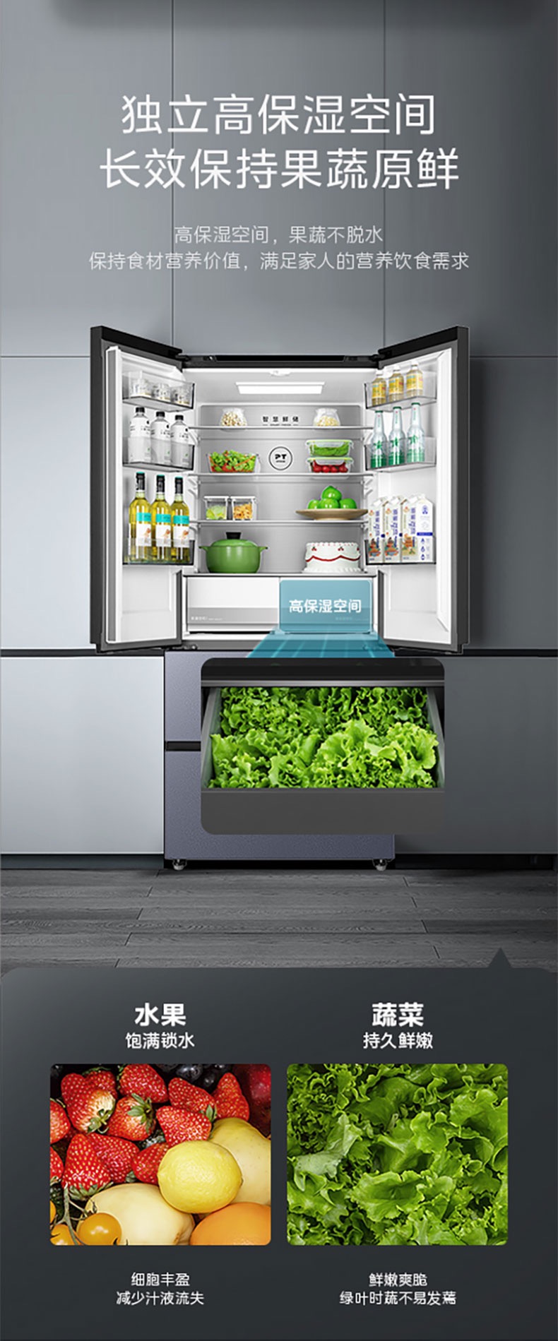 美的(202866)冰箱 BCD-516WUFGPZM 冰凝灰 温湿精控 纯平全嵌