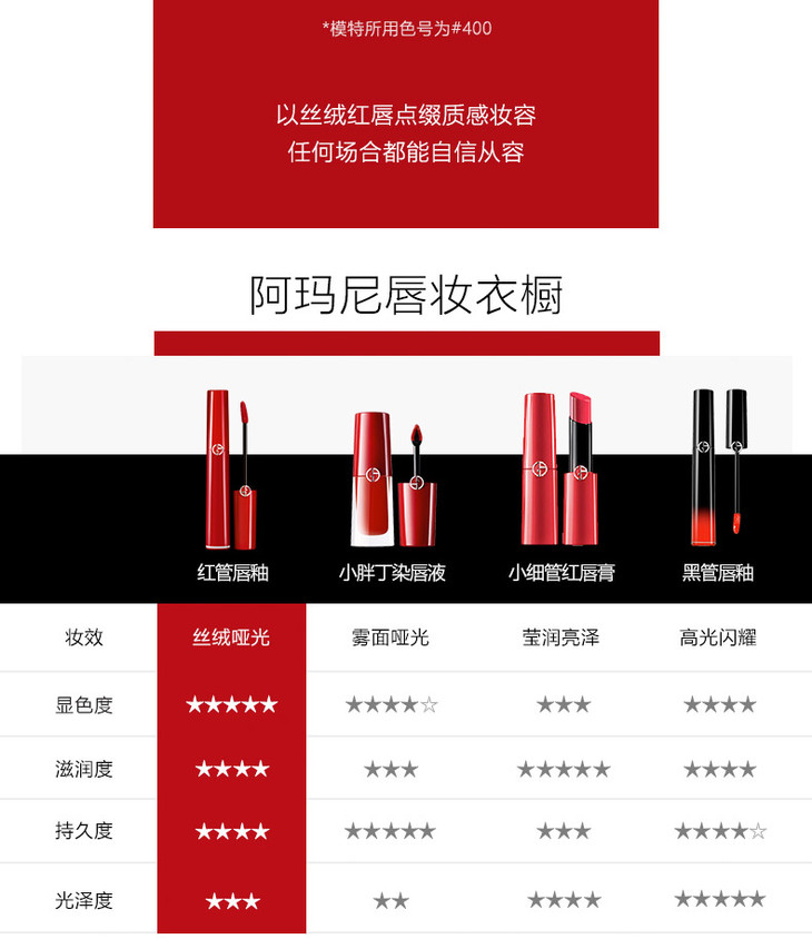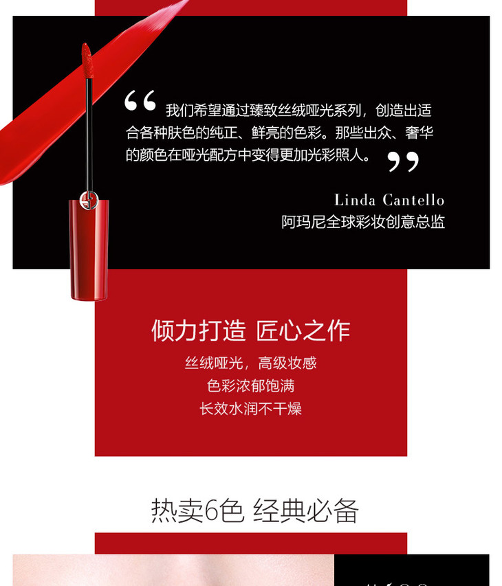 【香港直邮】阿玛尼 丝绒 哑光唇釉 #402(红管)