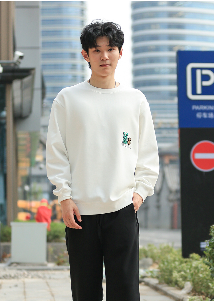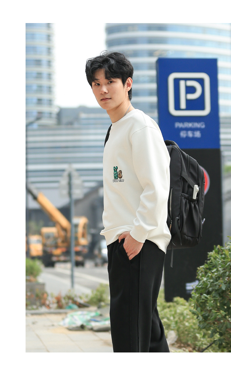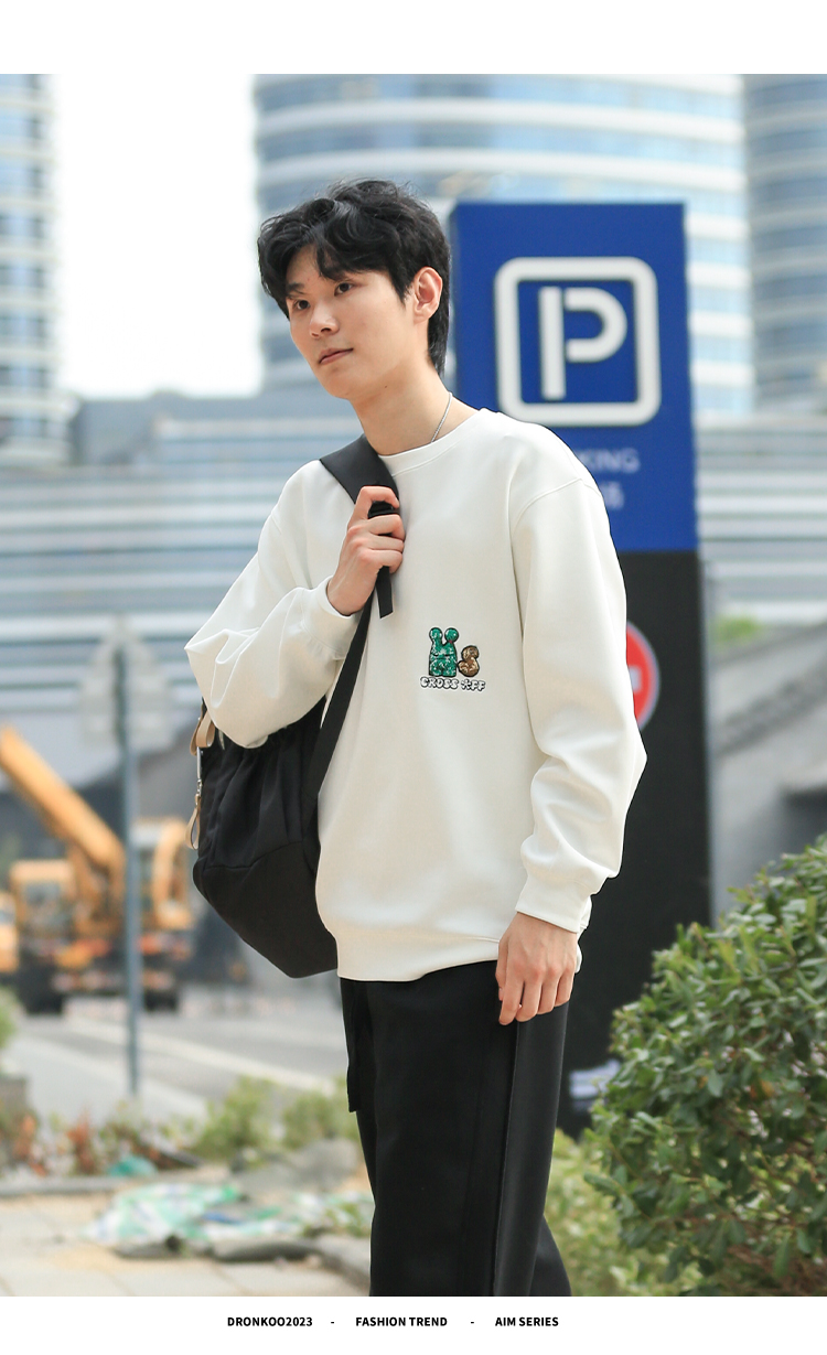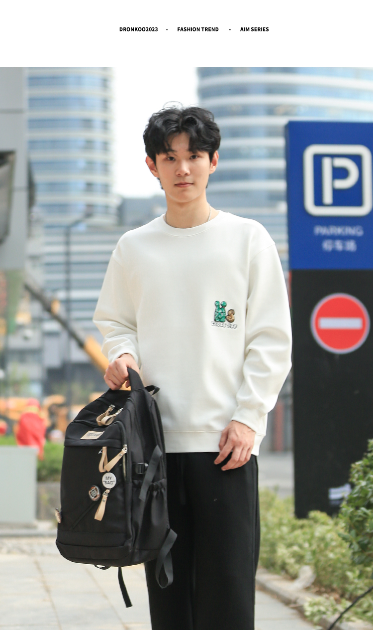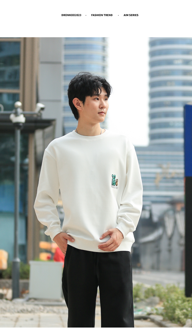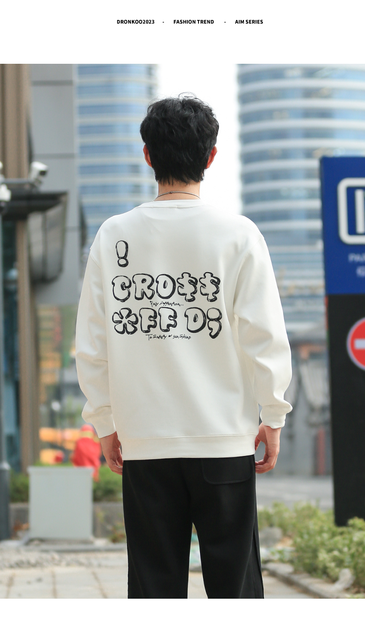 DRONKOO 2024 圆领前左侧小刺绣后镂空字母微阔中厚卫衣