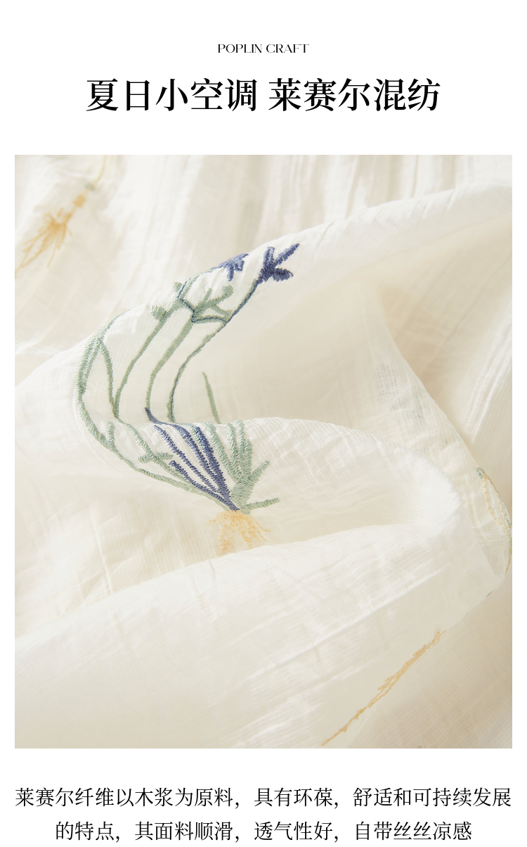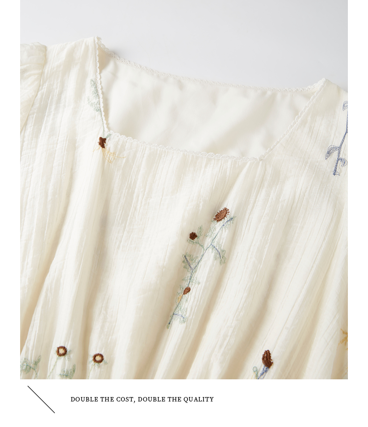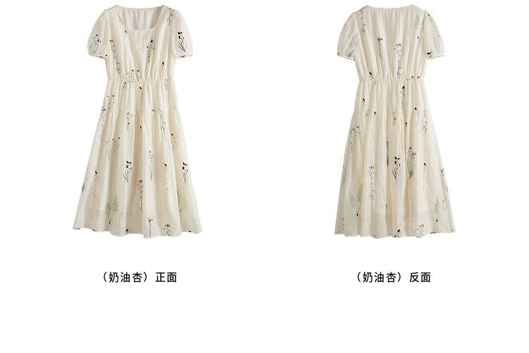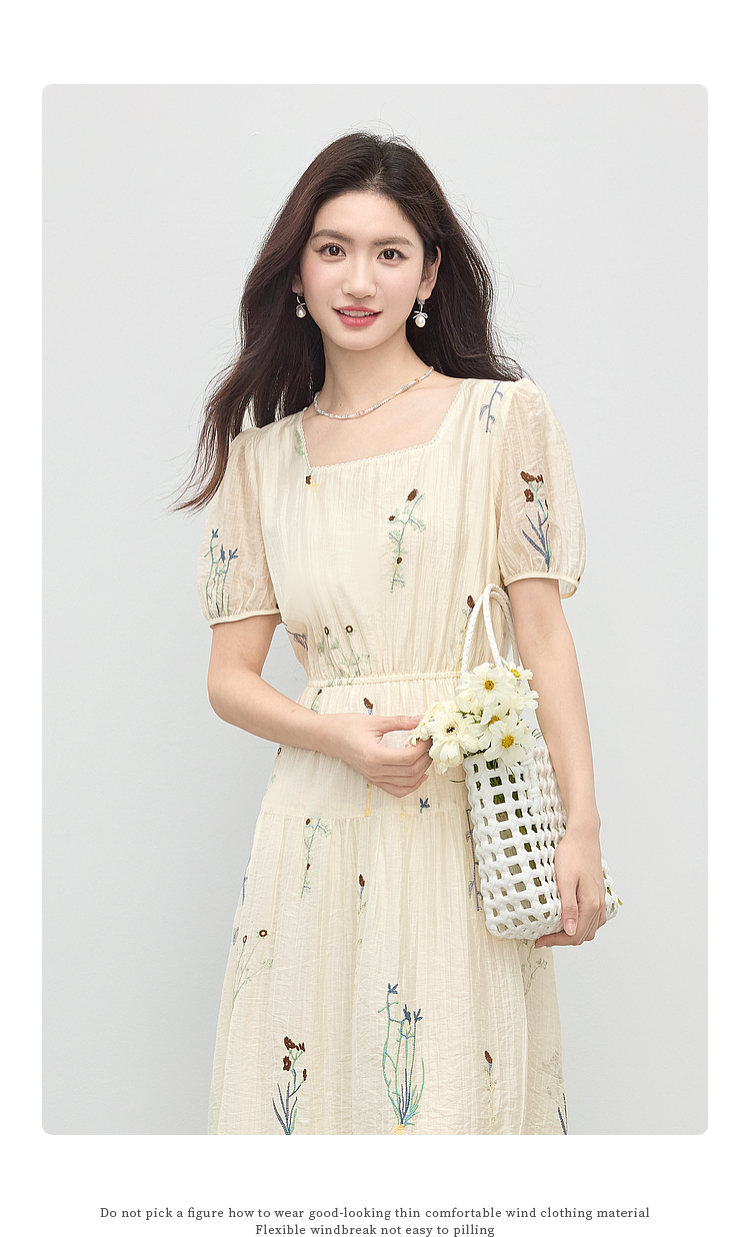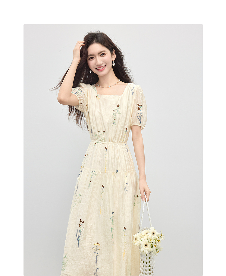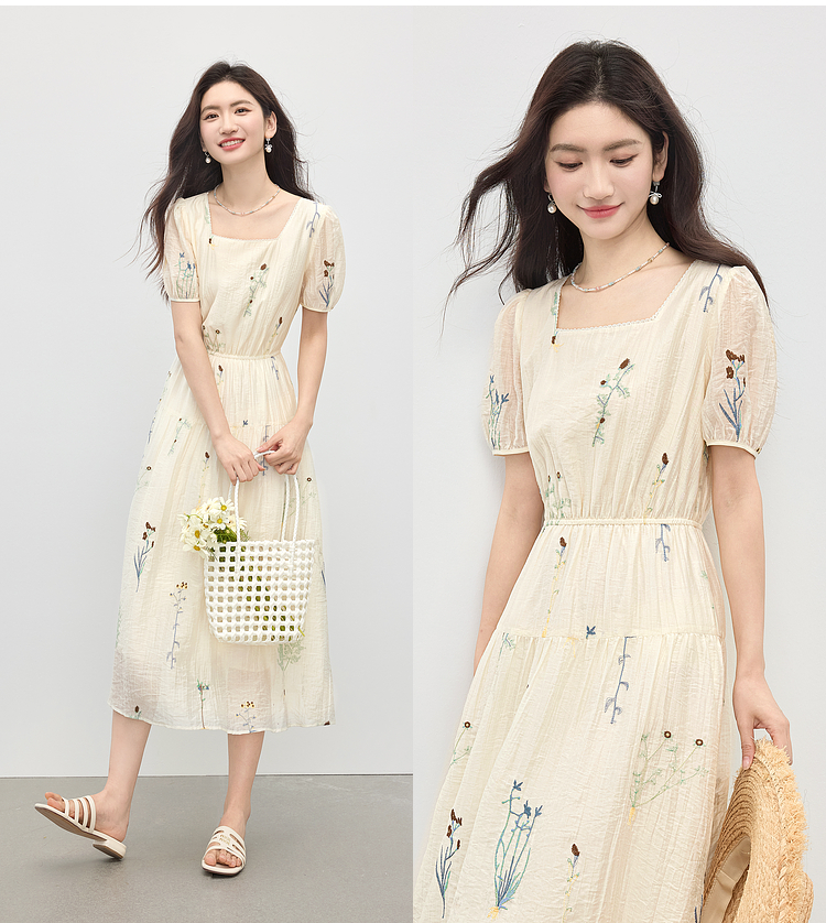 【专属特价】熙世界植物花卉刺绣天丝连衣裙女2025夏日新款法式方领莱赛尔裙子