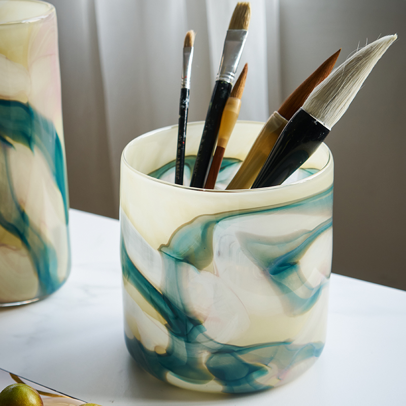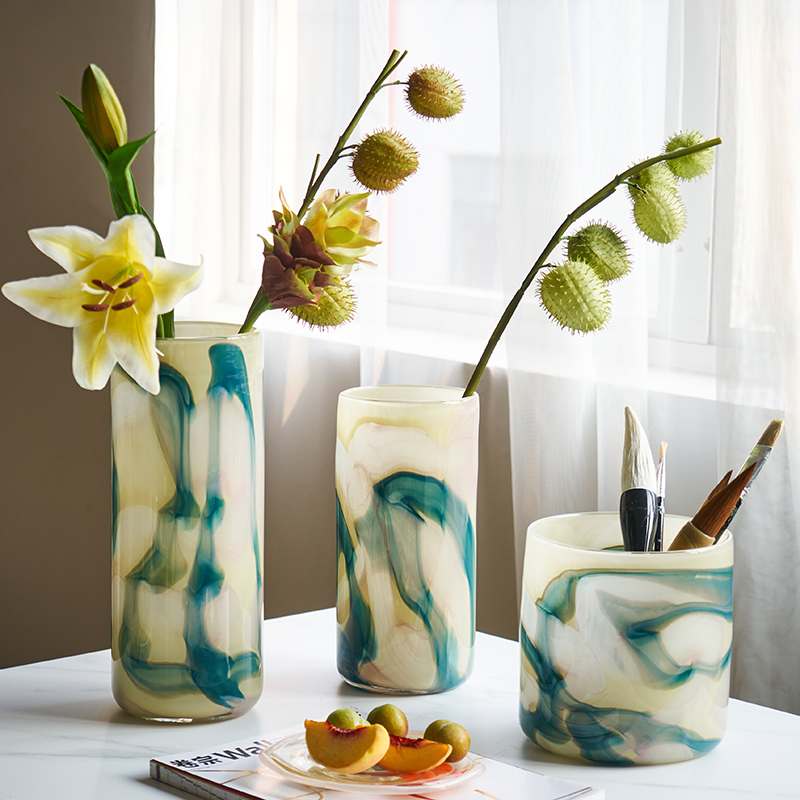 碧轩现代简约直筒渐变创意水墨纹水培花瓶客厅餐桌样板间台面器皿