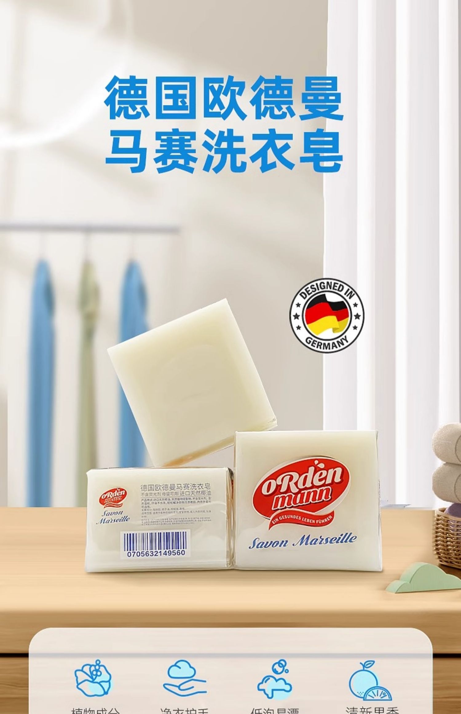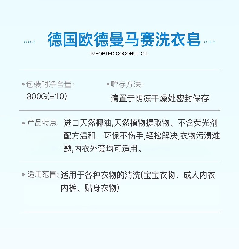 欧德曼 马赛洗衣皂 300g【全新品】