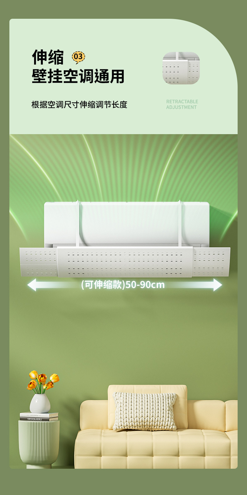 「升级伸缩款!挂机通用」空调挡风板壁挂式通用新款导风板 居家日用婴幼儿坐月子防风直吹遮风板