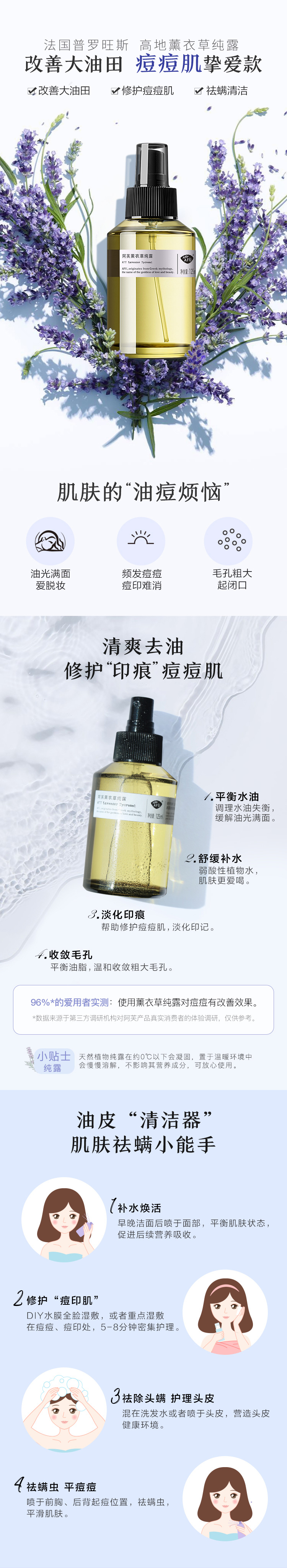 1阿芙薰衣草纯露补水控油收缩毛孔淡化祛痘印祛痘精油JPY带授权招加盟代理