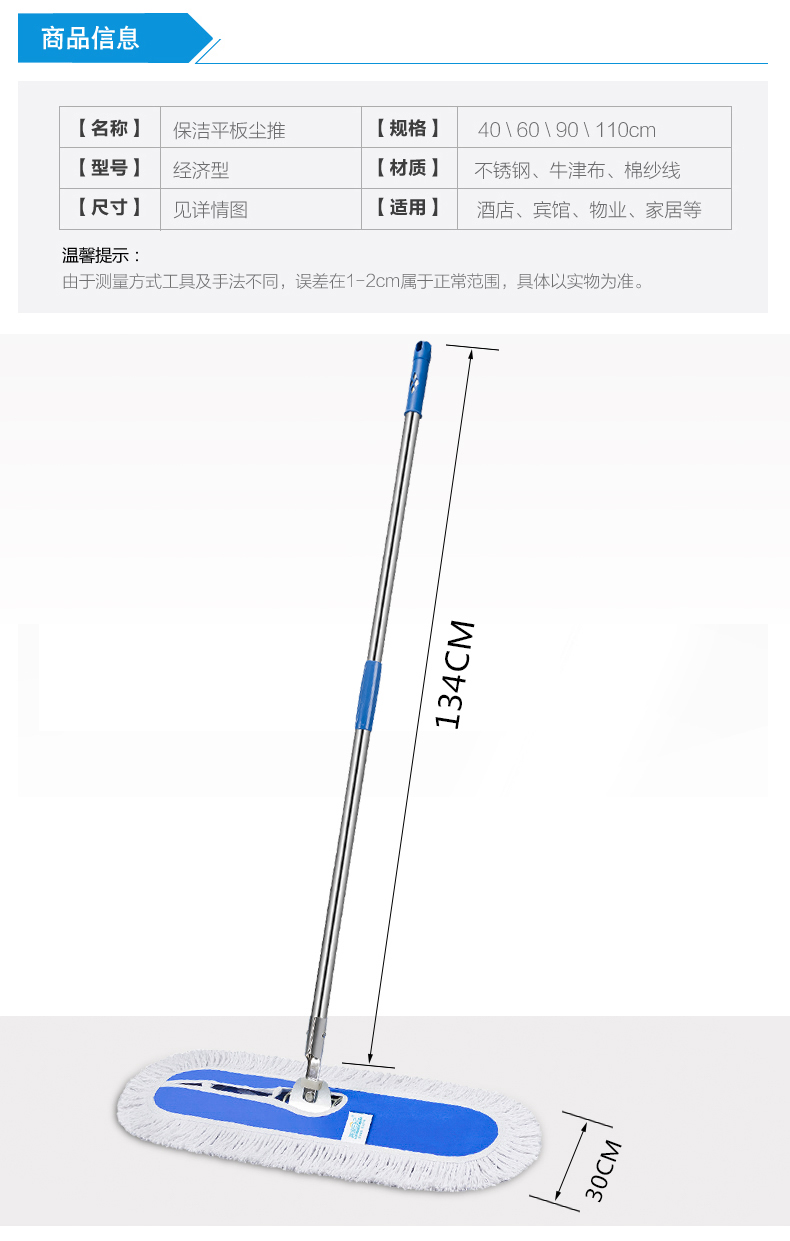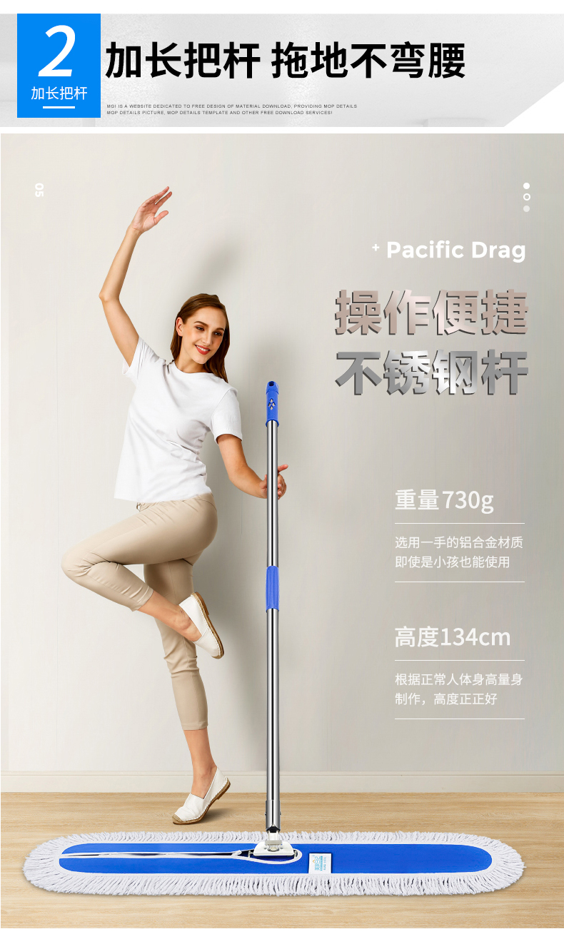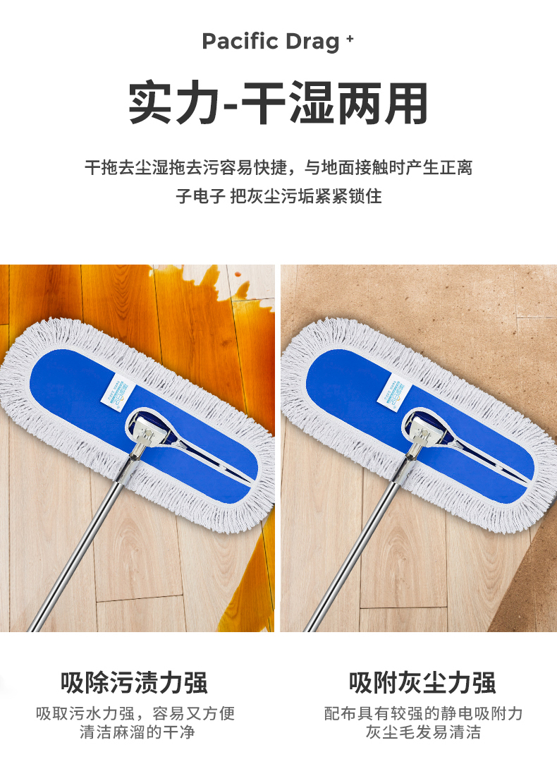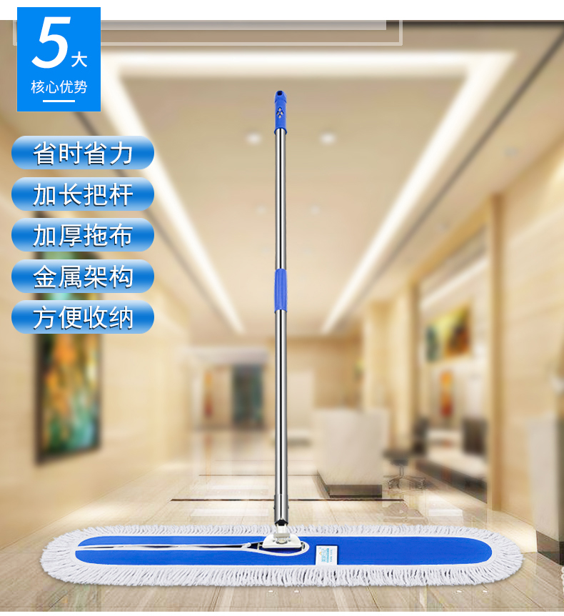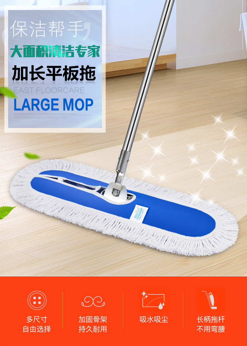 美家日记 商用平板拖把 大号尘推 木地板大理石瓷砖吸水棉纱平板拖把110CM