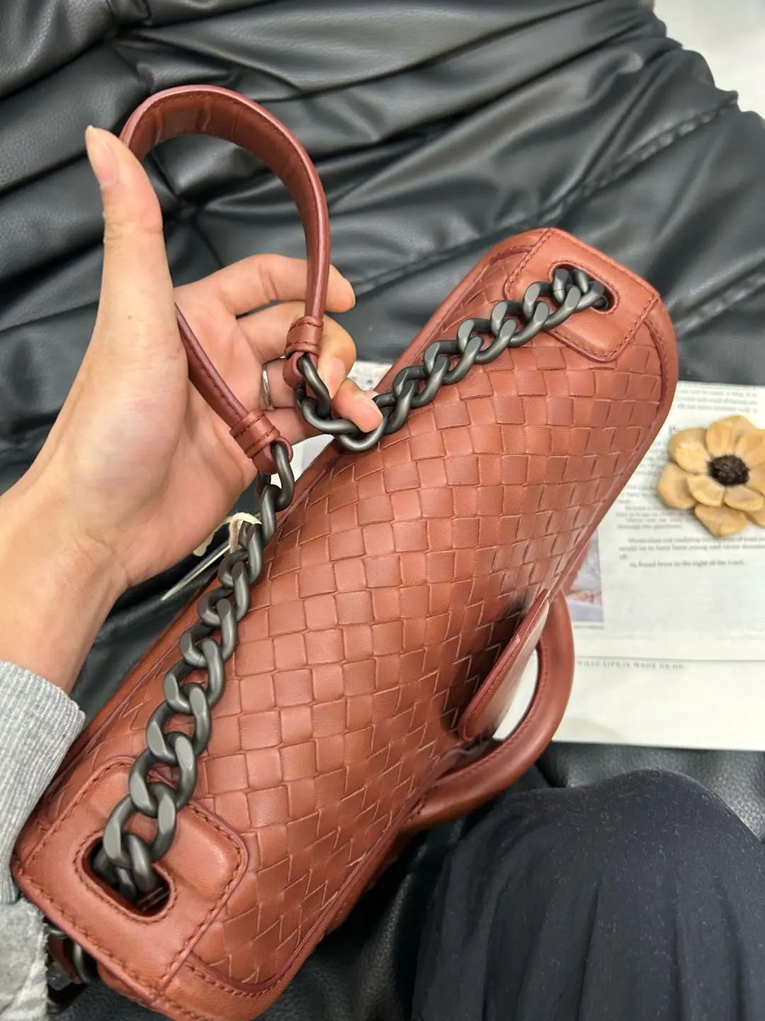【商品详情】正品二手 Bv rialto 编织 牛皮 酒红 单肩包👜97新 30*18 配件:镜子 防尘袋。经典编织技术 休闲高级