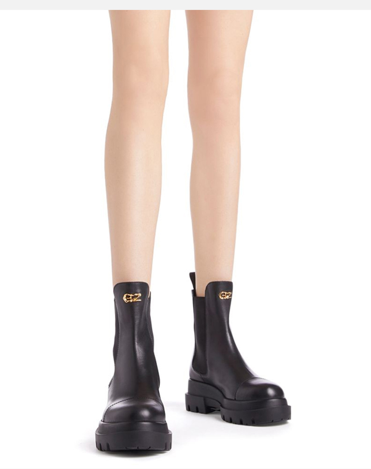 Giuseppe Zanotti 女士GZ金属徽标切尔西中筒靴 黑色 I270016001