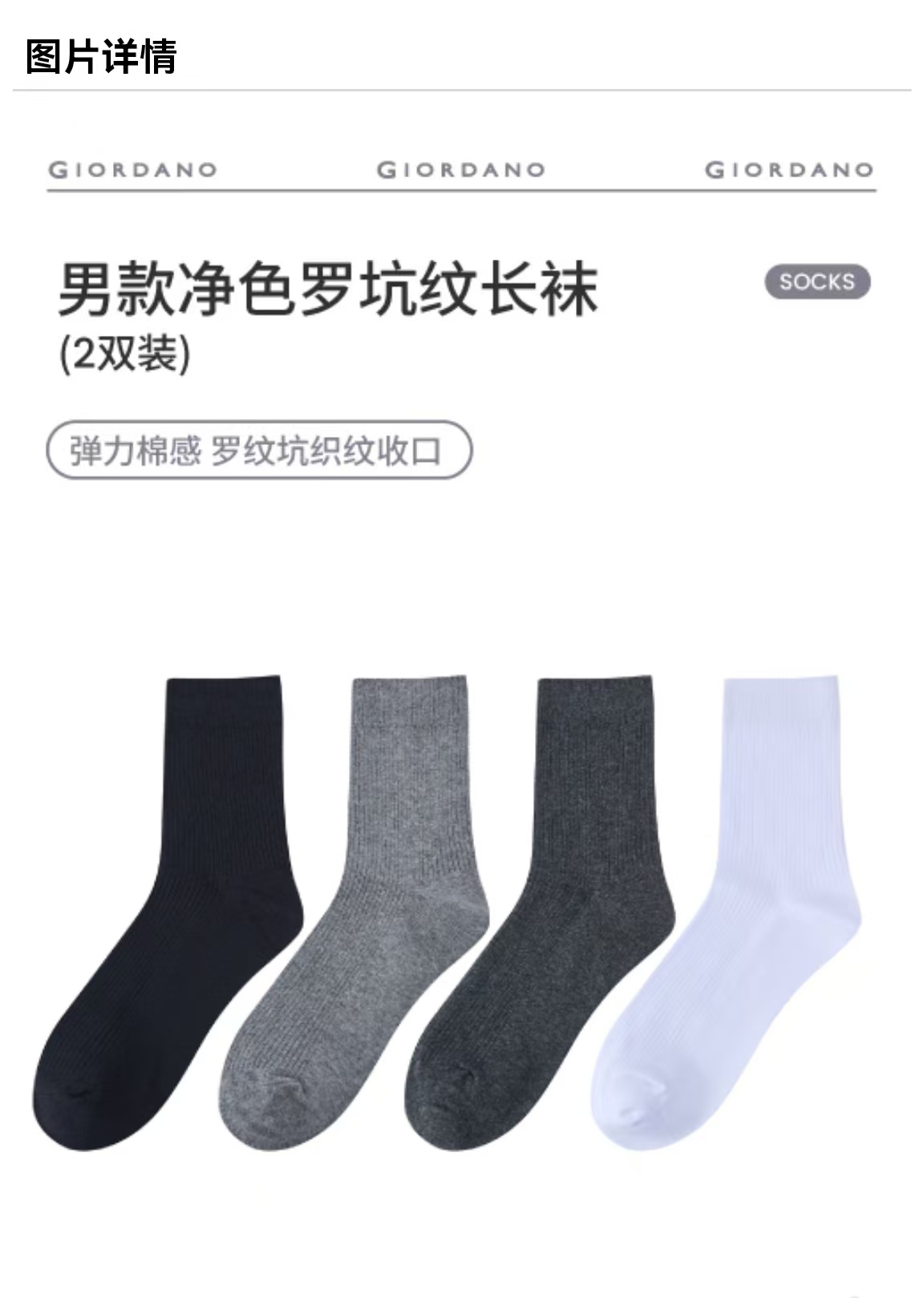 佐丹奴男款净色罗坑纹长袜(一扎2双)01156105