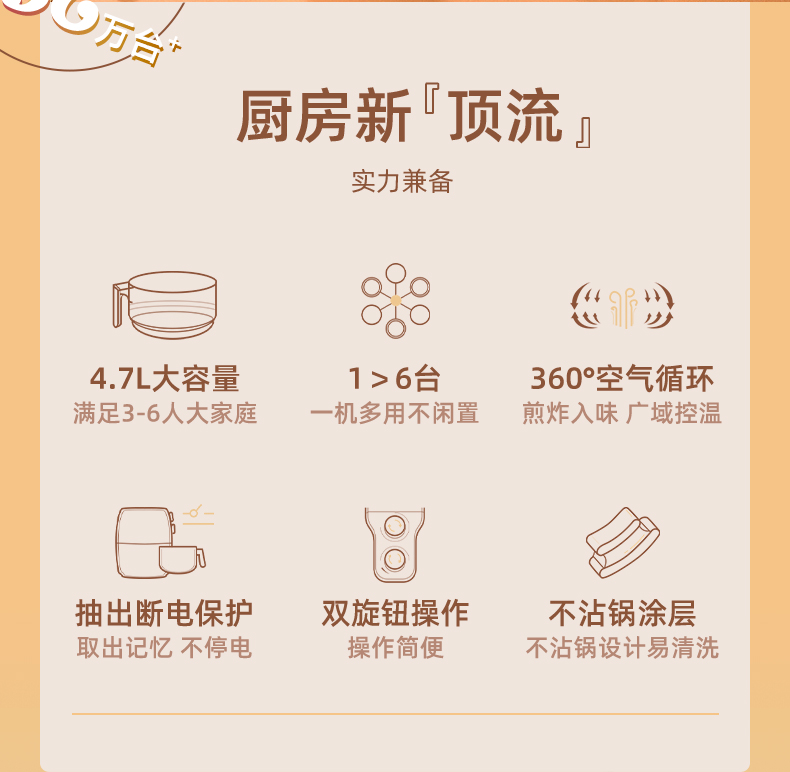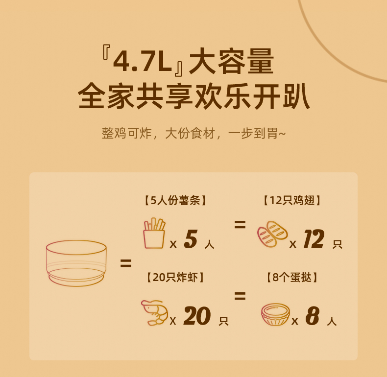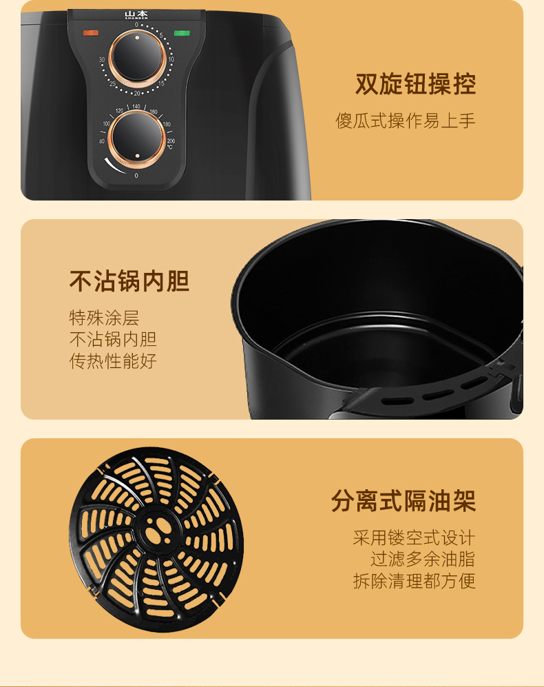 【居家好物】山本(SHANBEN) 空气炸锅 4.7L大容量家用智能多功能大功率低脂烤箱 8206