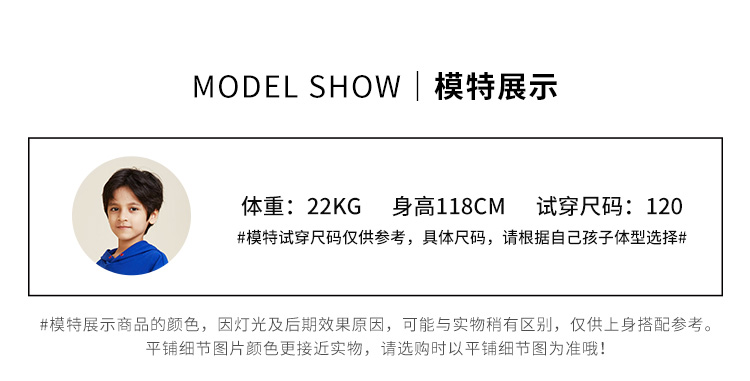 | 参考身高: 110/52 120/56 130/60 140/64 150/68 160/72 | 适用季节: 春秋 |