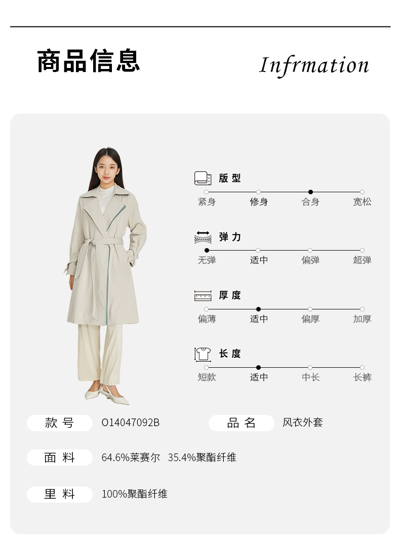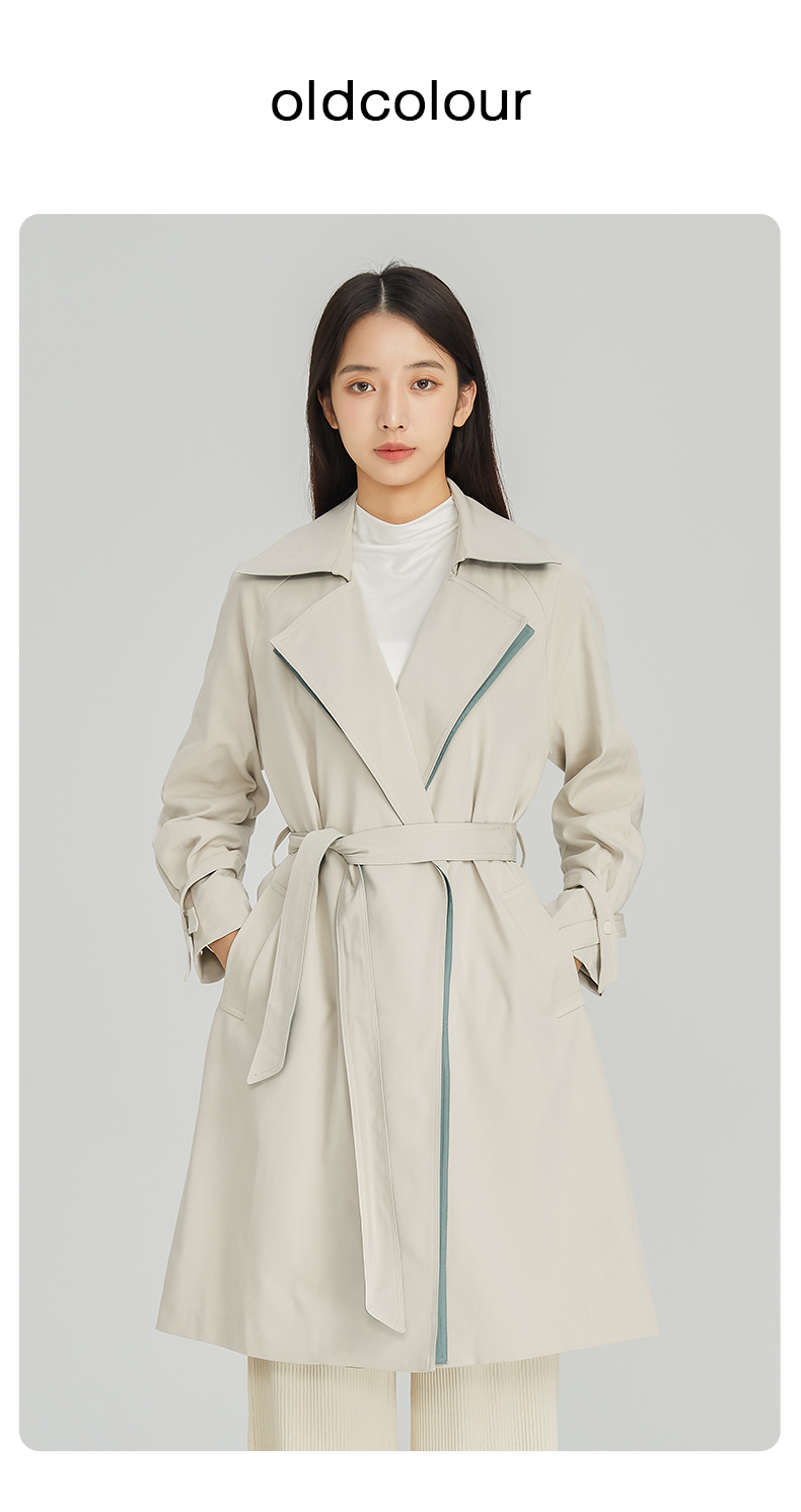 oldcolour春季高级感气质收腰显瘦中长款白色风衣外套女O14047092B