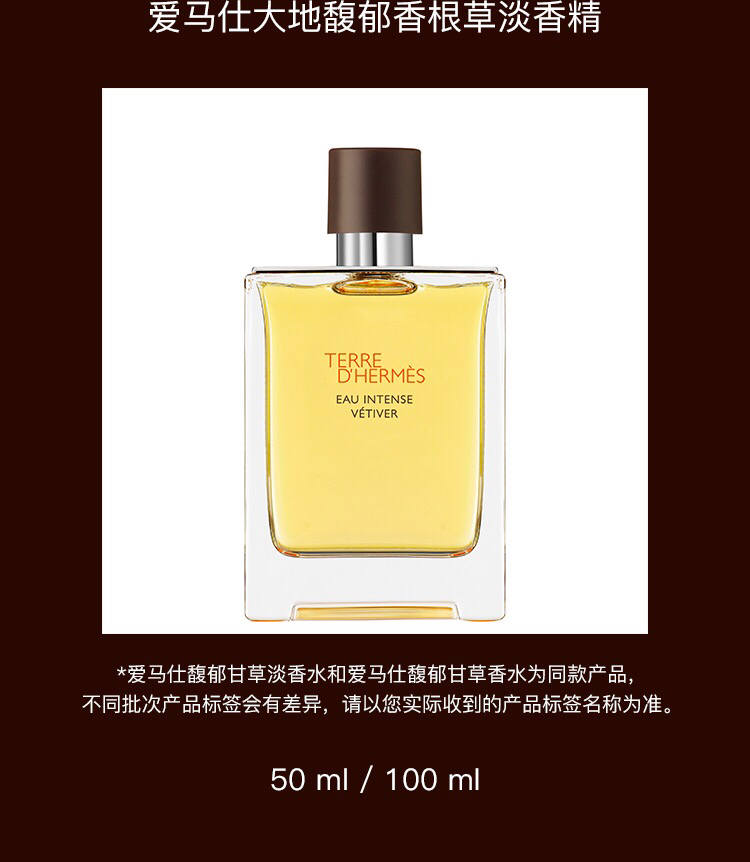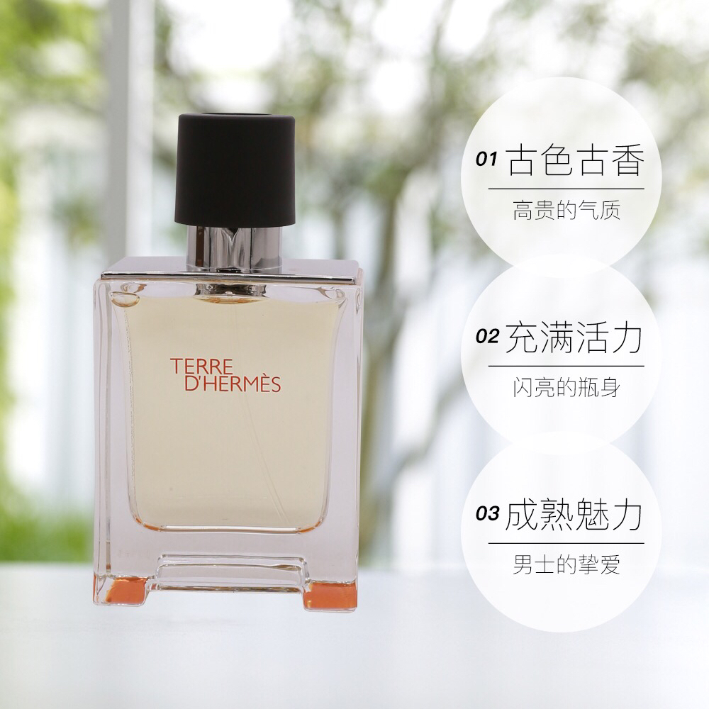 【海关保税直发】Hermes爱马仕大地男士香水-馥郁香根草淡香持久留香-淡香50ml-会员5折