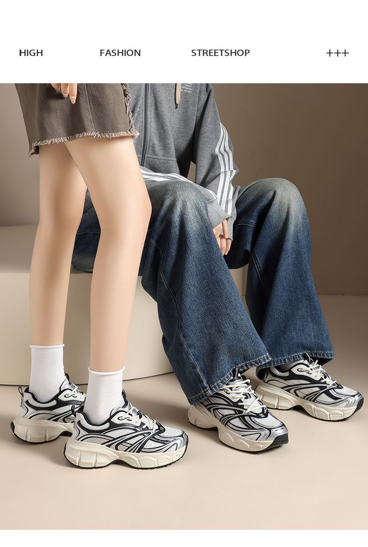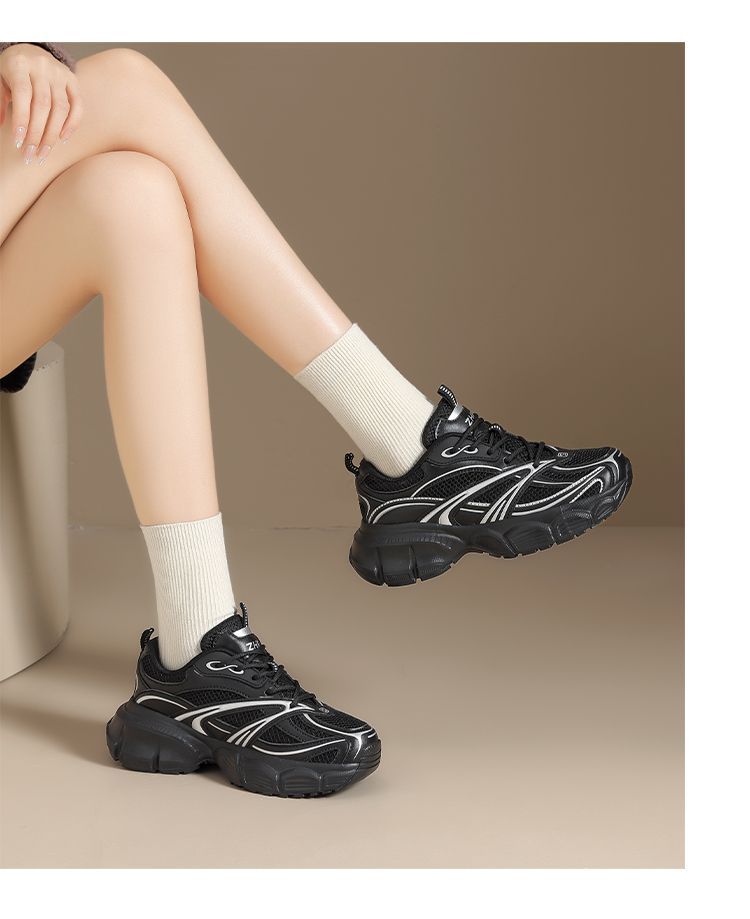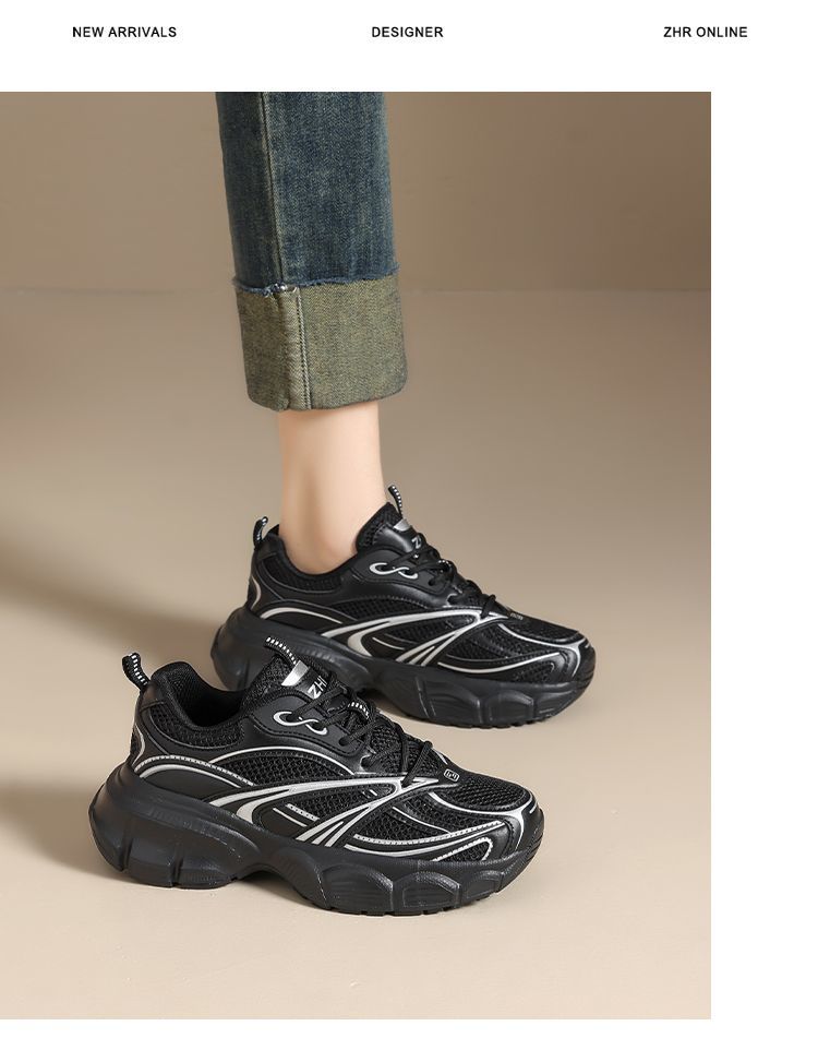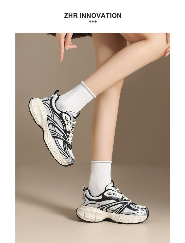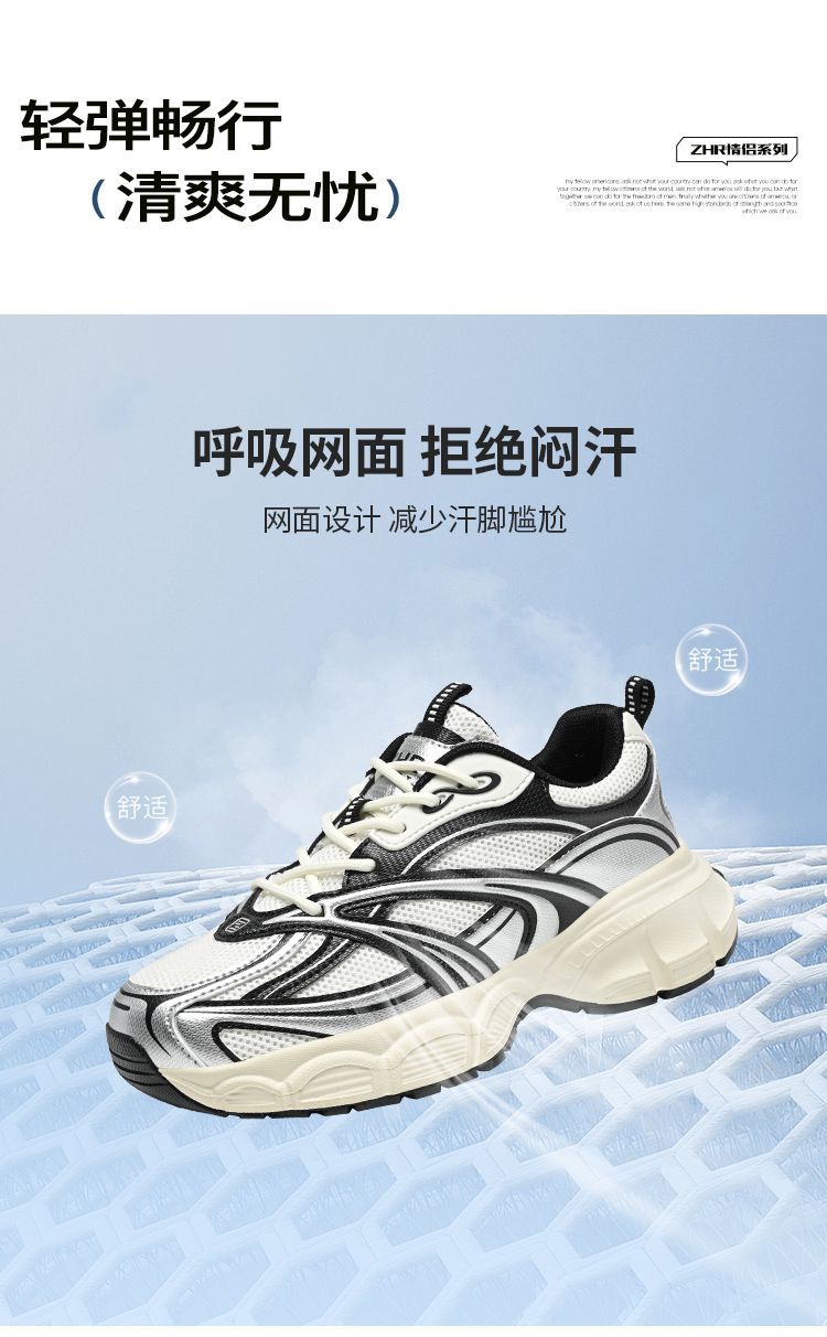【情侣同款】ZHR网面透气老爹鞋女春季百搭增高休闲鞋厚底运动鞋
