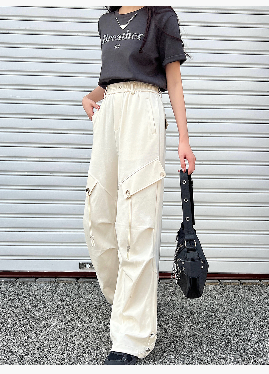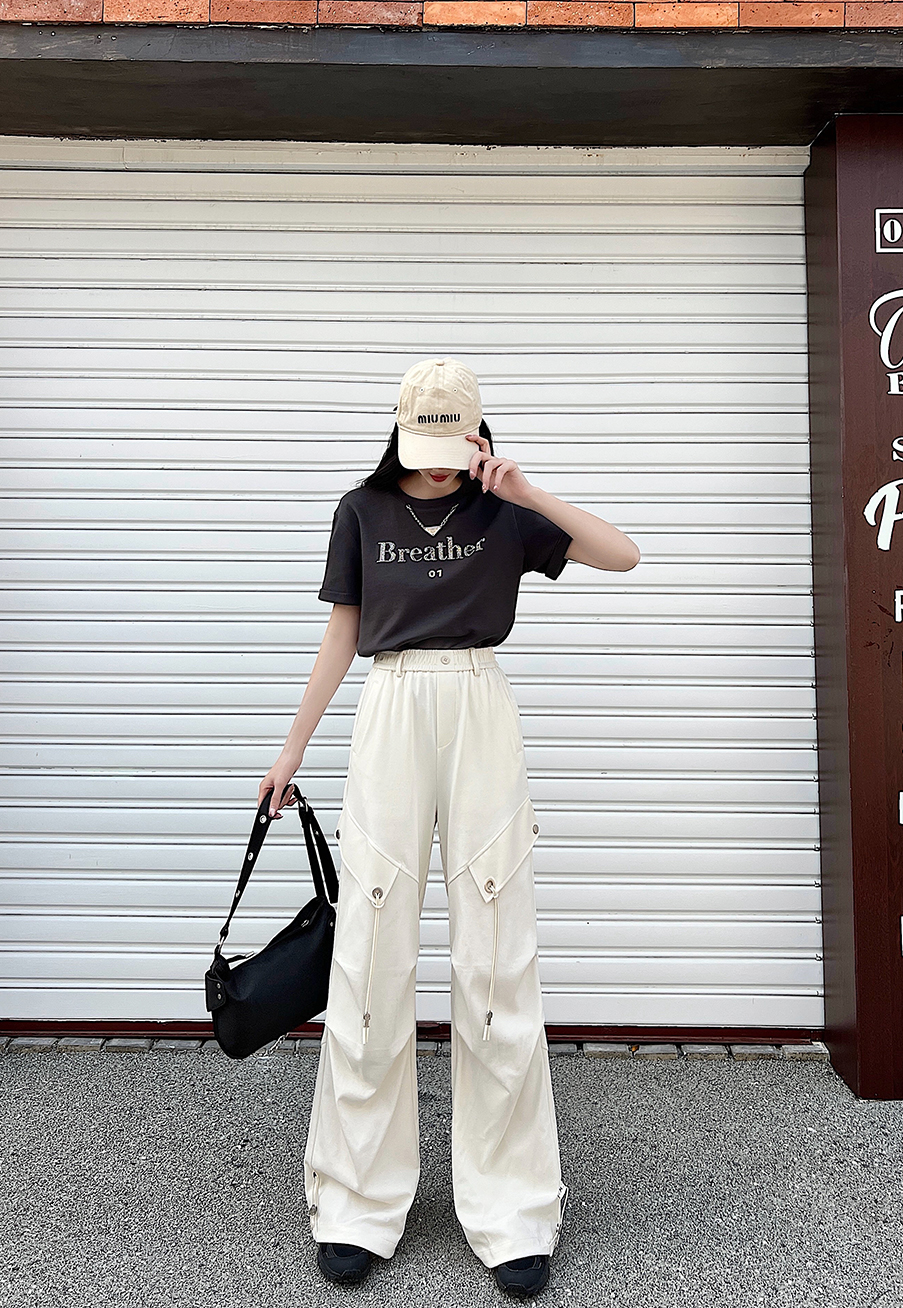 P&X设计师女装 夏季户外运动阔腿休闲长裤针织 824209268B 杏色