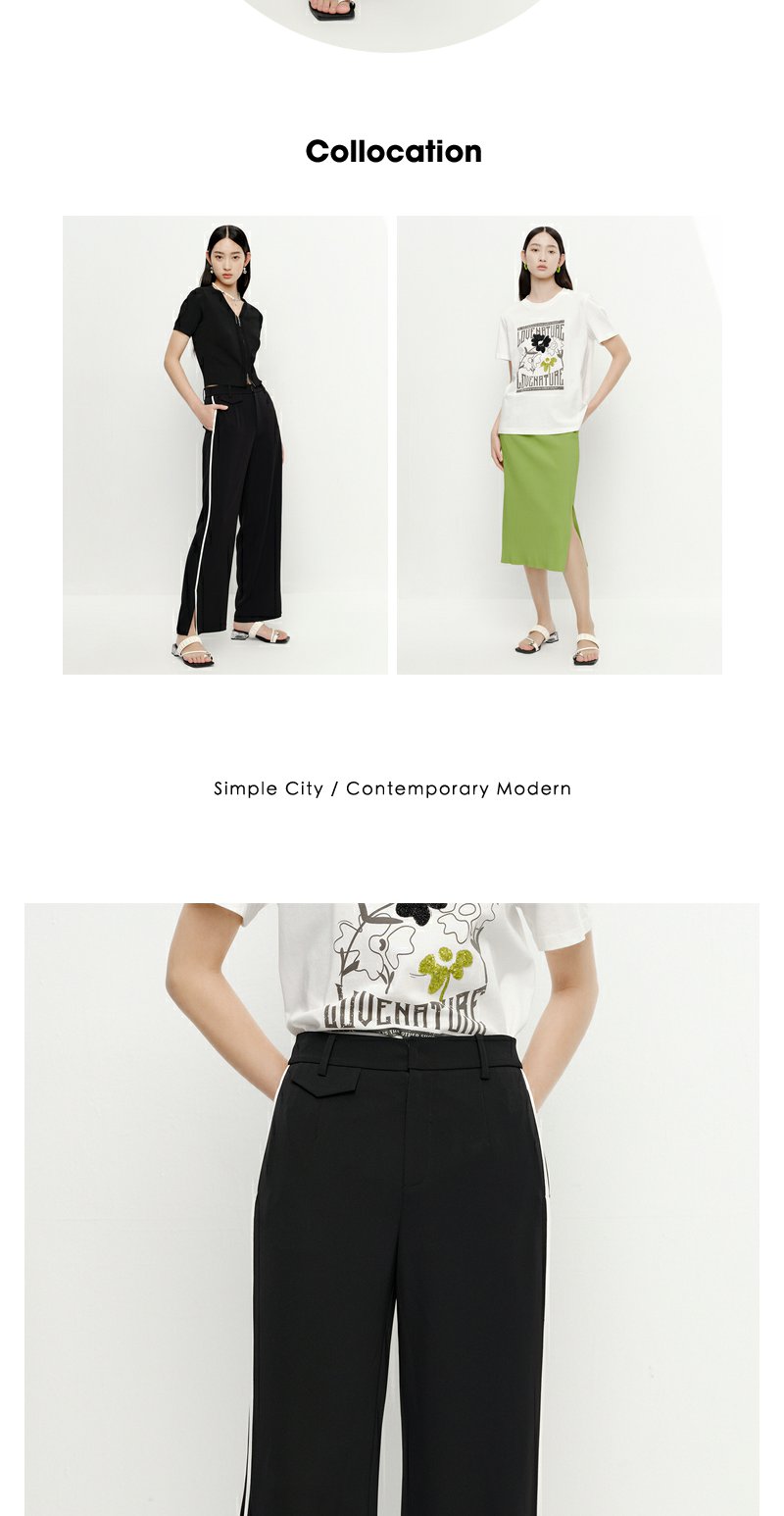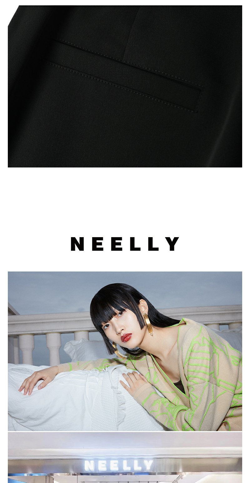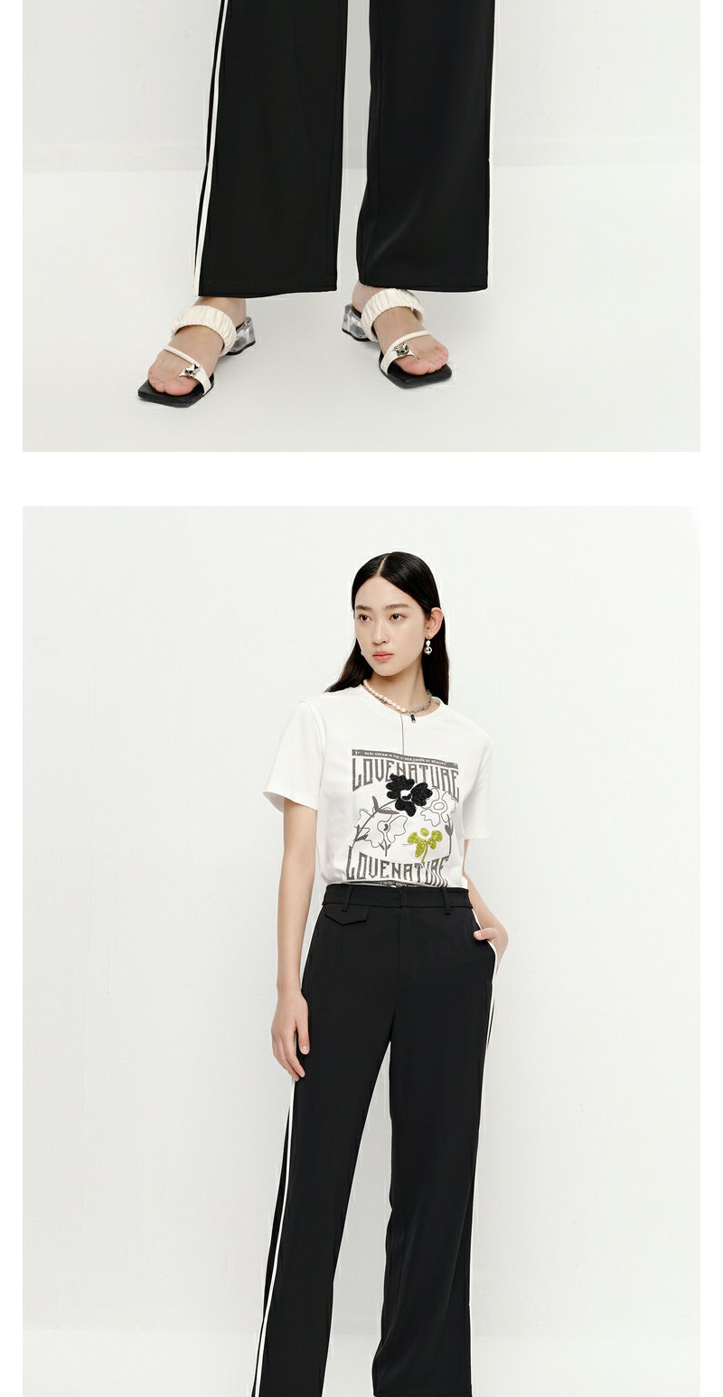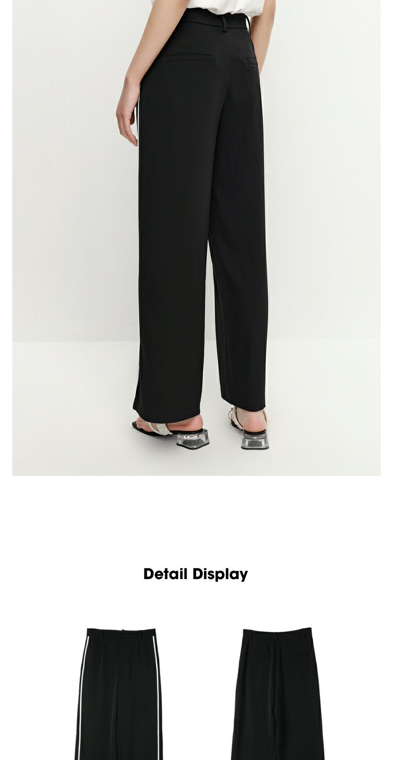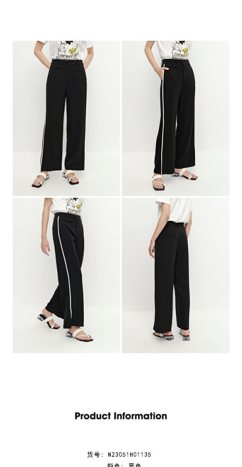 NEELLY纳俪商场同款黑色通勤西装裤女撞色竖条阔腿休闲裤百搭新款N23051H01135