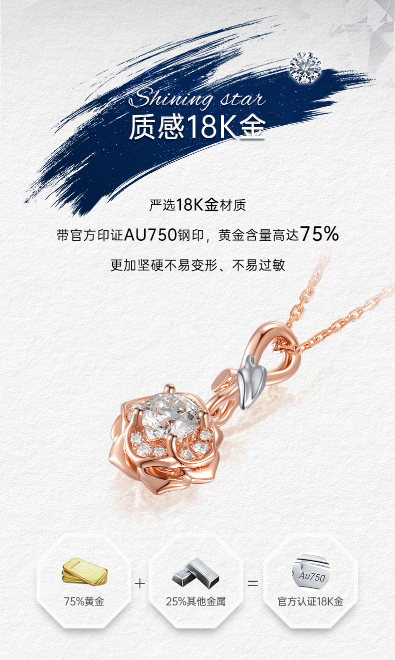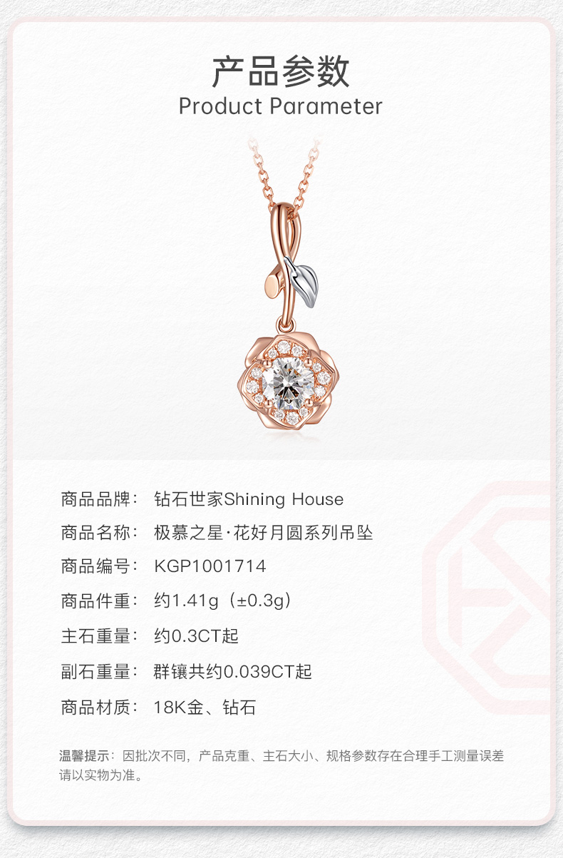 【极慕之星】【门店同款】钻石世家 18K金钻石吊坠 花好月圆系列钻石吊坠