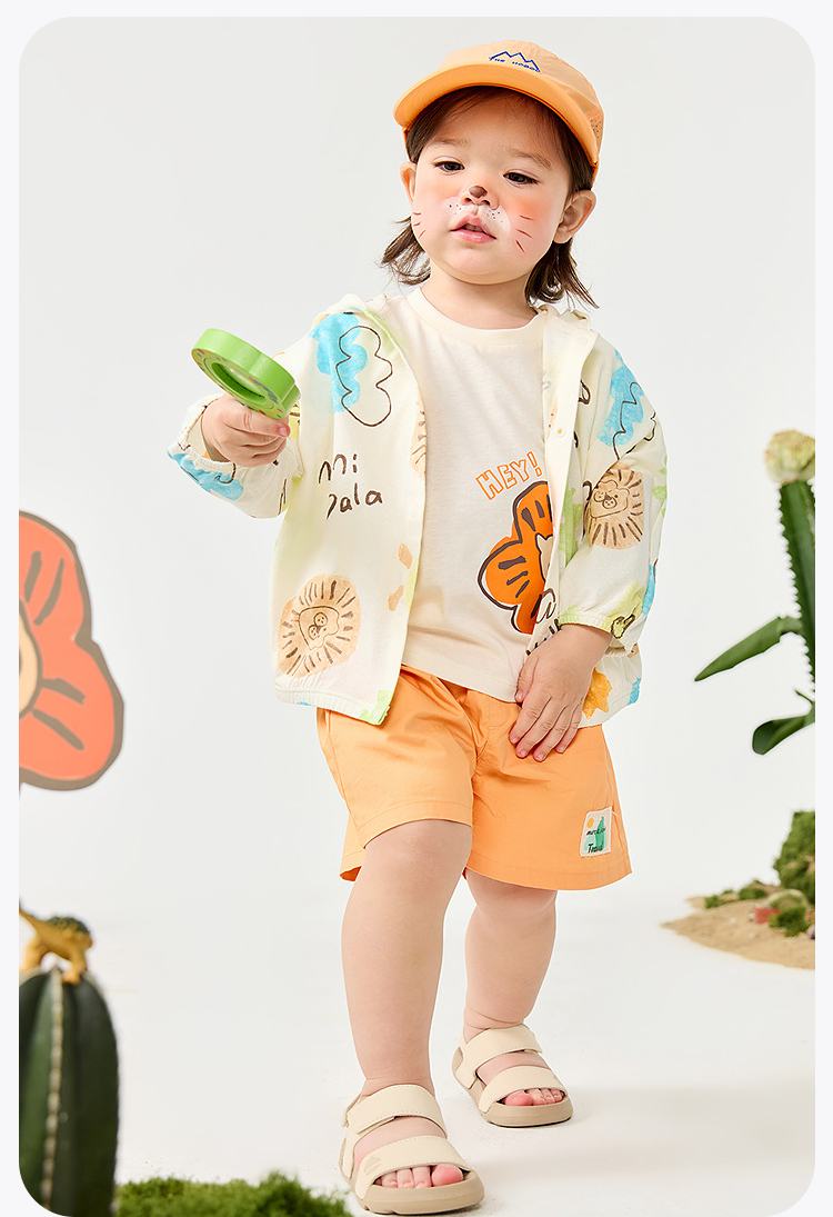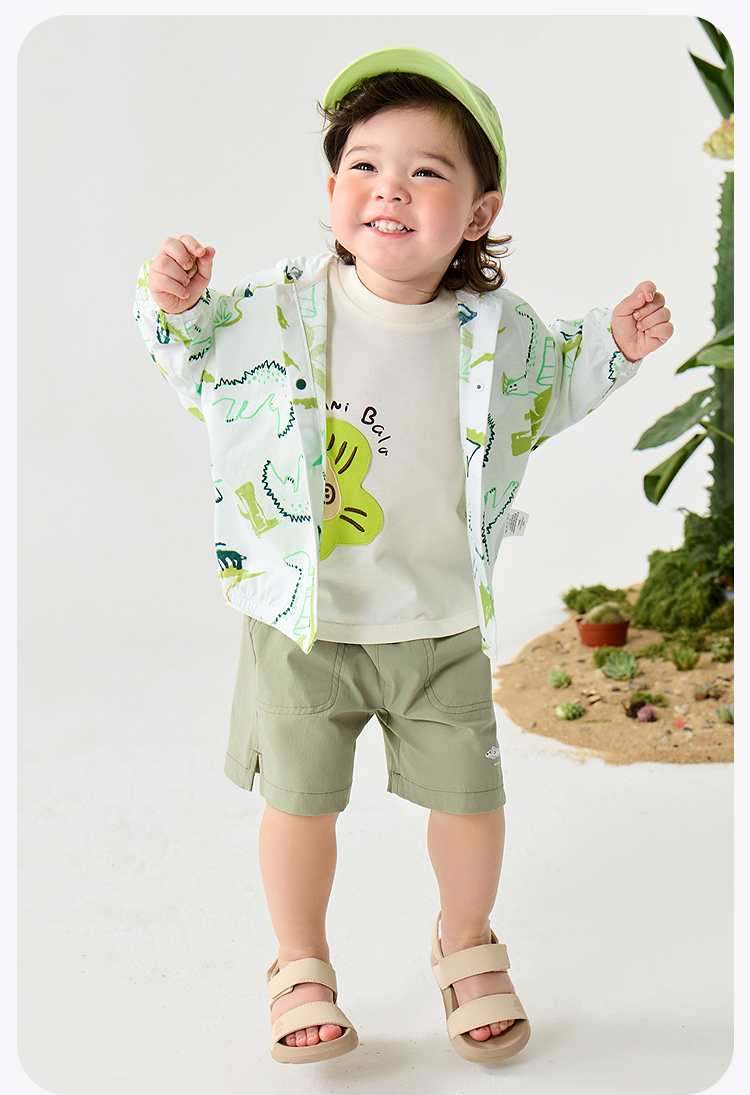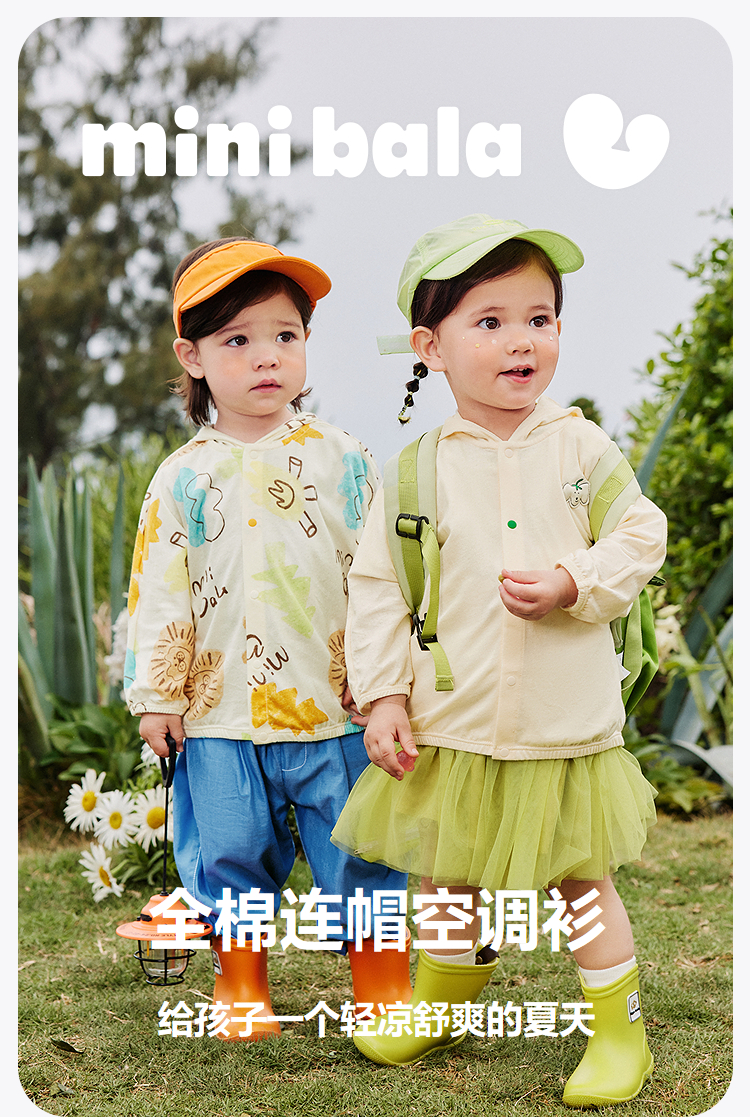 迷你巴拉男女童纯棉遮阳外套夏季新款婴儿轻薄透气宽松空调衫★