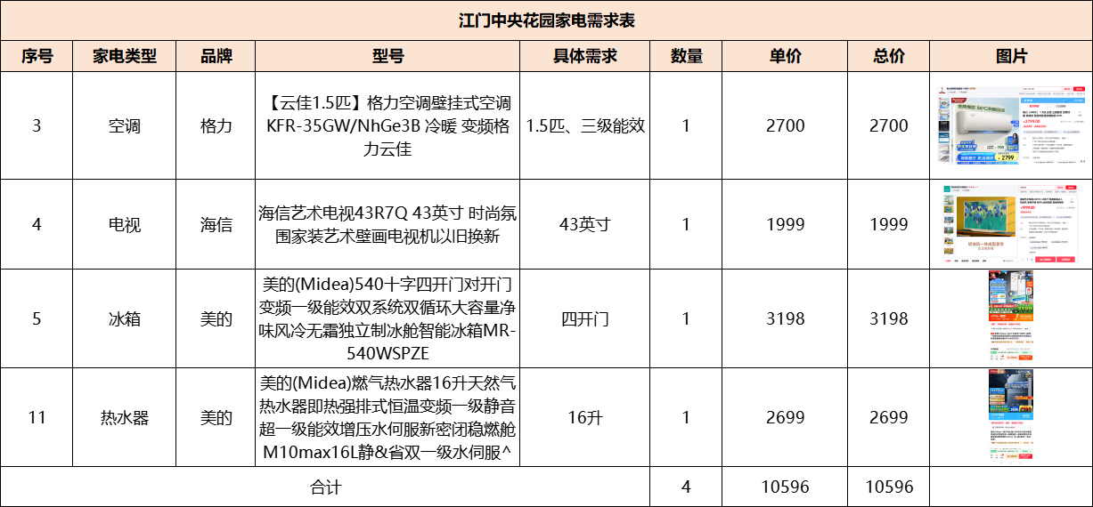 江门中央花园家电套餐