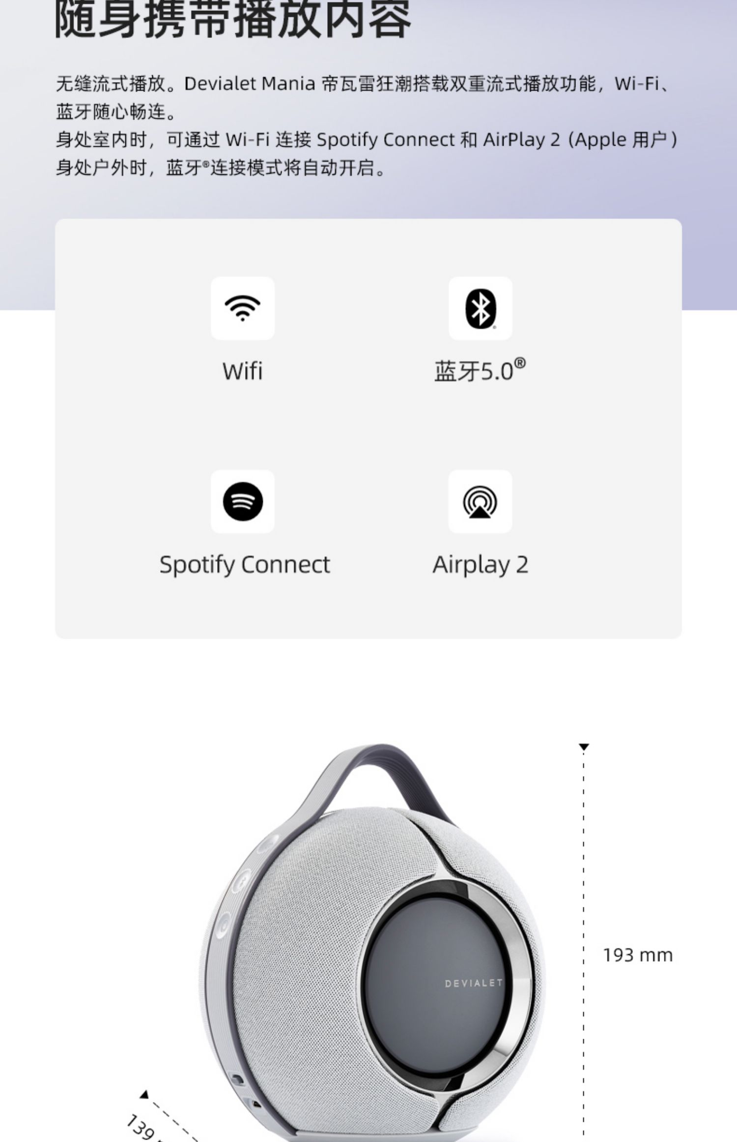 帝瓦雷/DEVIALET Mania 95dB 便携蓝牙音响