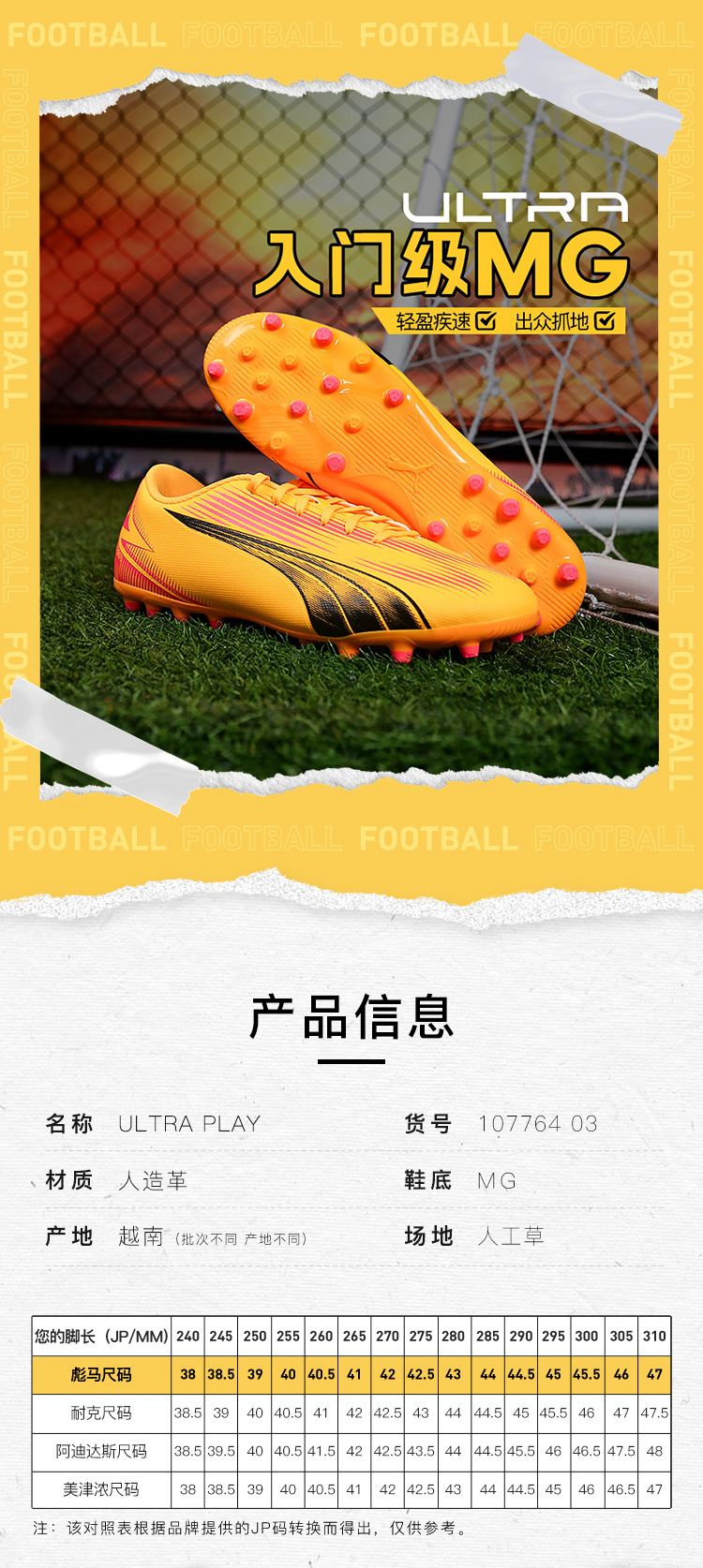 小李子PUMA彪马ULTRA PLAY MG短钉入门级成人足球鞋男107764 03