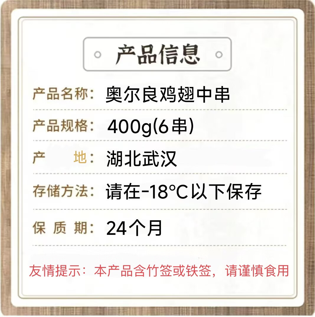 海味优鲜奥尔良鸡翅中串400g