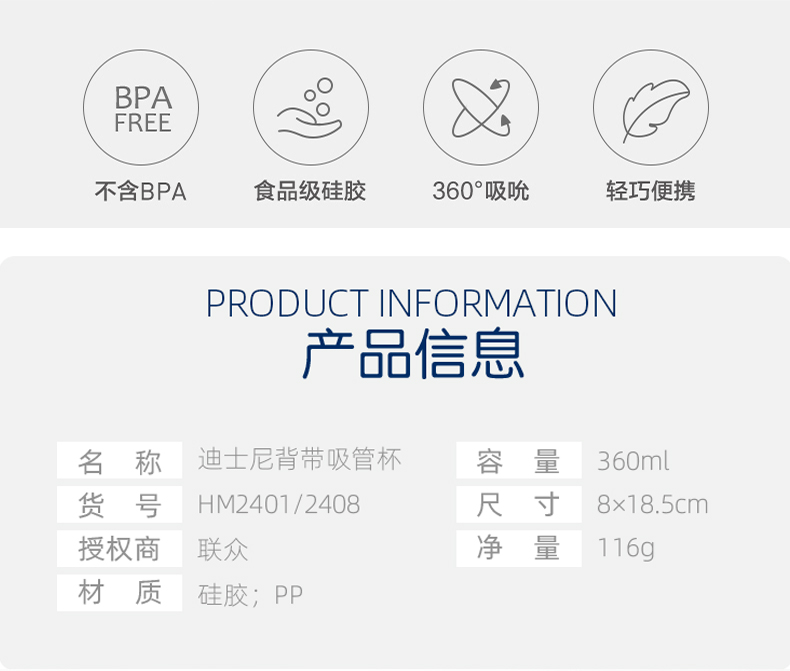 联众米奇卡通杯/360ML/HM2401-1/蓝色(图案随机)