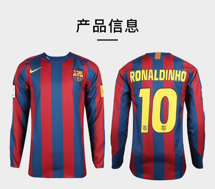 小李子NIKE耐克巴萨复刻版罗纳尔迪尼奥小罗印号复刻版长袖球衣成人男HQ1462-471