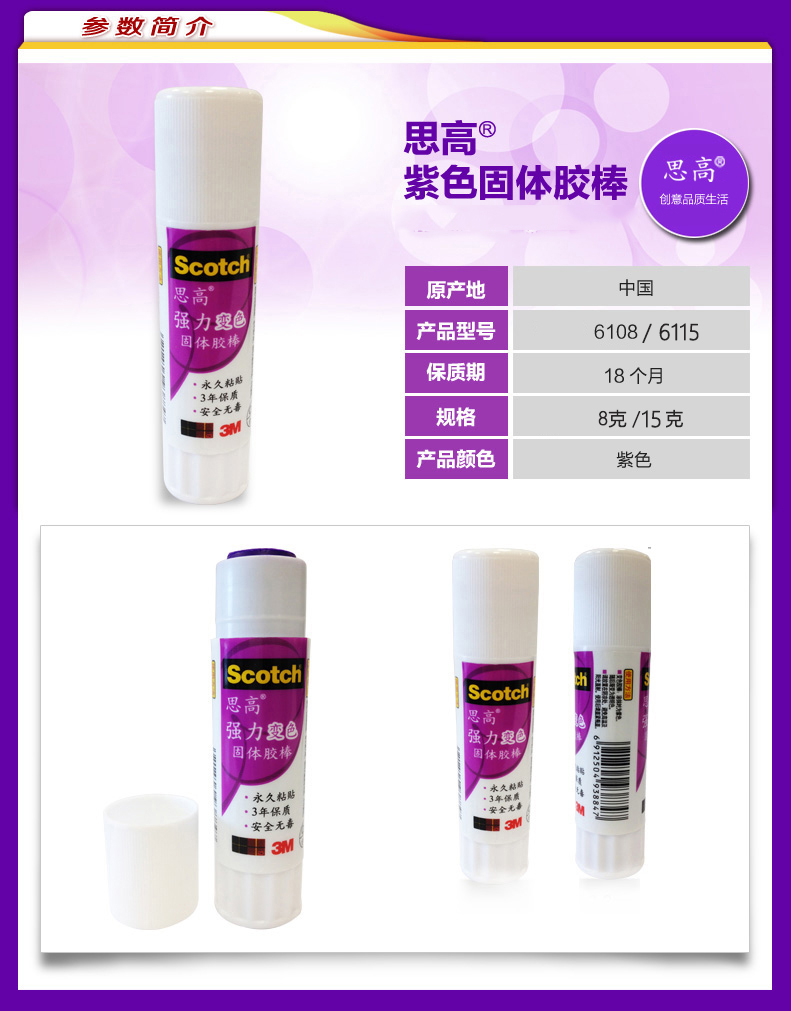 3M 思高进口PVP紫色固体胶15克6115