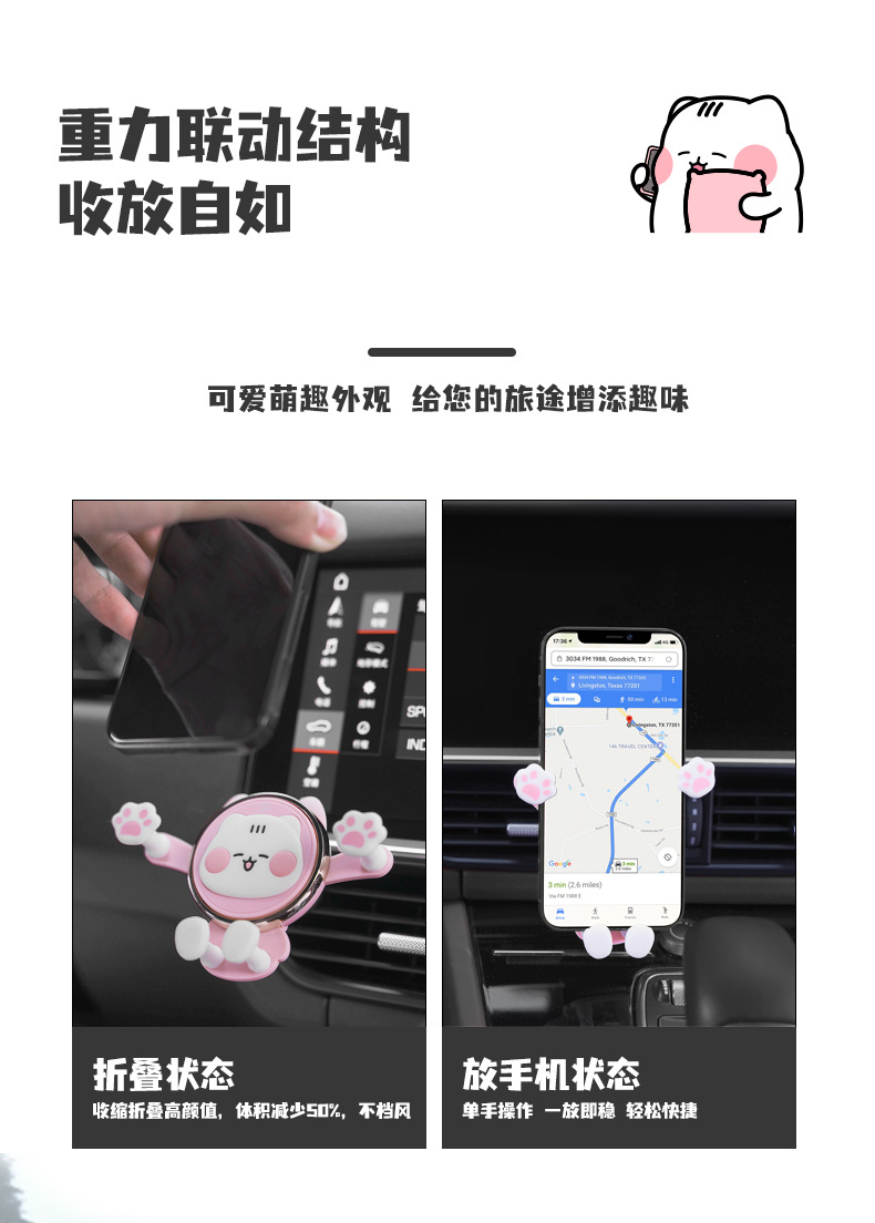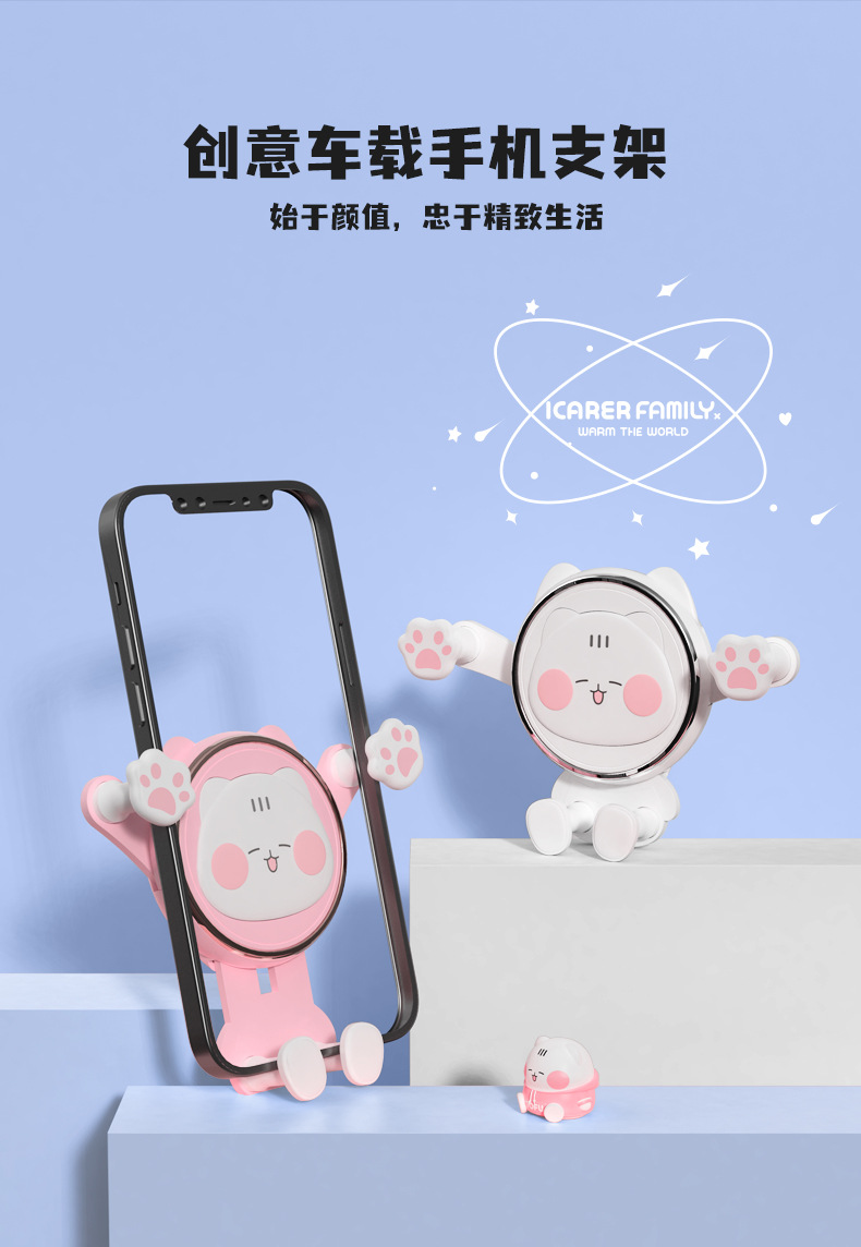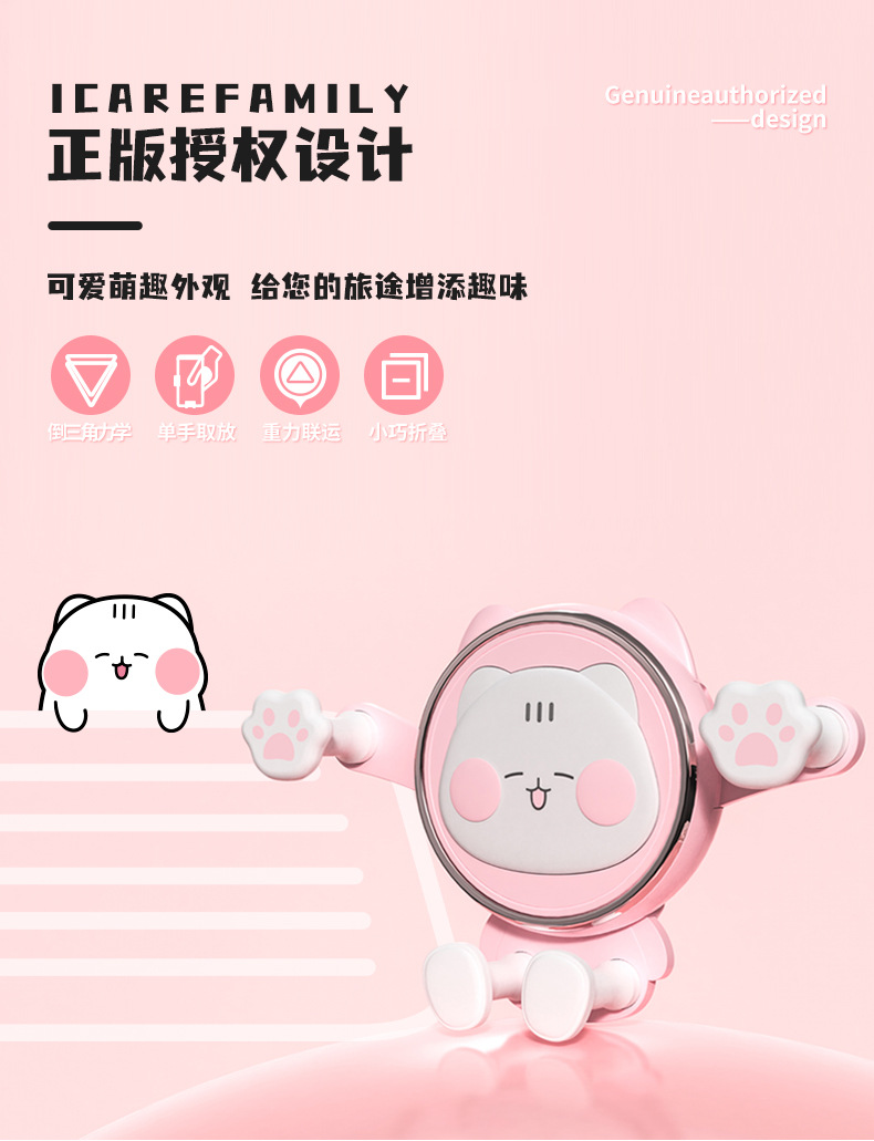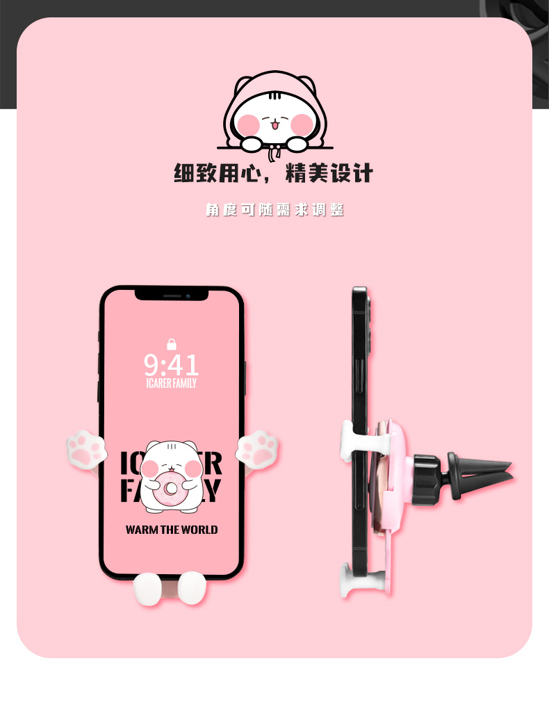 艾克家族喵爪重力车载支架IF-CZZJ-01汽车导航手机风口夹支架卡通可爱