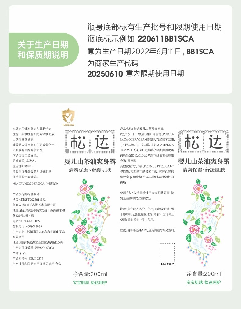 松达山茶油爽身露200ml