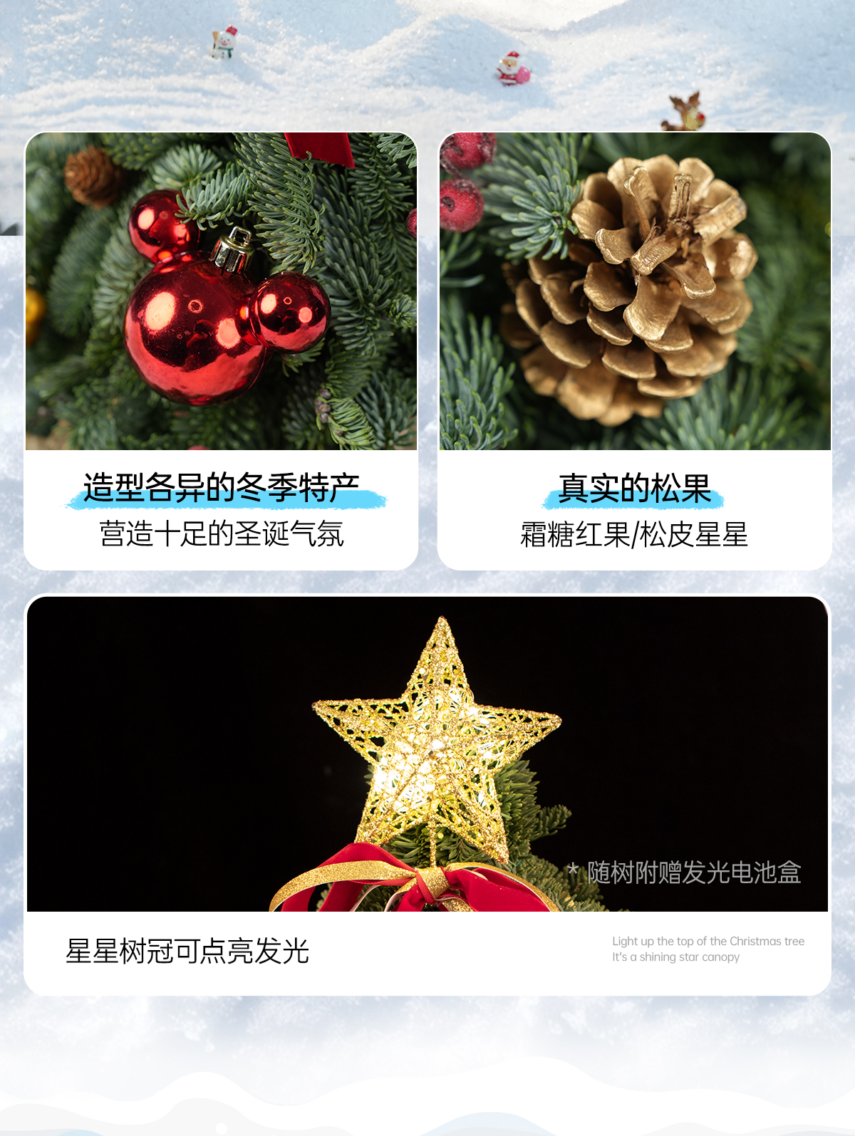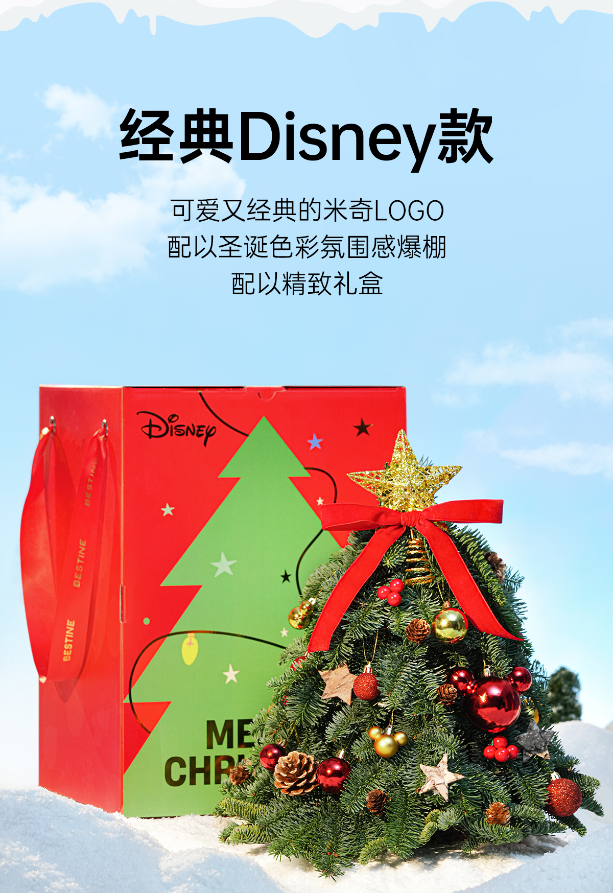 VBEINGS花语 圣诞礼物迪士尼进口诺贝松圣诞树鲜活松枝家居摆件