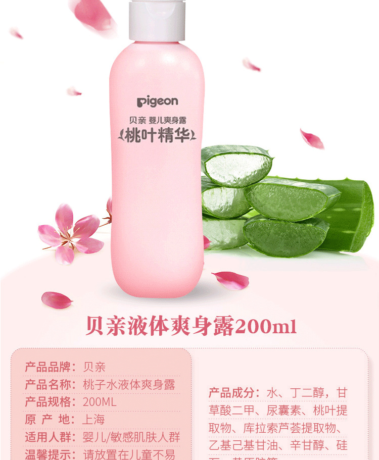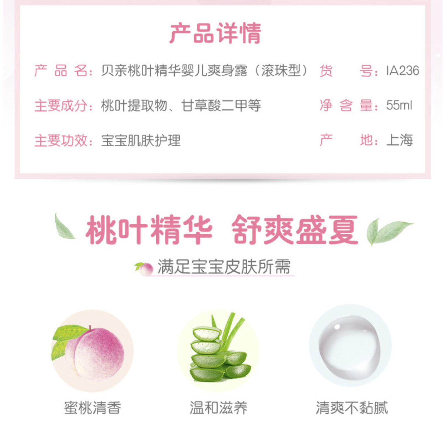 贝亲桃子水 婴儿桃叶精华爽身露液体 爽身粉防痱水