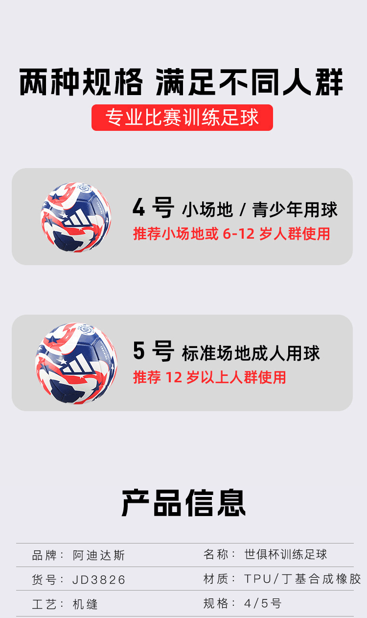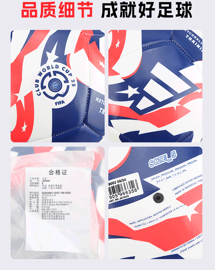 小李子阿迪达斯25赛季世俱杯比赛足球3号4号5号机缝训练球JD3826