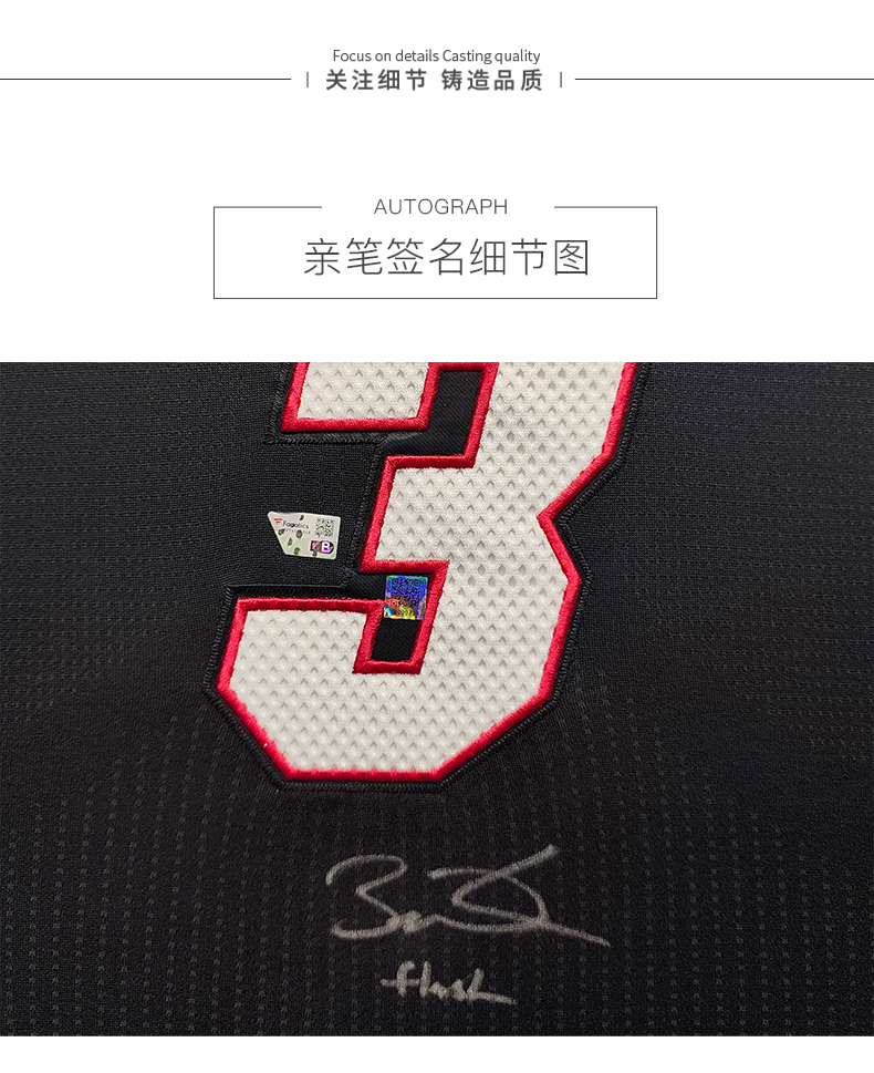 收藏系列 韦德 12/13黑色 闪电侠铭文 亲笔签名球衣