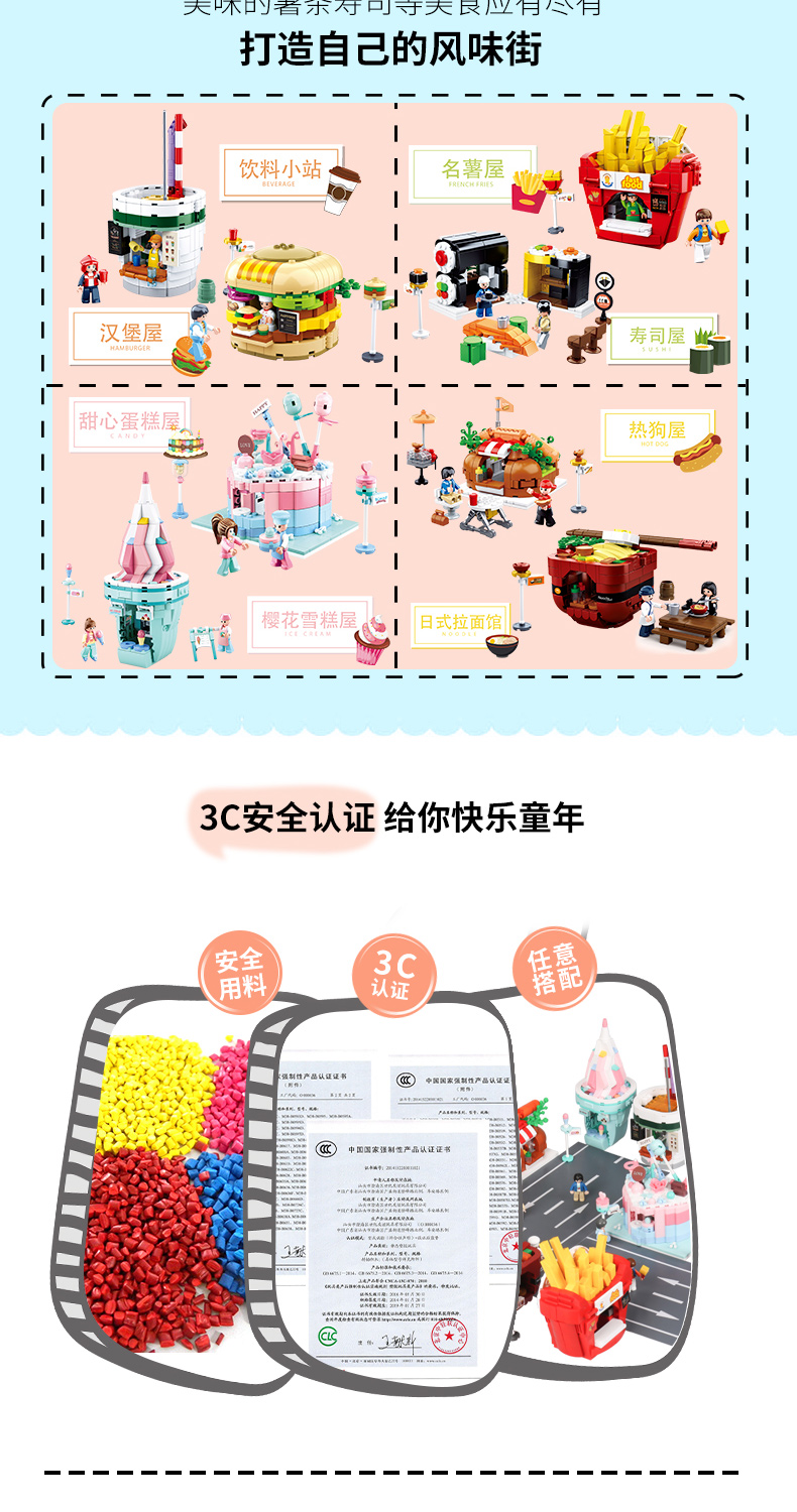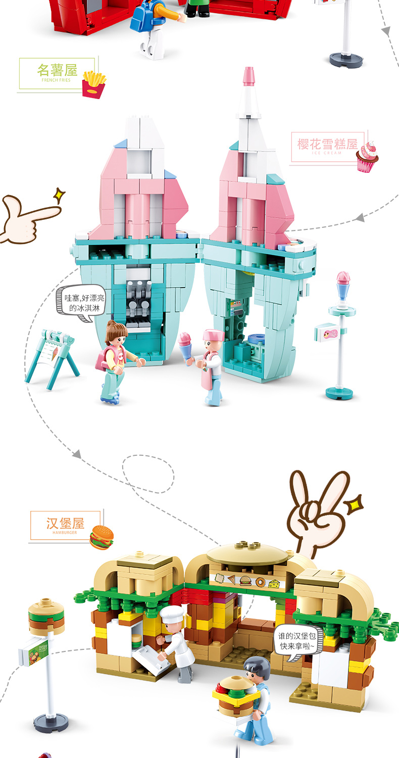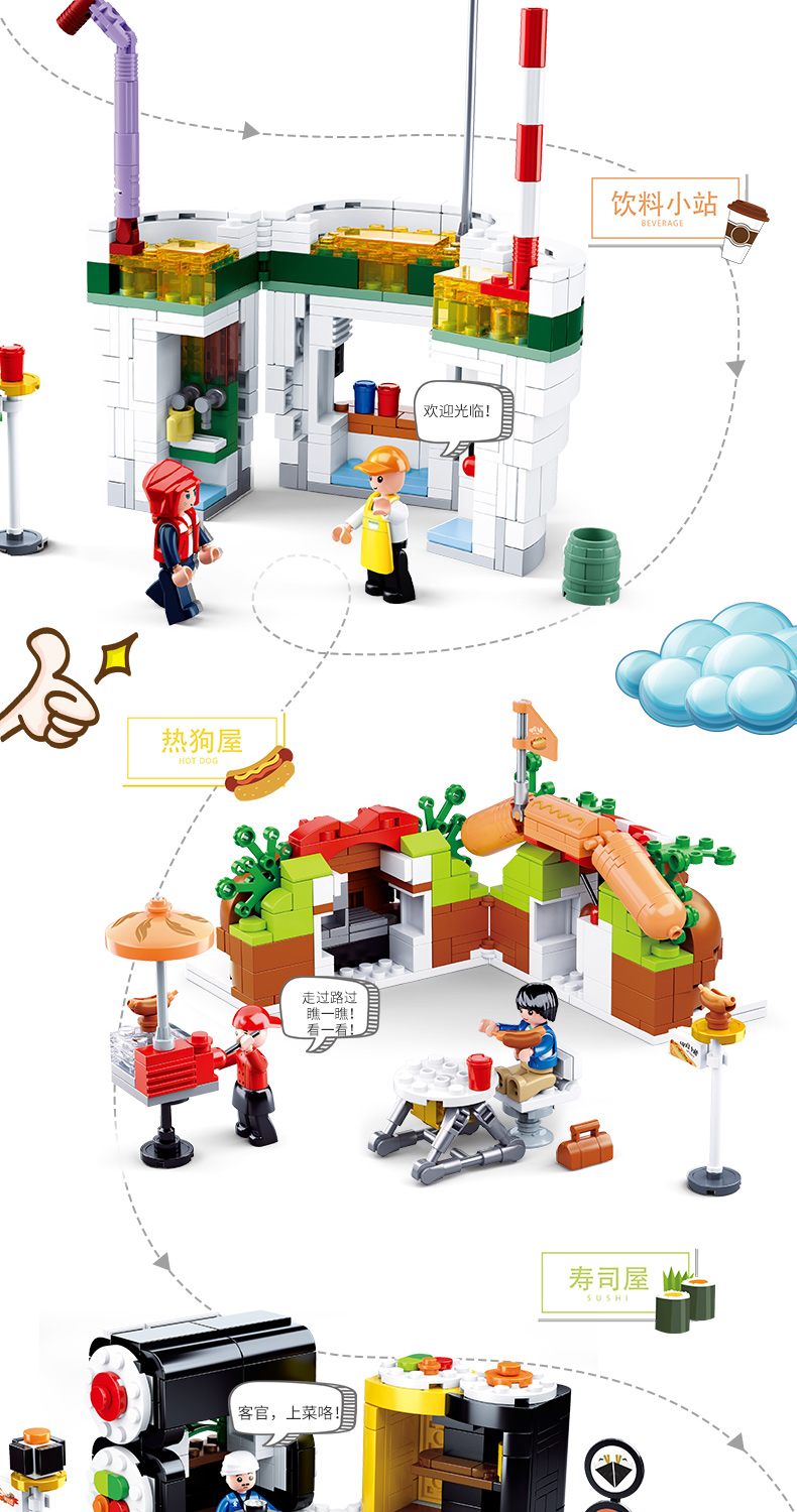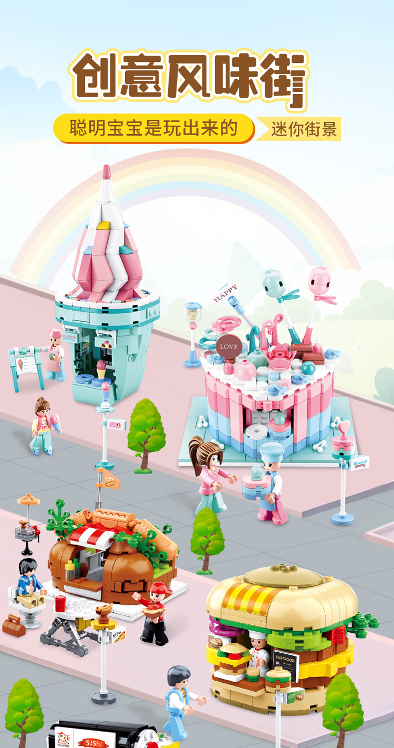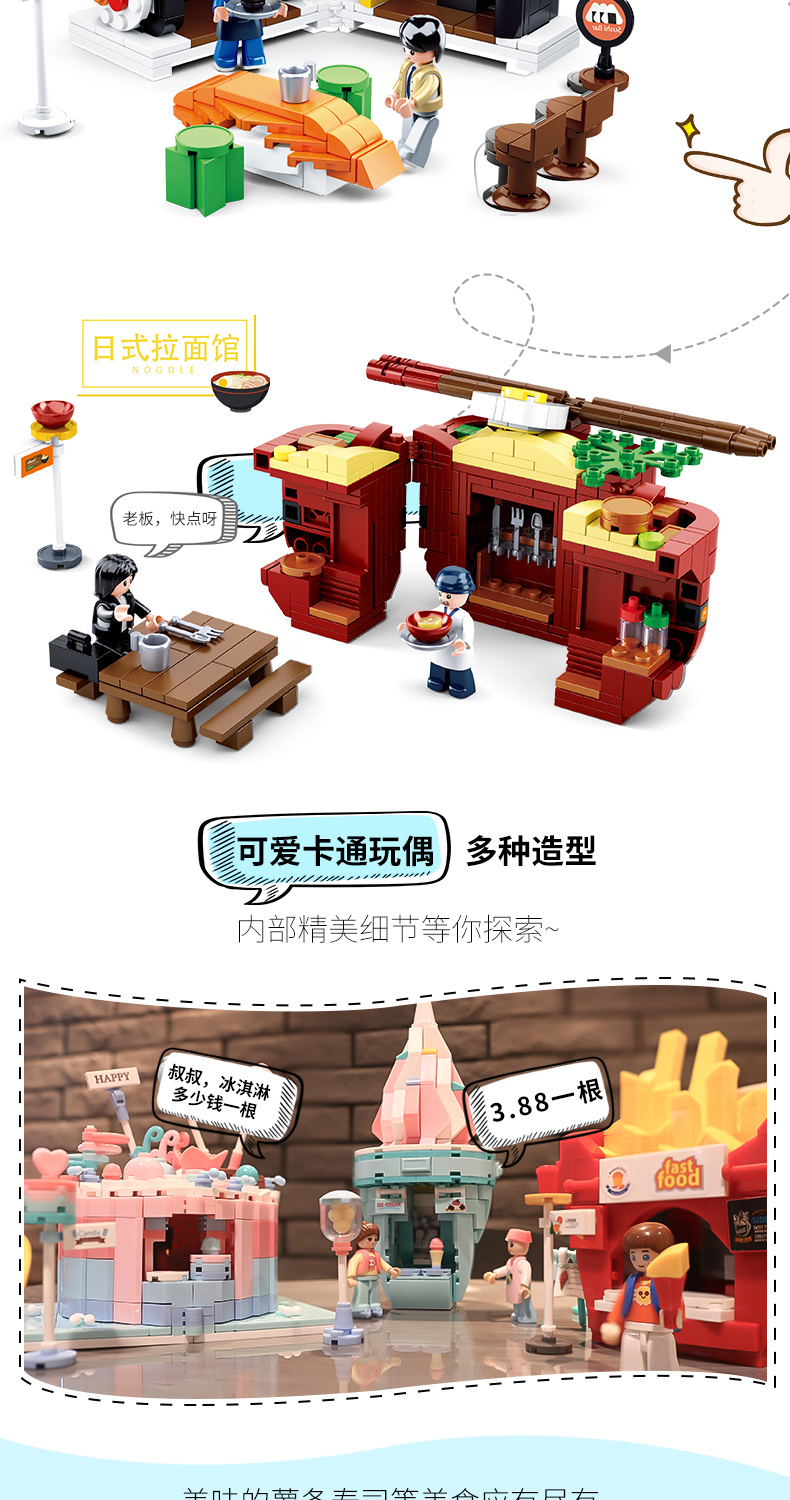 快乐小鲁班风味街系列积木益智拼装儿童玩具新年礼物男女孩桌游