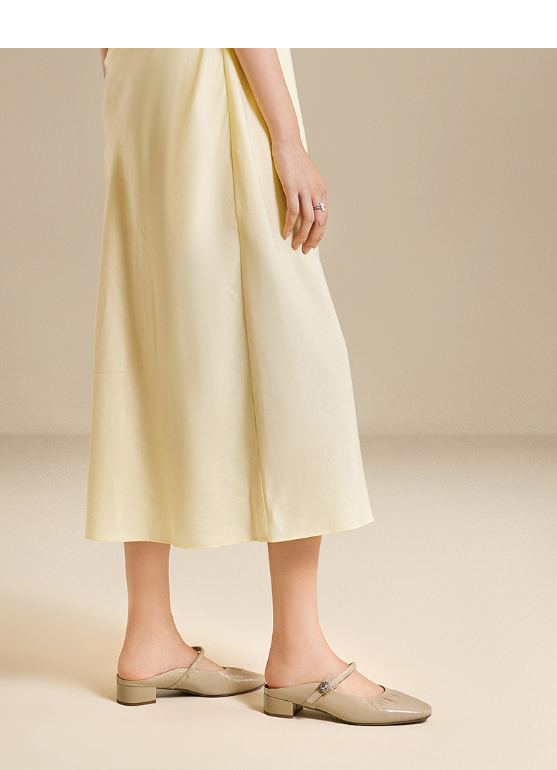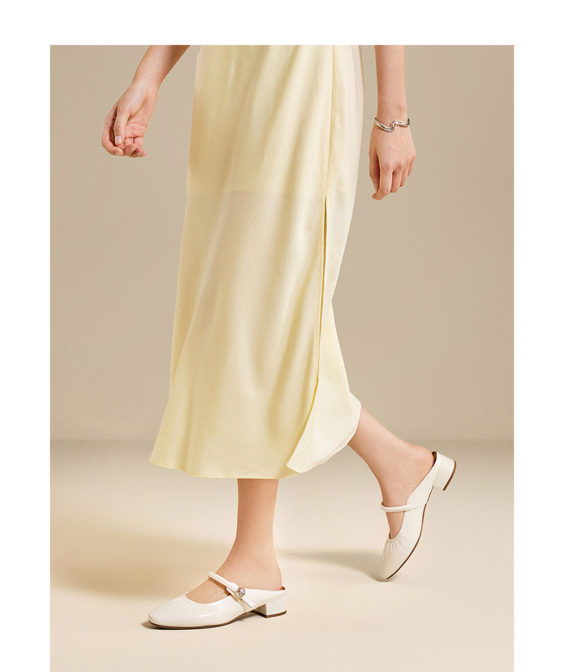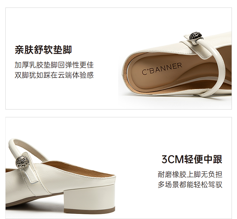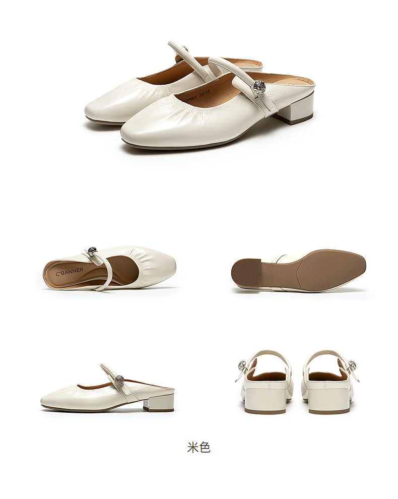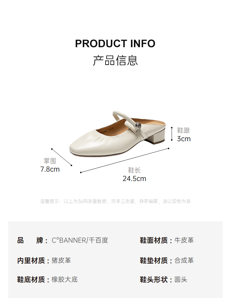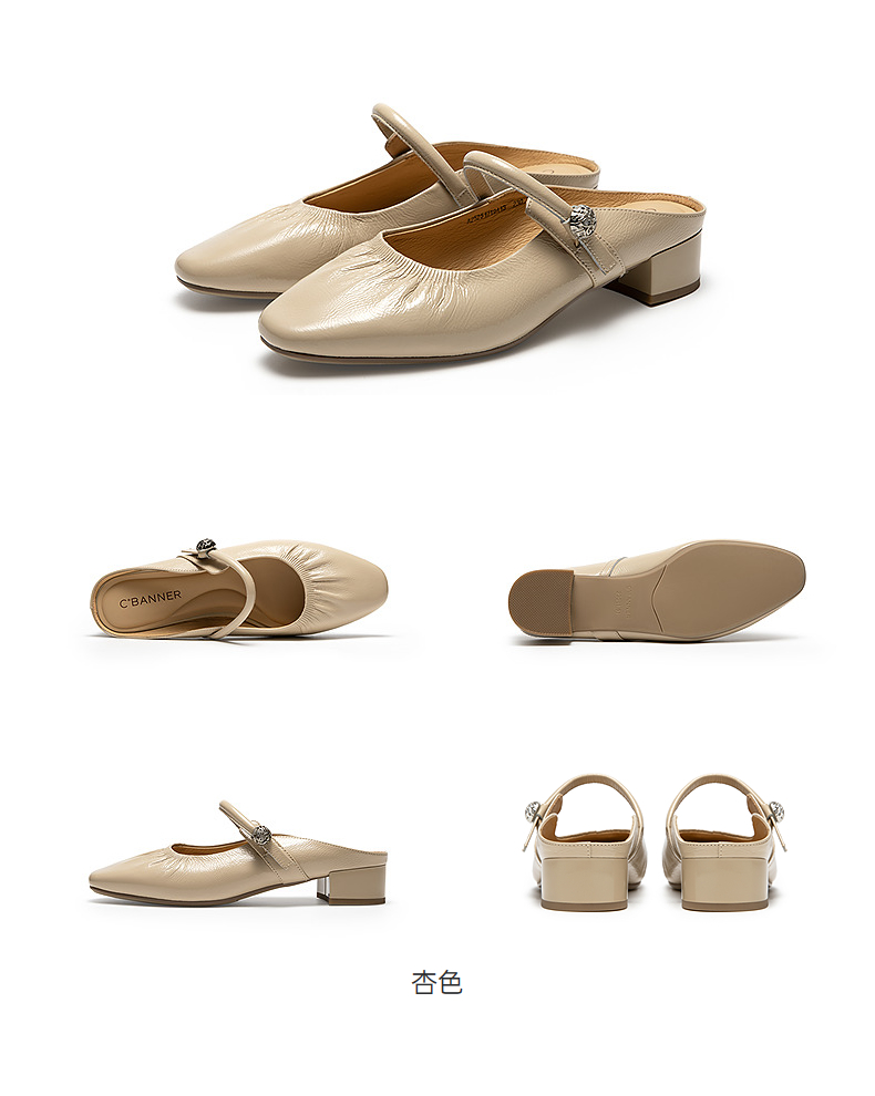 千百度羊皮玛丽珍时装凉鞋女包头后空粗中跟通勤凉鞋A25212306