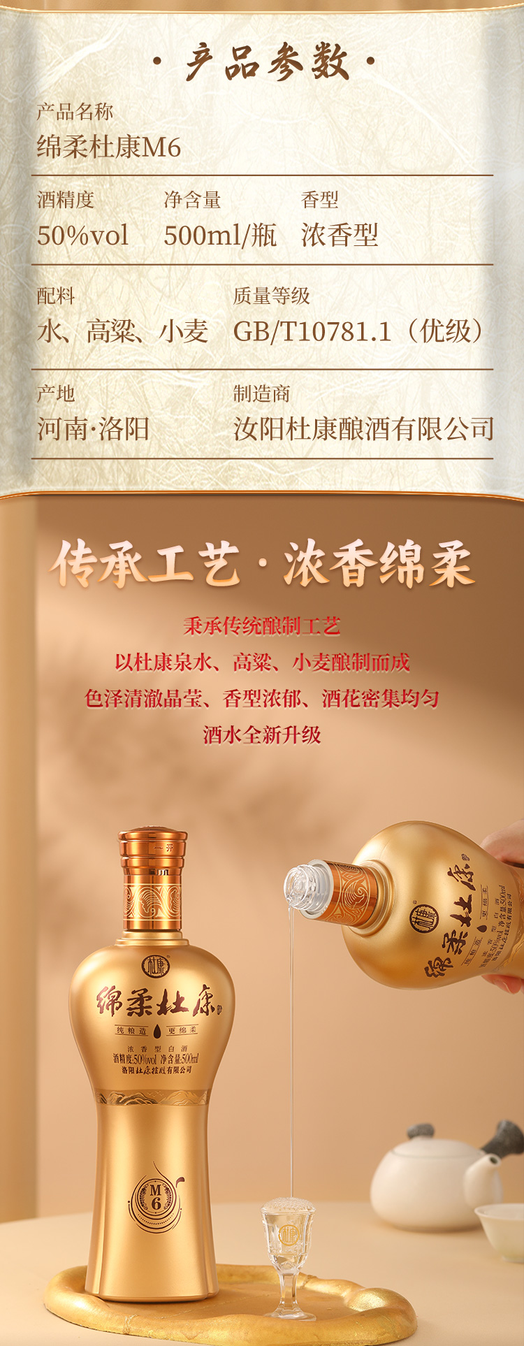 绵柔杜康M6 升级版50度500ml*6瓶整箱浓香型白酒