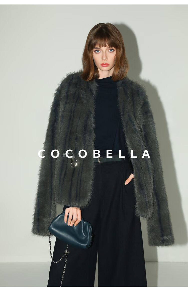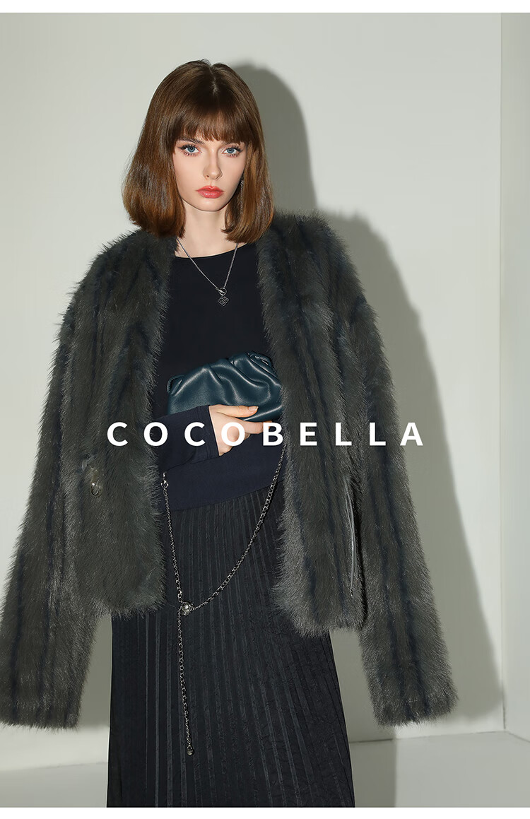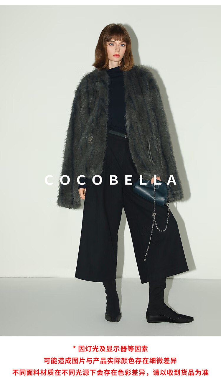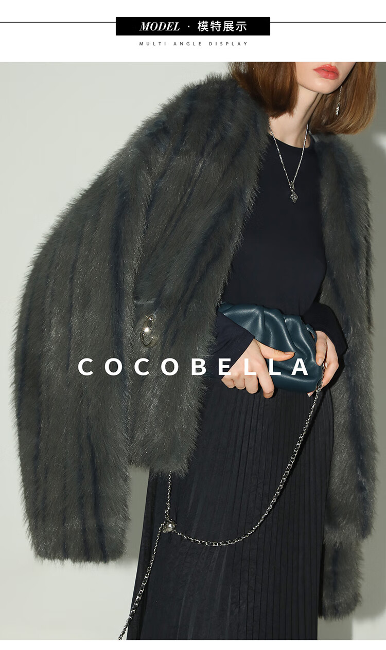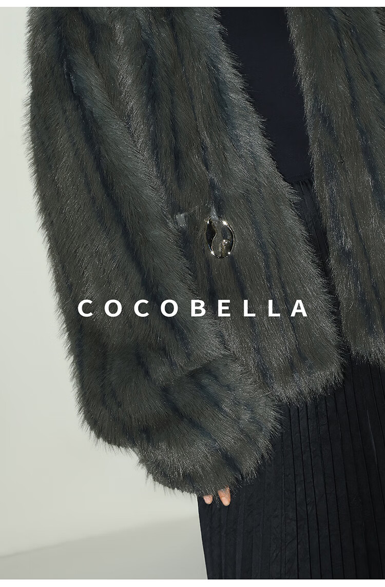 COCOBELLA高奢仿蓝狐丰盈环保皮草外套冬定制腰带大衣FU3023