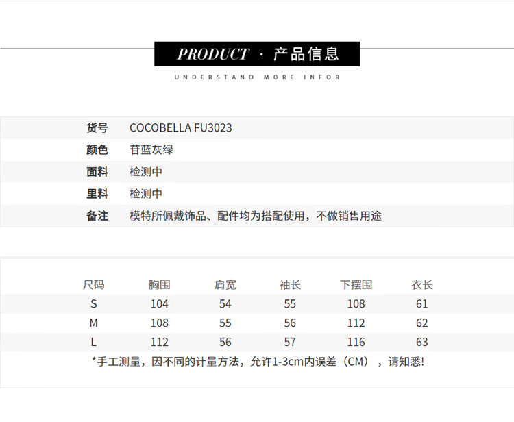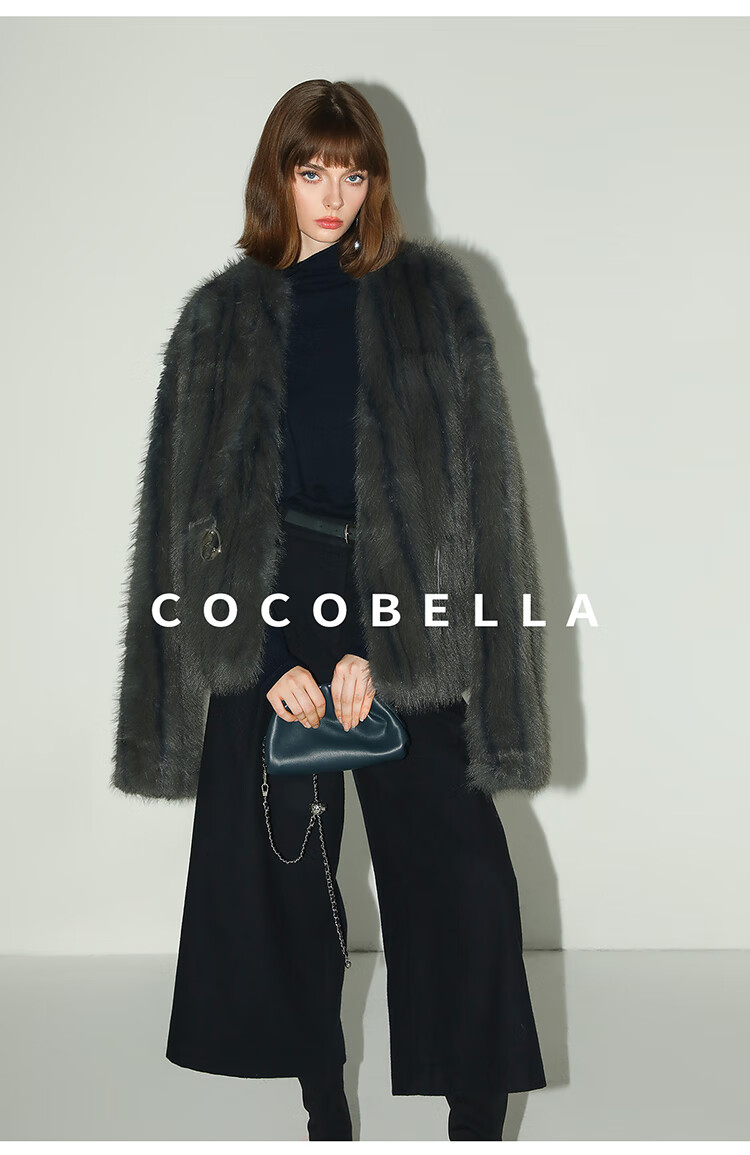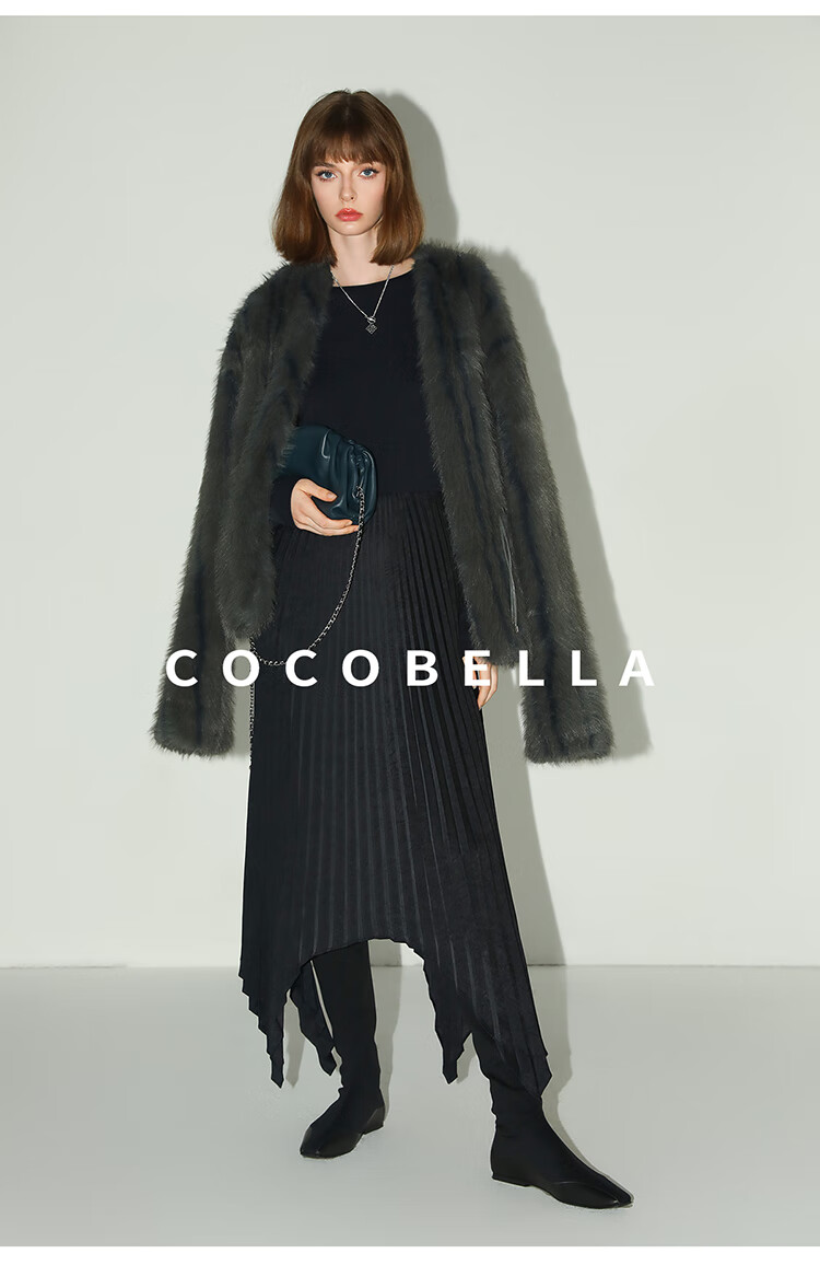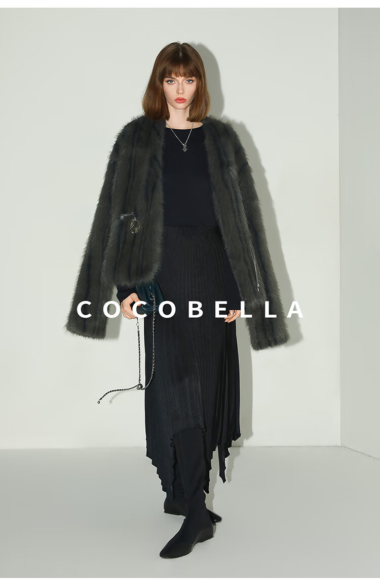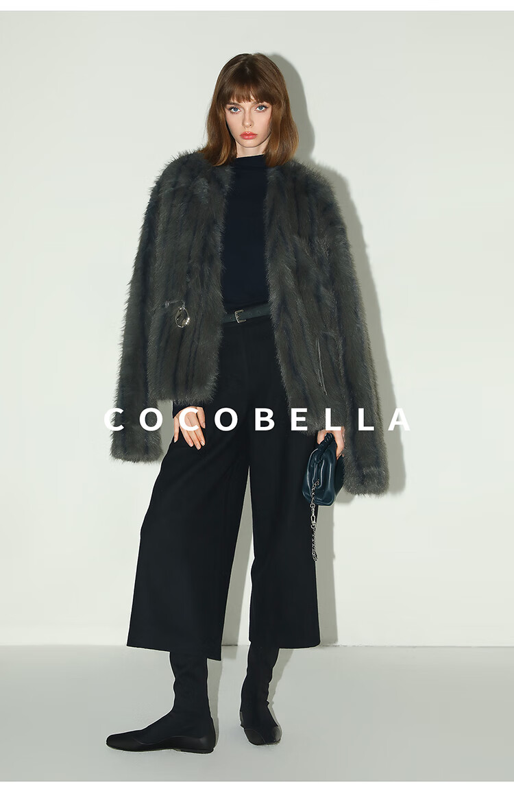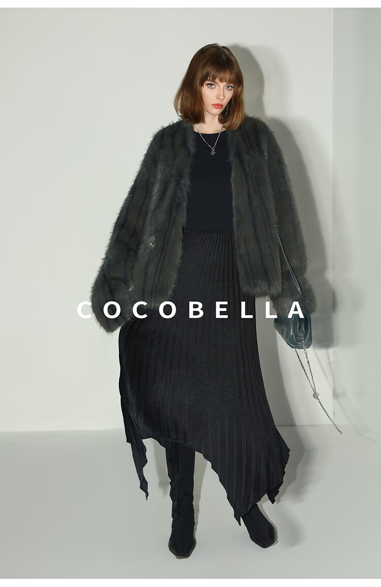 COCOBELLA高奢仿蓝狐丰盈环保皮草外套冬定制腰带大衣FU3023